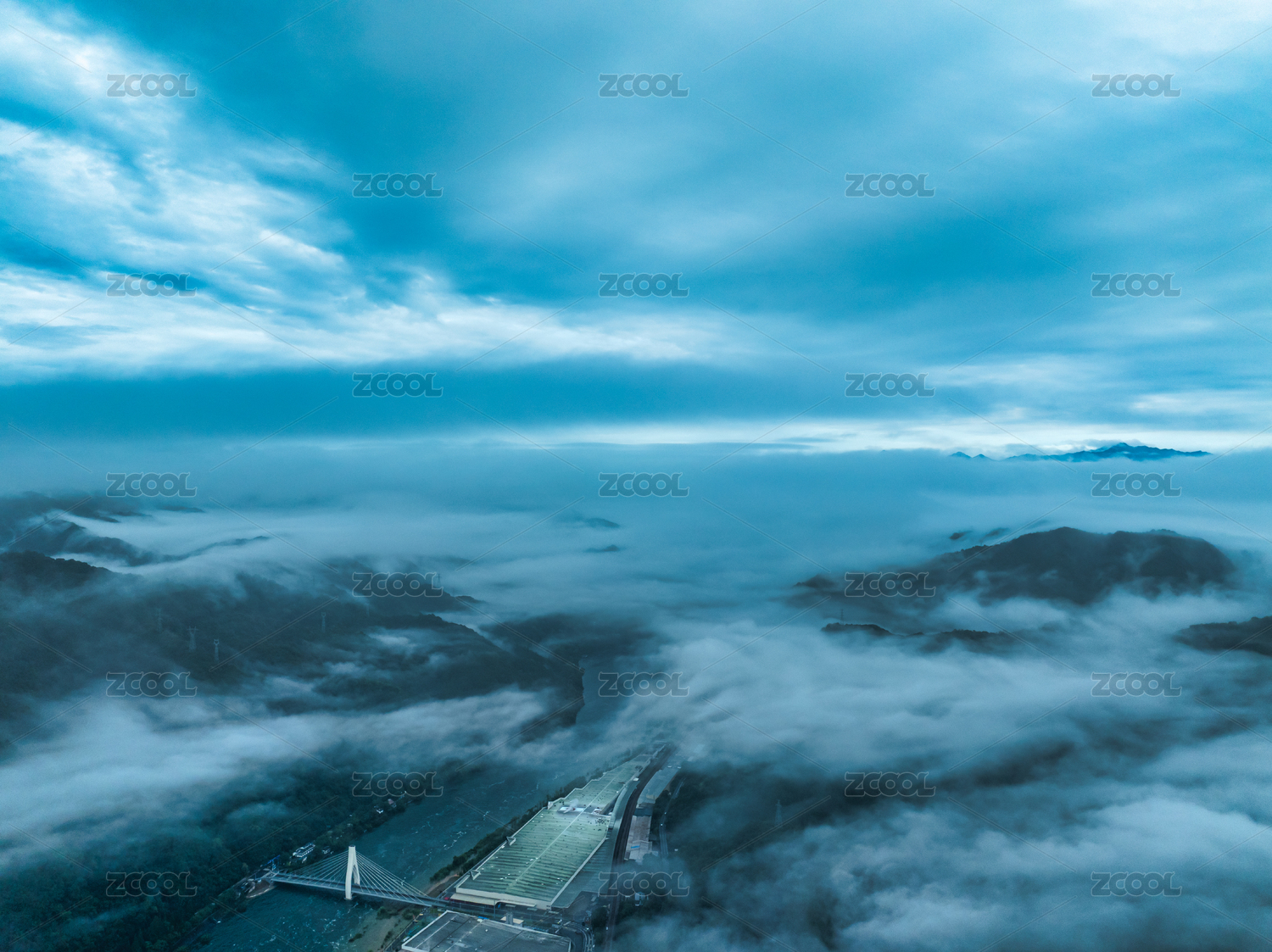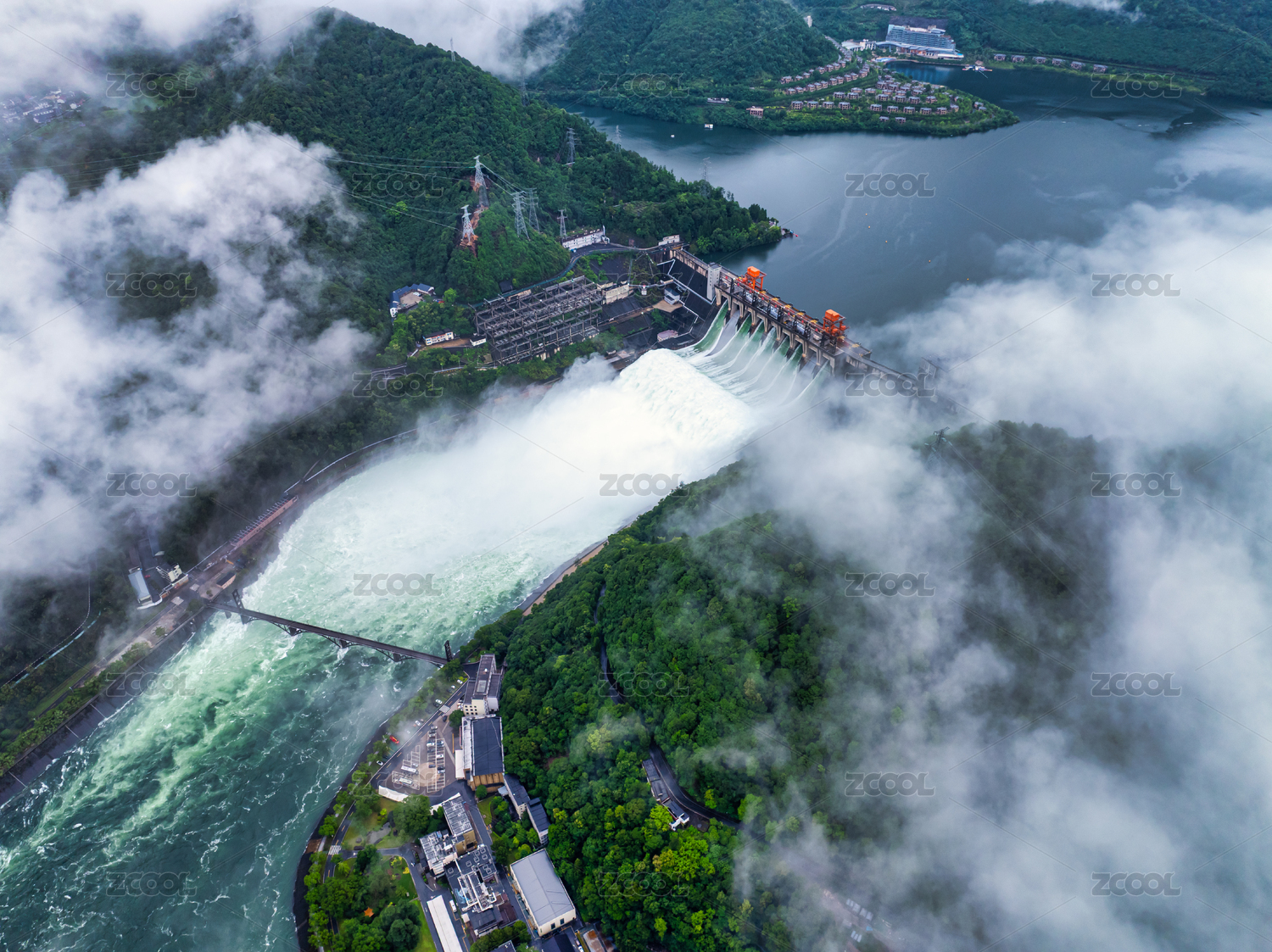 浙江新安江水庫七孔泄洪壯觀云海風(fēng)光航拍
