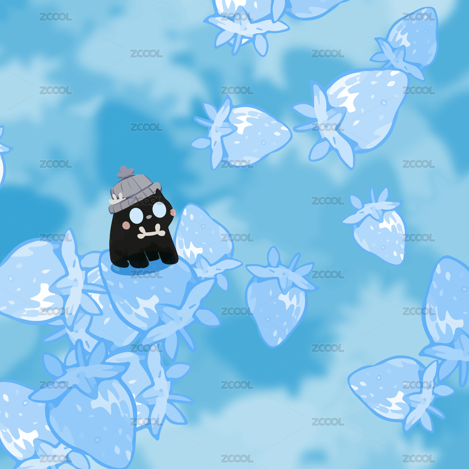 小寒藍(lán)色可愛插畫草莓小動物寒冷壁紙卡通