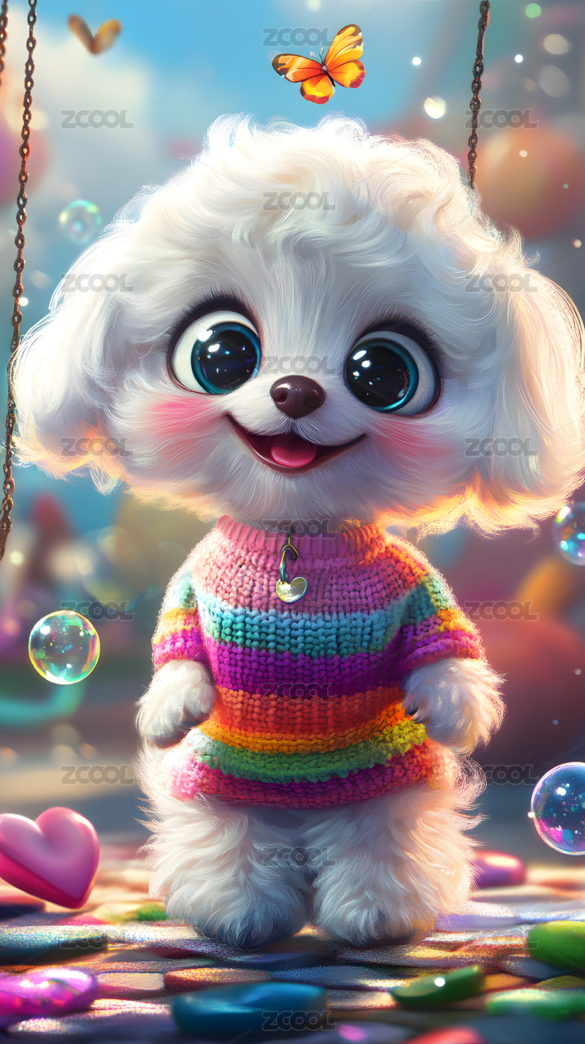 可愛毛絨絨小狗彩虹毛衣卡通圖