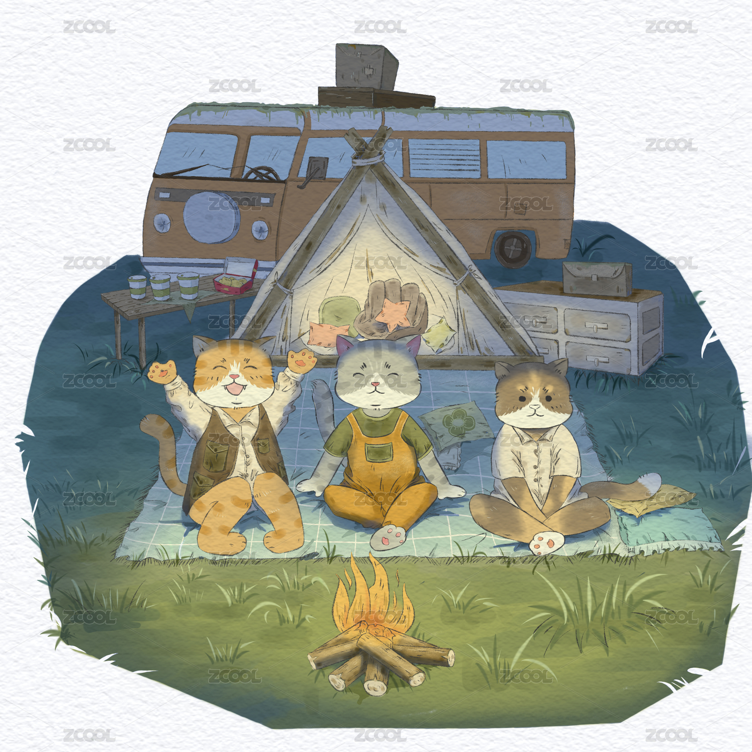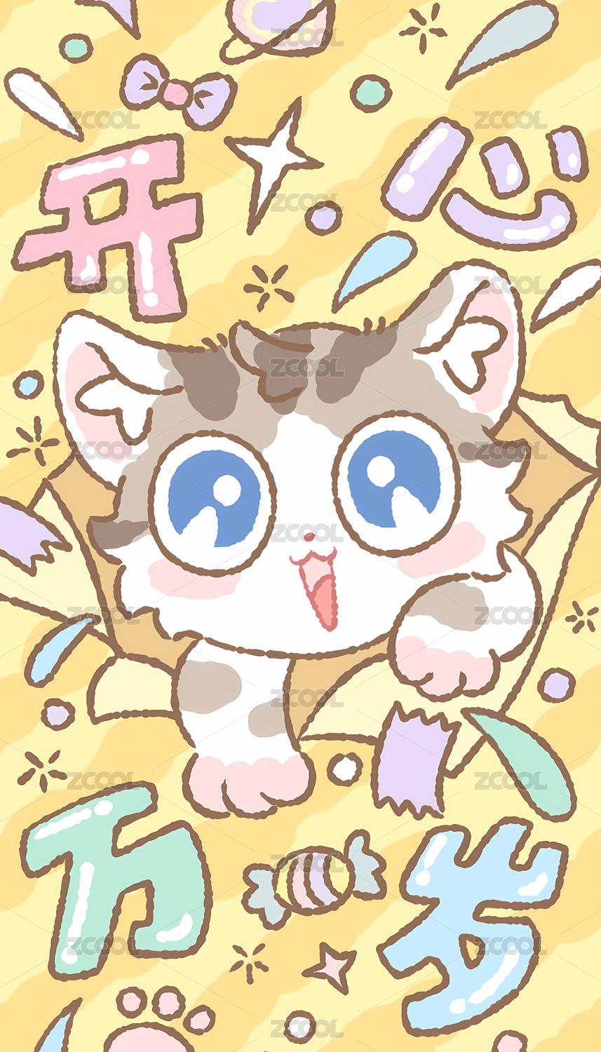 貓咪萌寵開心快樂表情包裝卡通壁紙IP元素