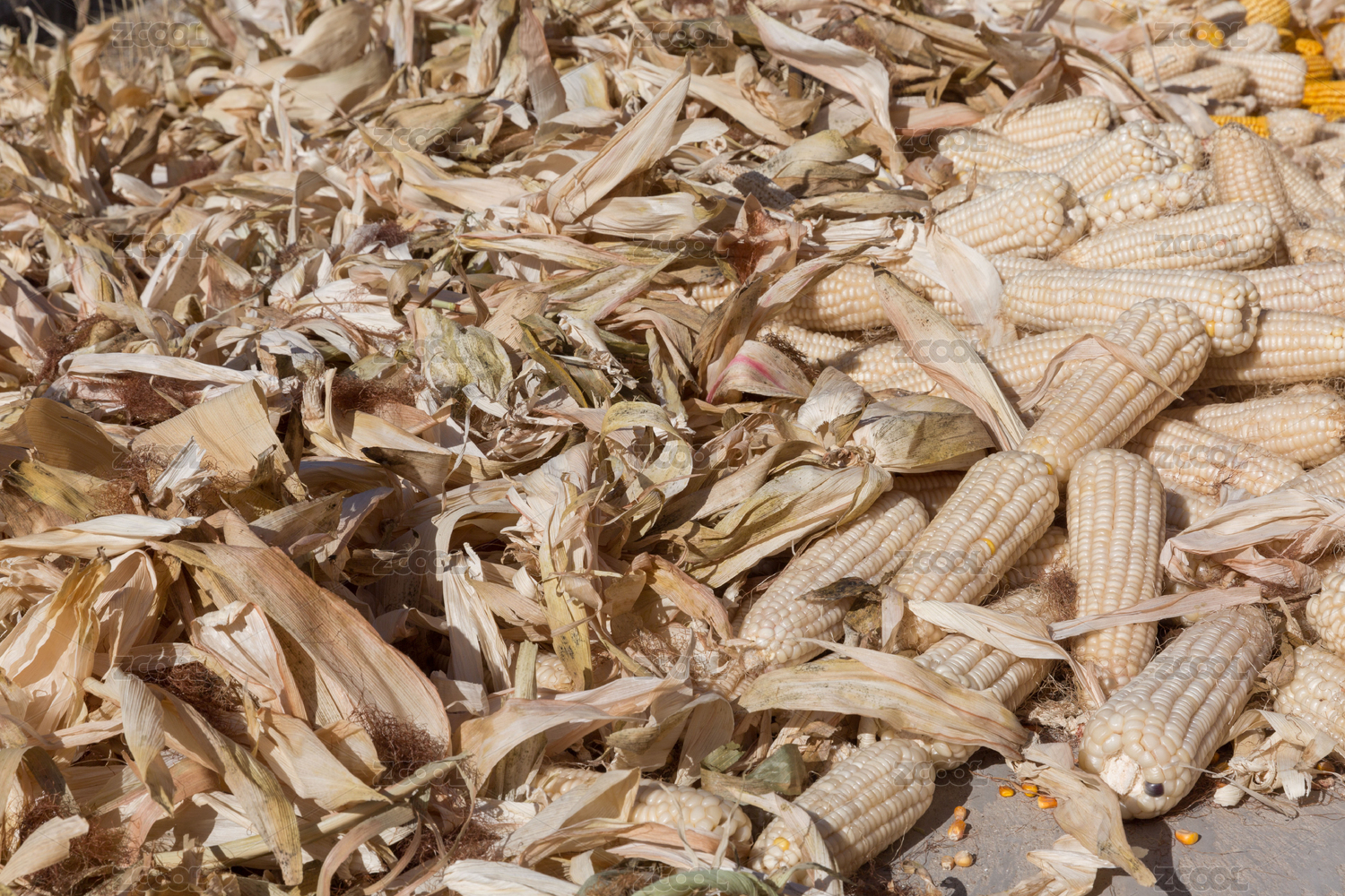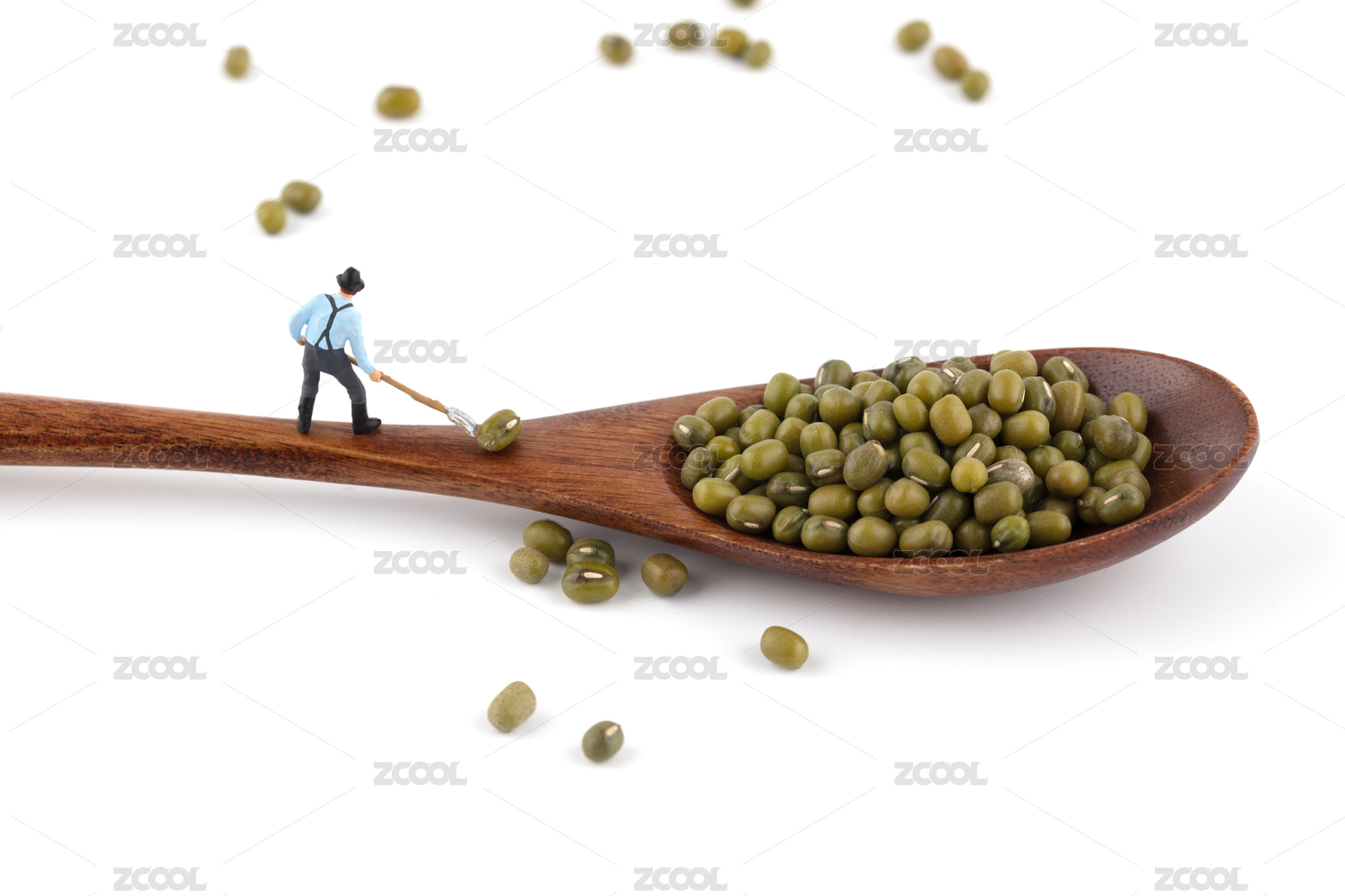 白背景上農(nóng)民把綠豆收拾到勺子里
