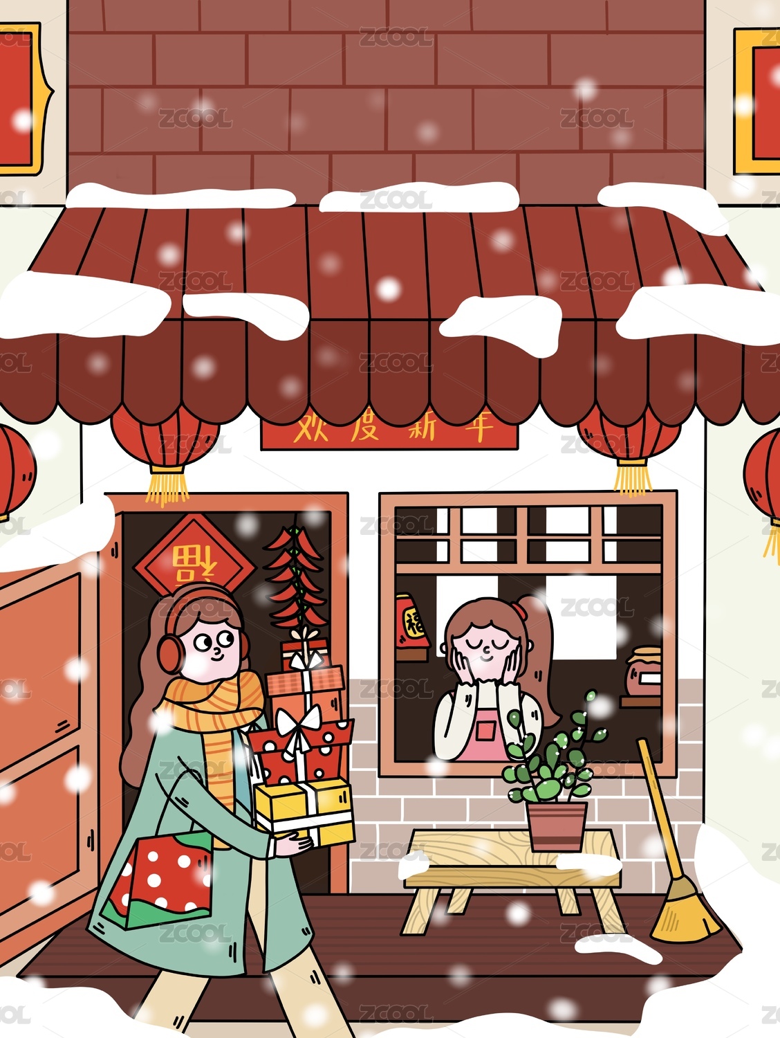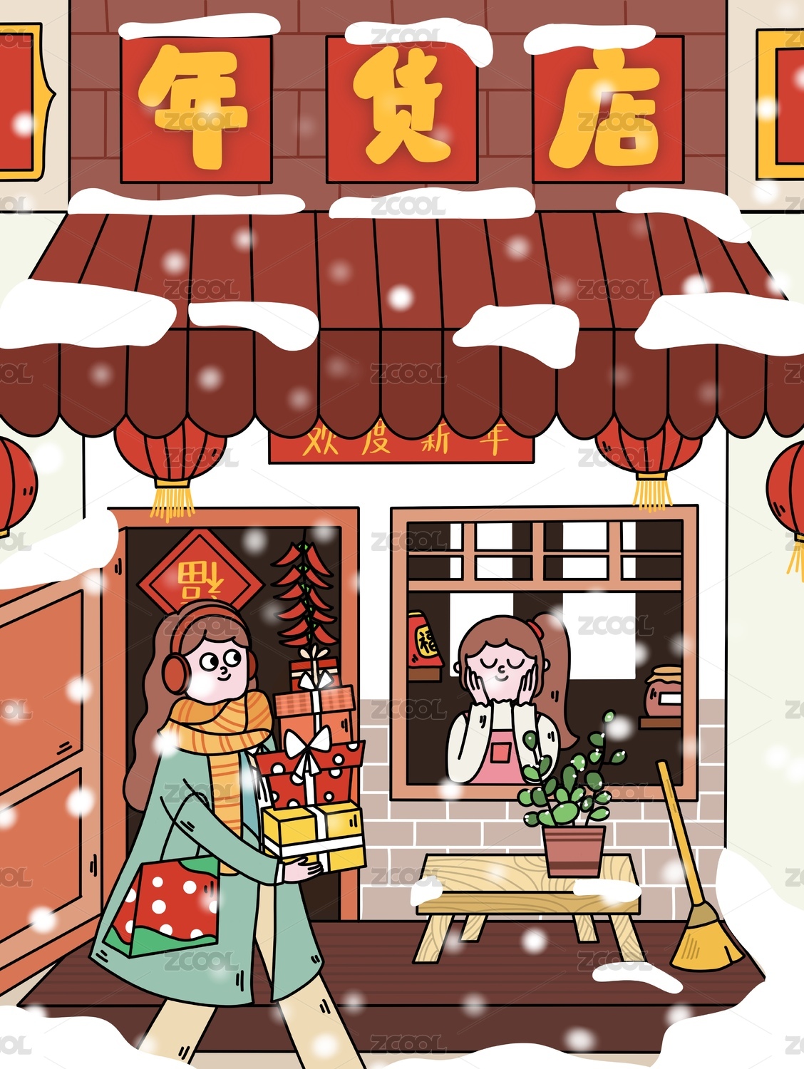 新年年貨節(jié)收拾年貨拿著禮品的女人