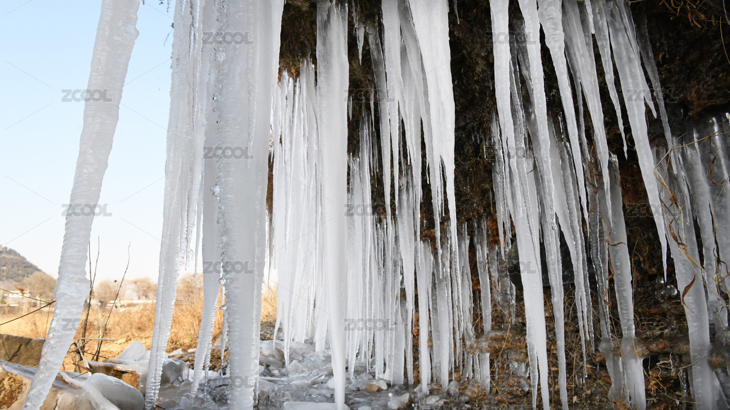 寒冷冬天冰凍冰掛