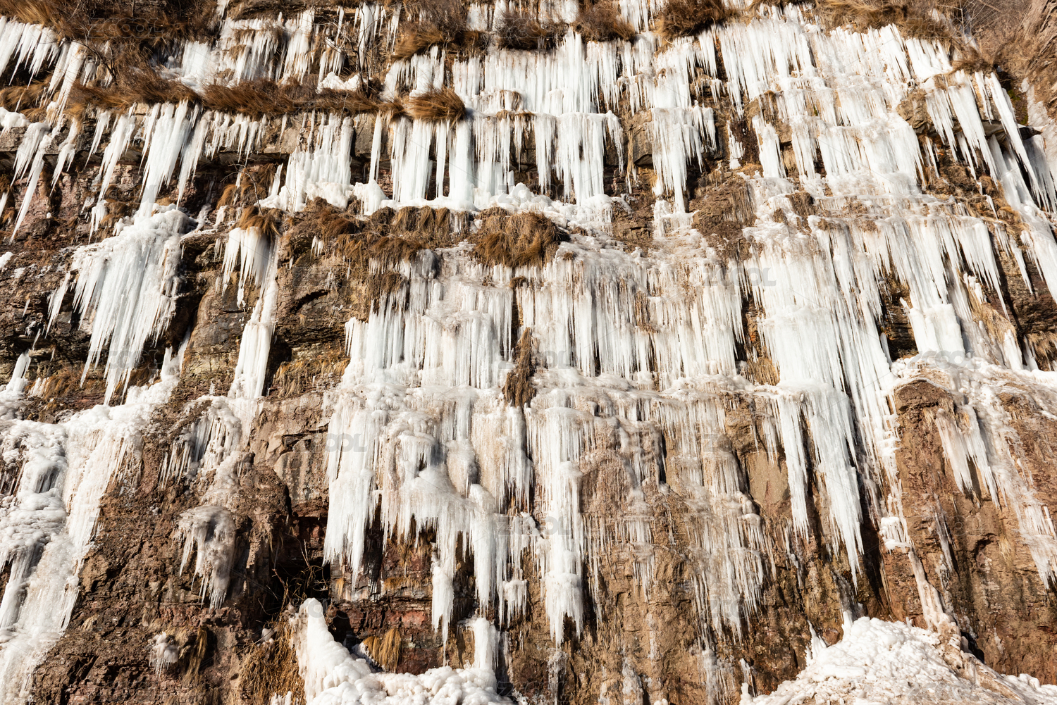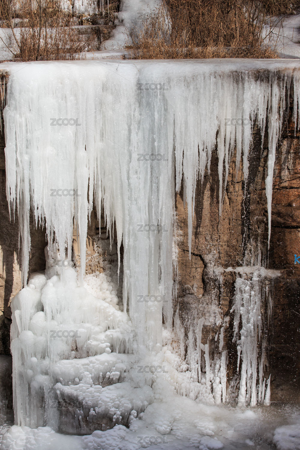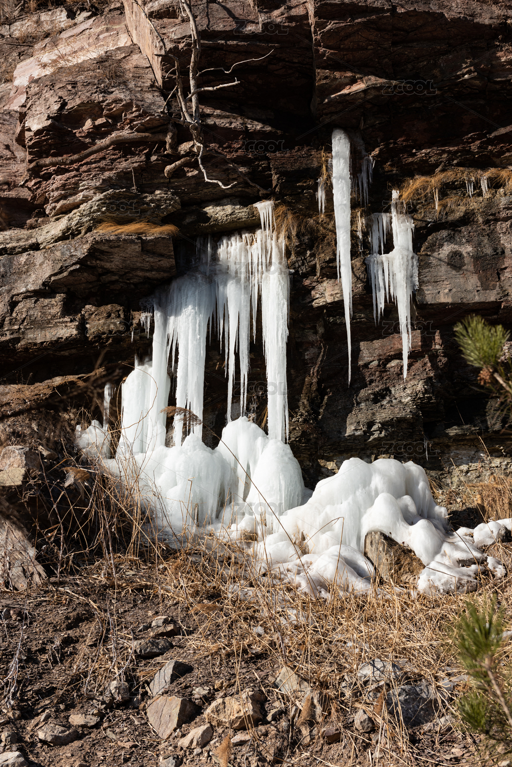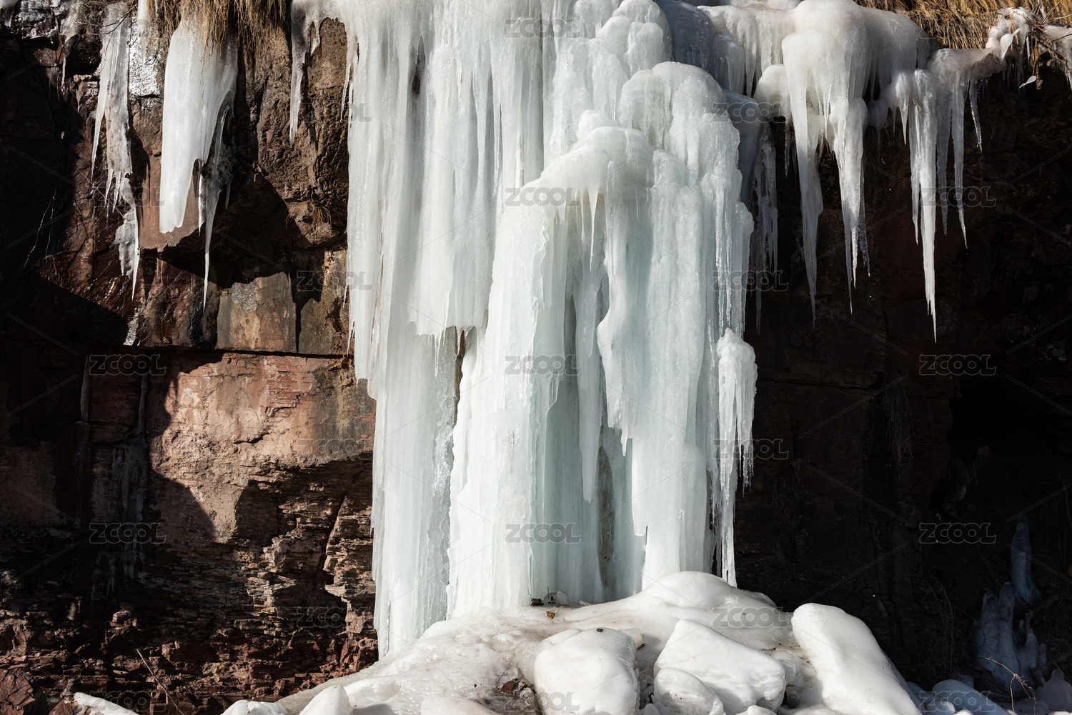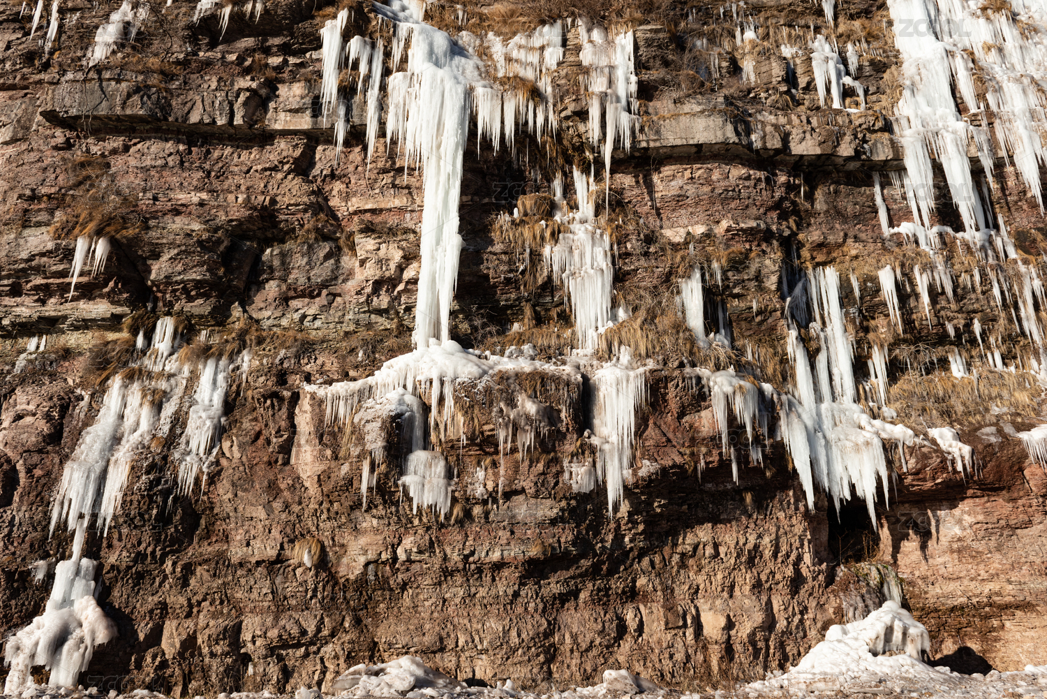 中國山東省棗莊市山亭區(qū)懸崖上的冰掛