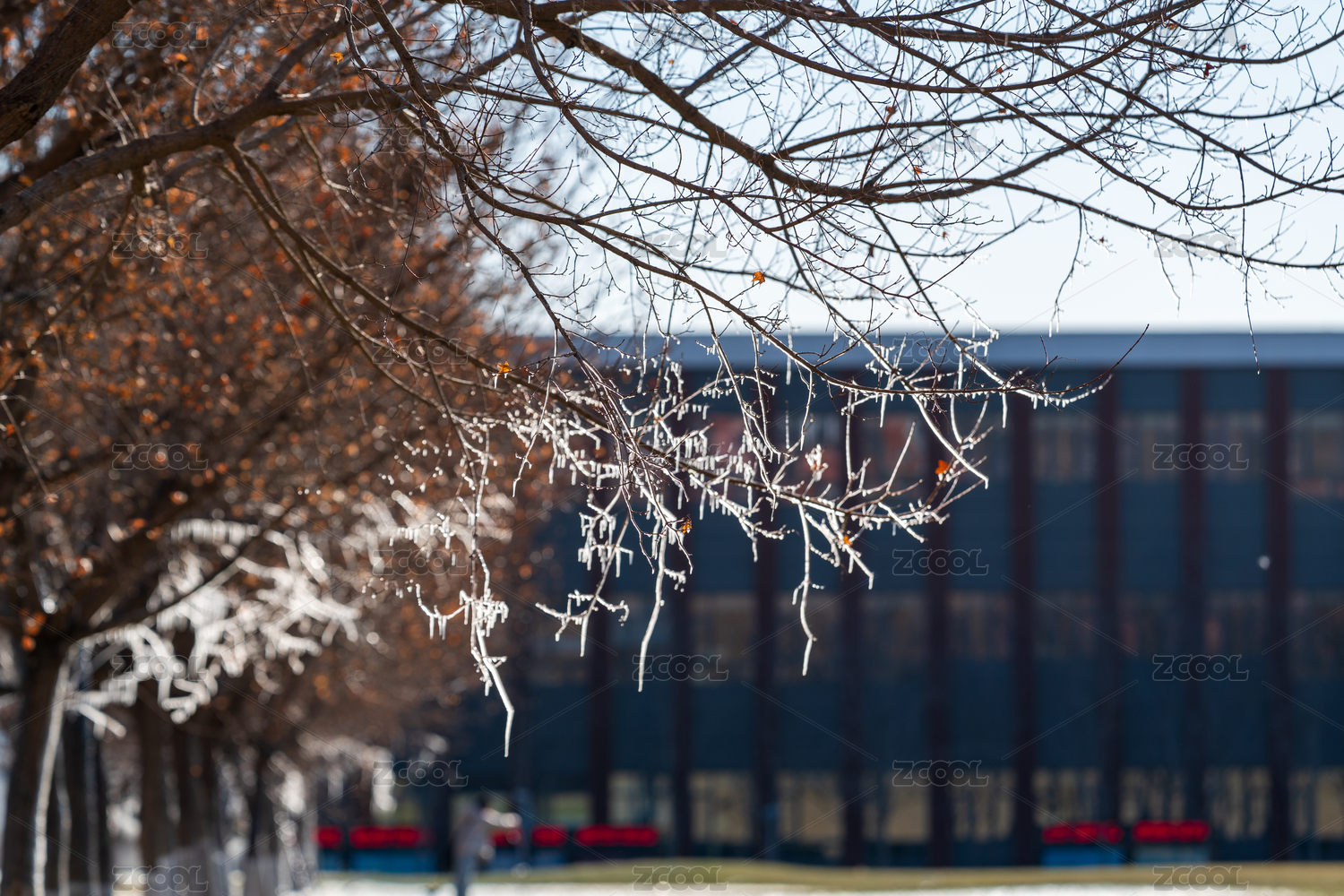 冬日校園樹枝冰掛