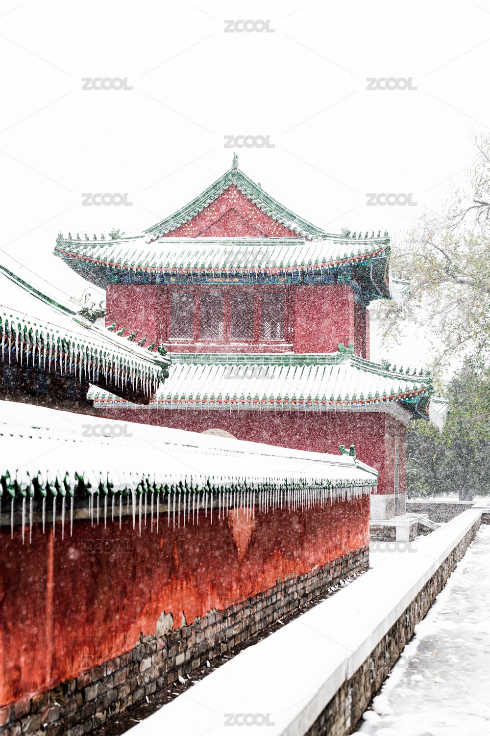 地壇雪中紅墻冰掛