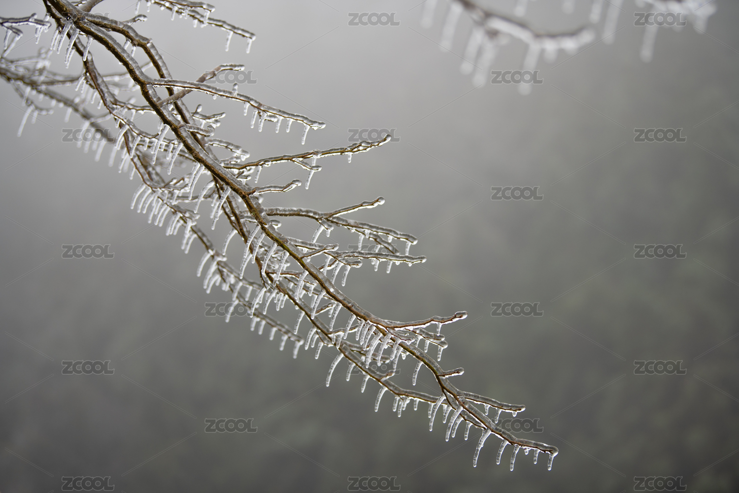 冬日樹枝冰掛特寫