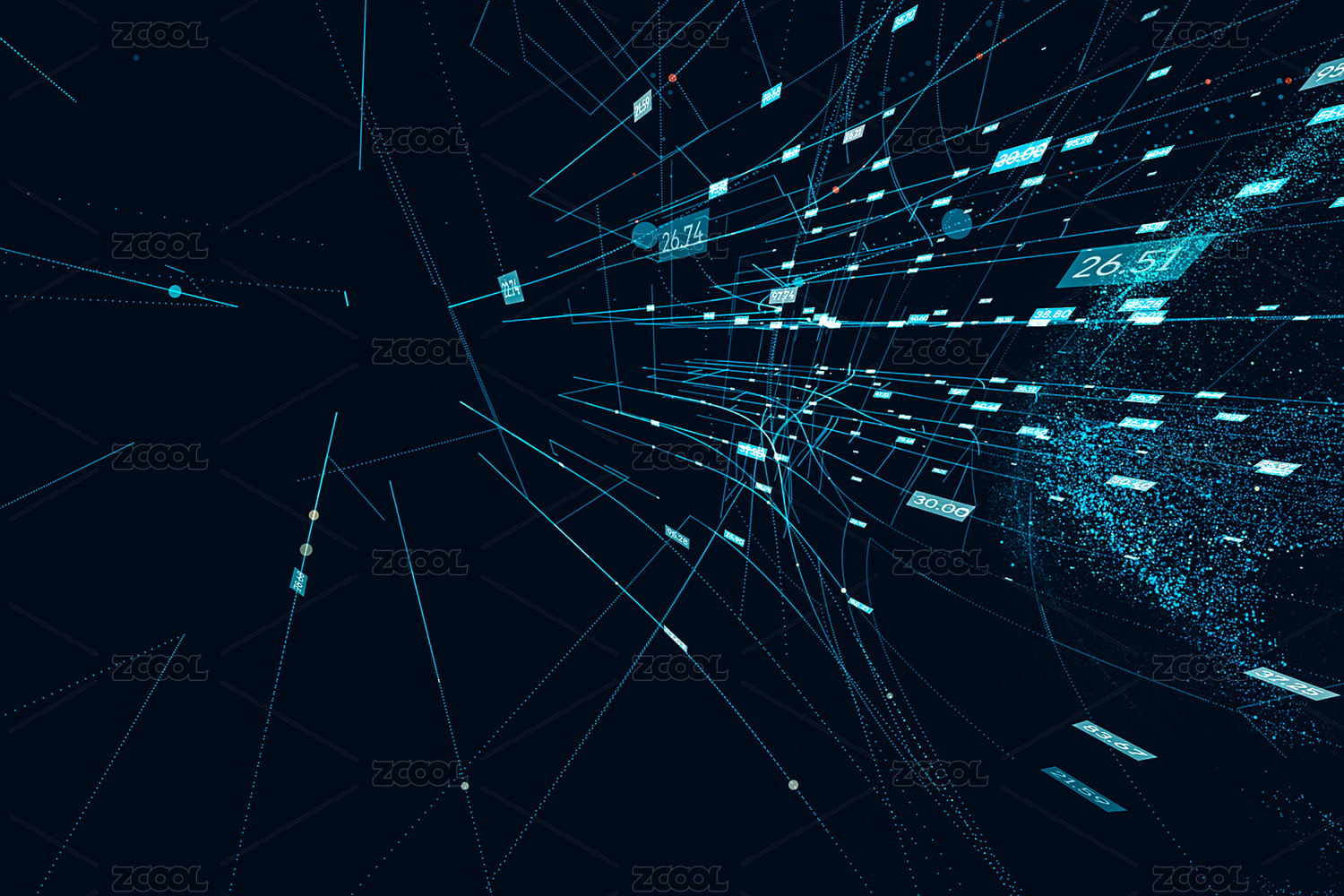 藍色科技點和線構(gòu)成抽象空間大數(shù)據(jù)流動背景