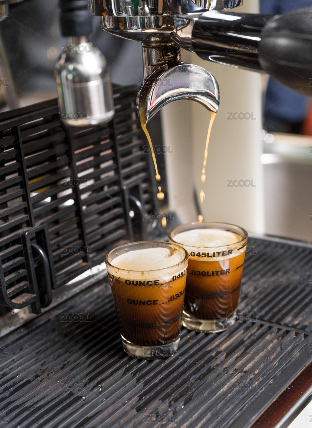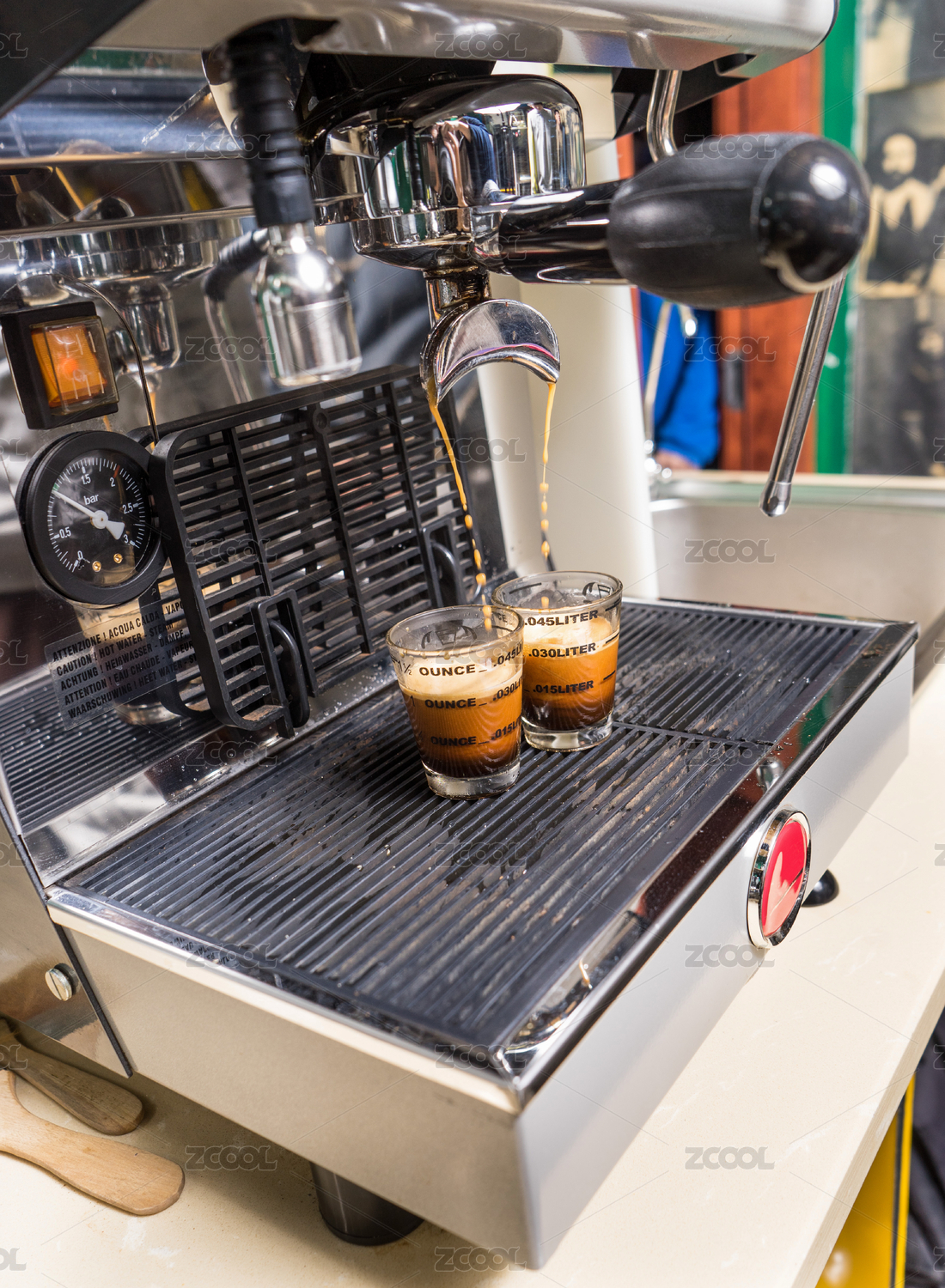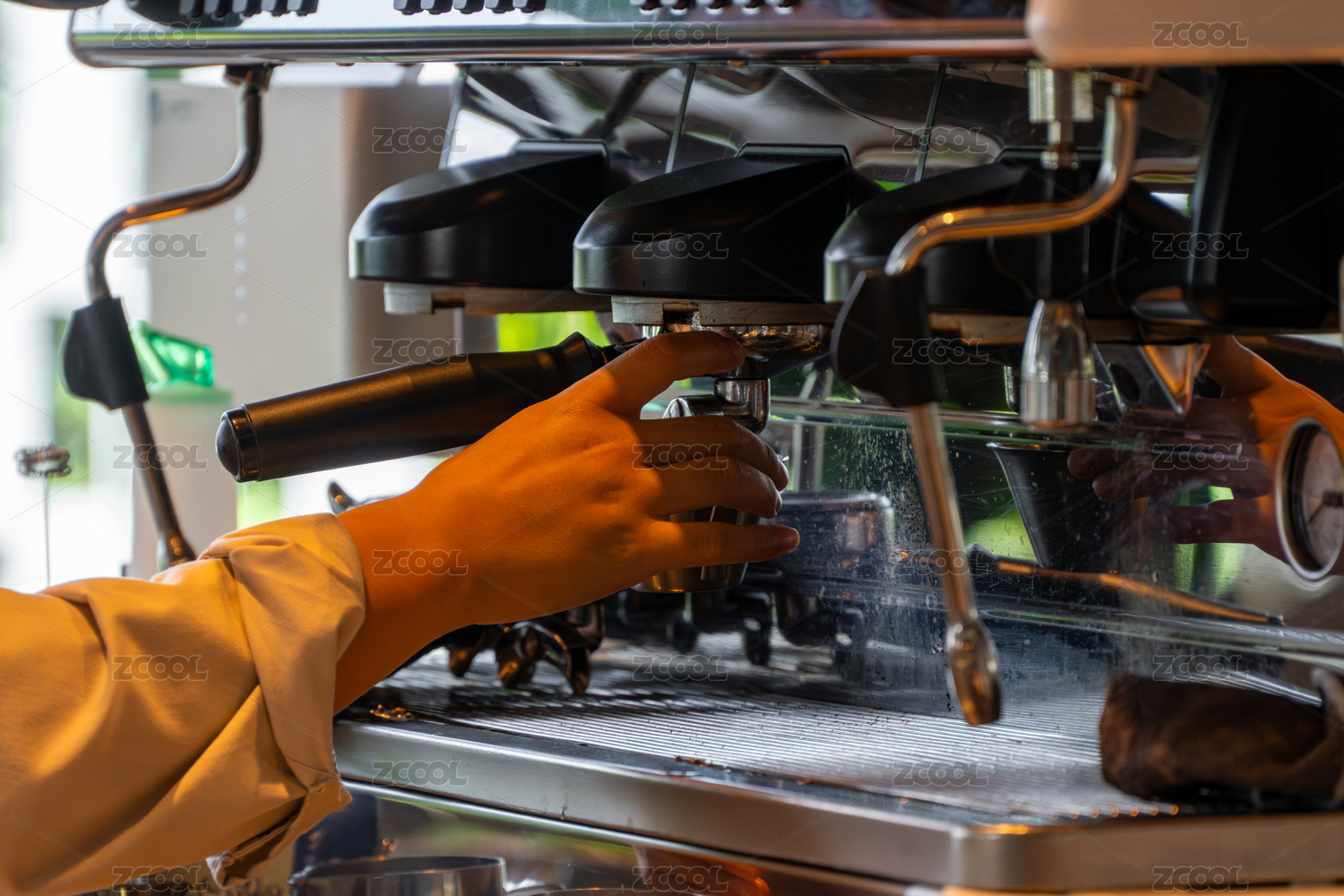 咖啡師正在使用專業(yè)咖啡機制作濃縮咖啡