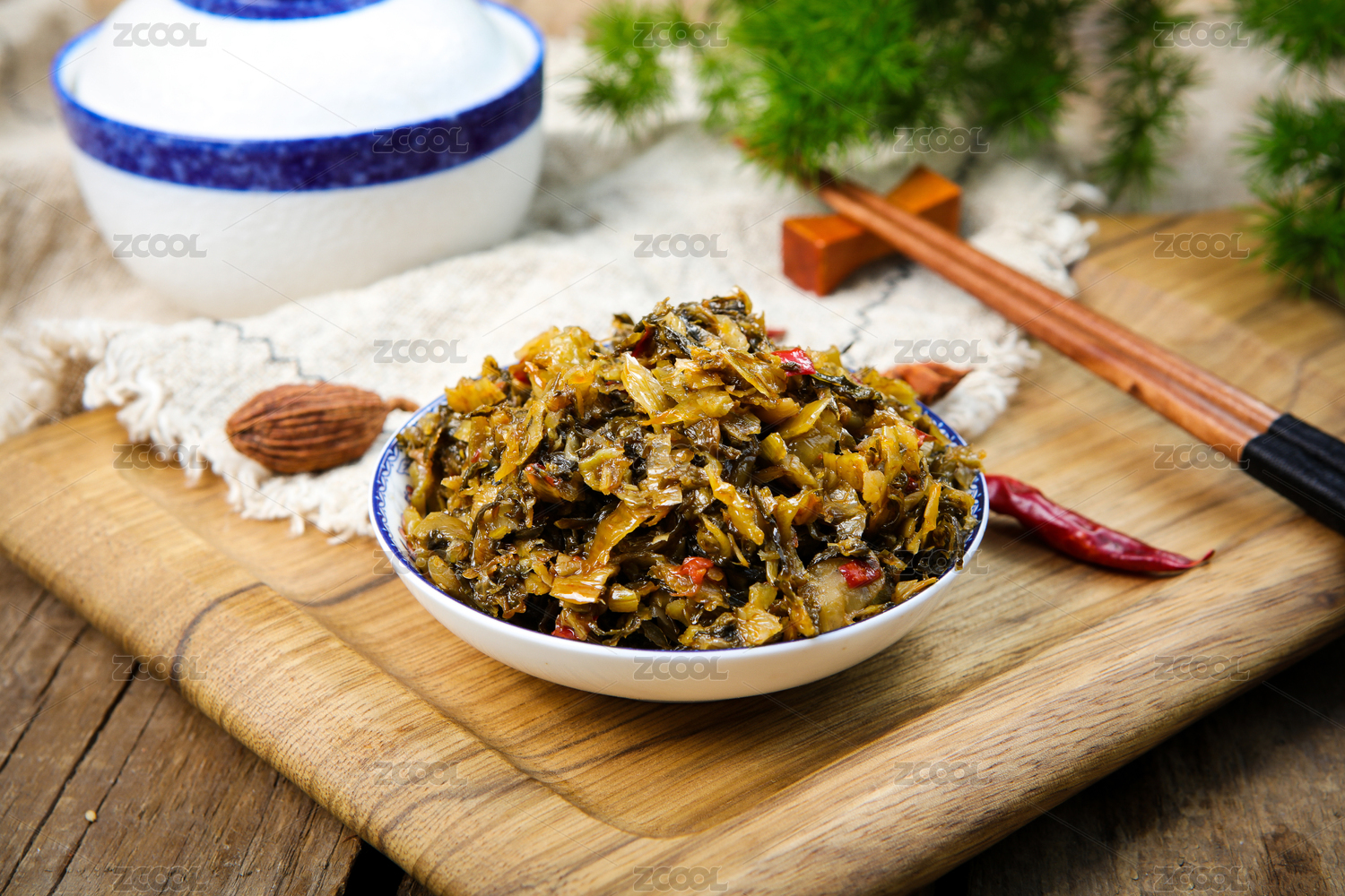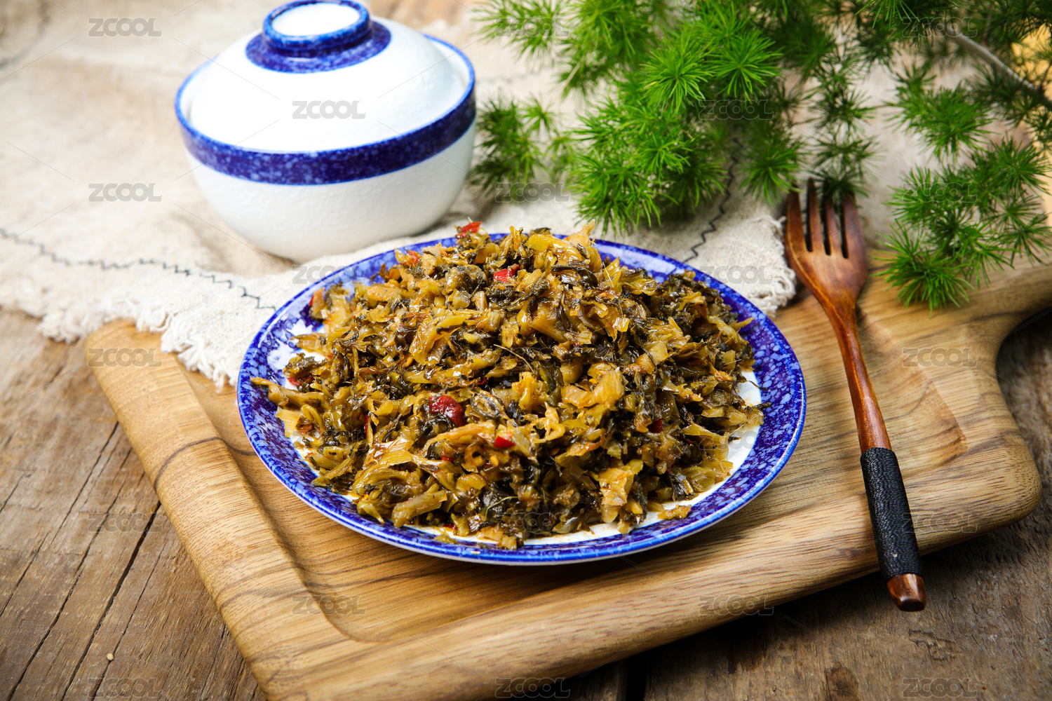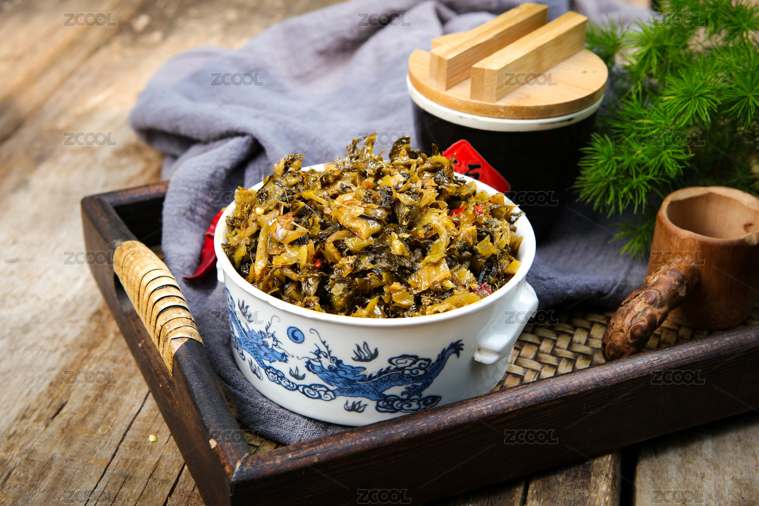 放在木桌上的中國(guó)傳統(tǒng)美食老壇酸菜