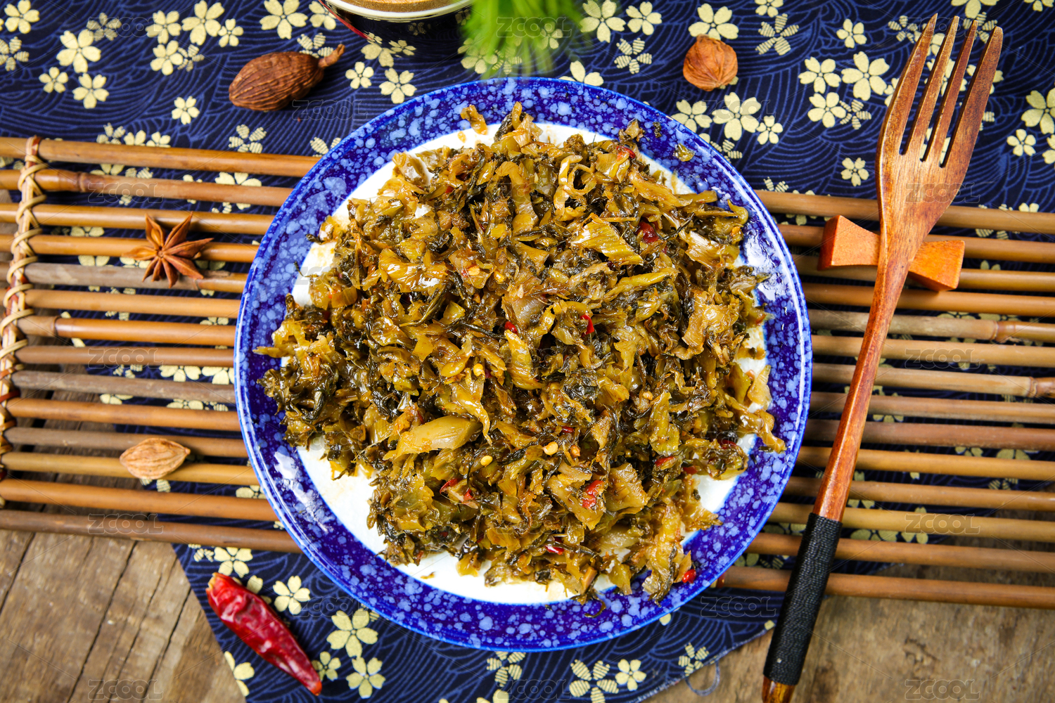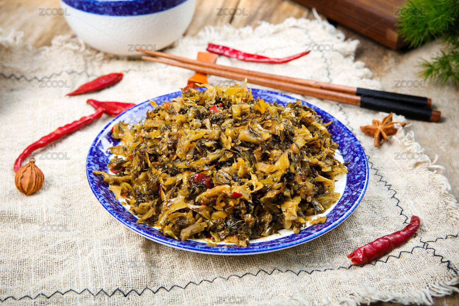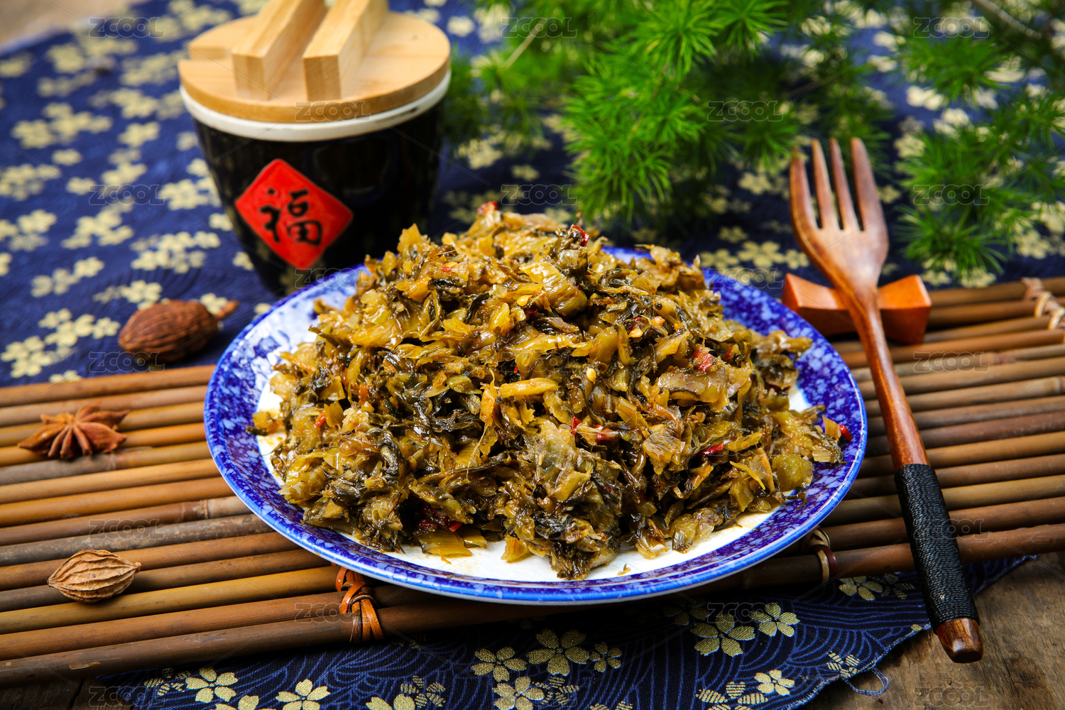 放在木桌上的中國(guó)傳統(tǒng)美食老壇酸菜