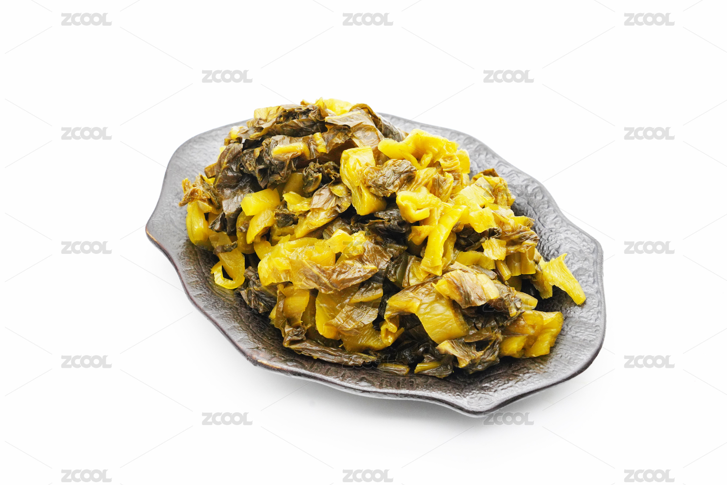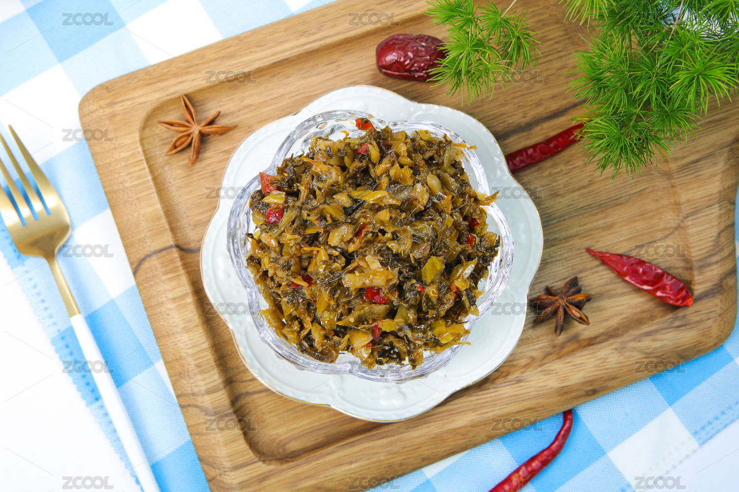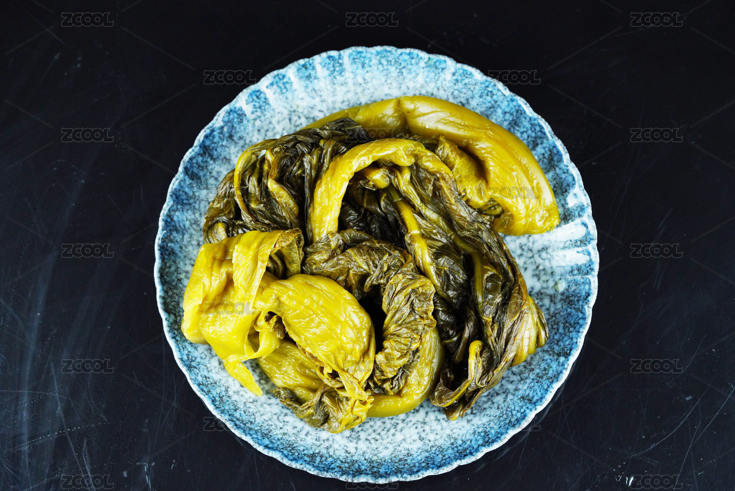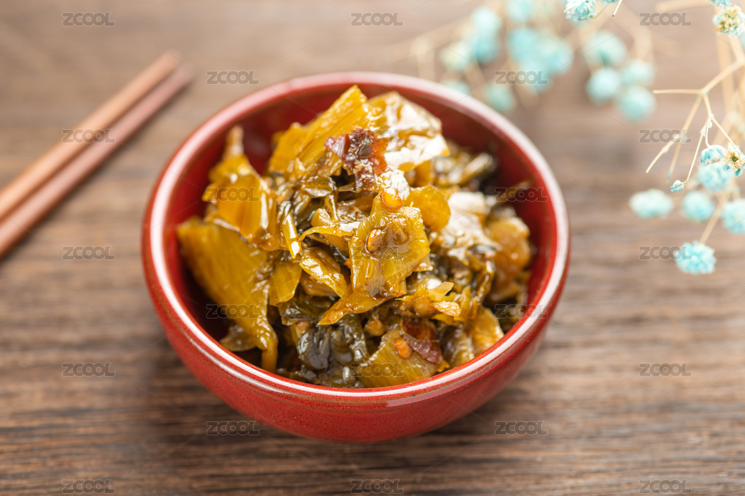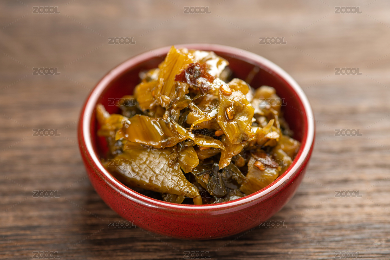一盤老壇酸菜擺放在木桌面上