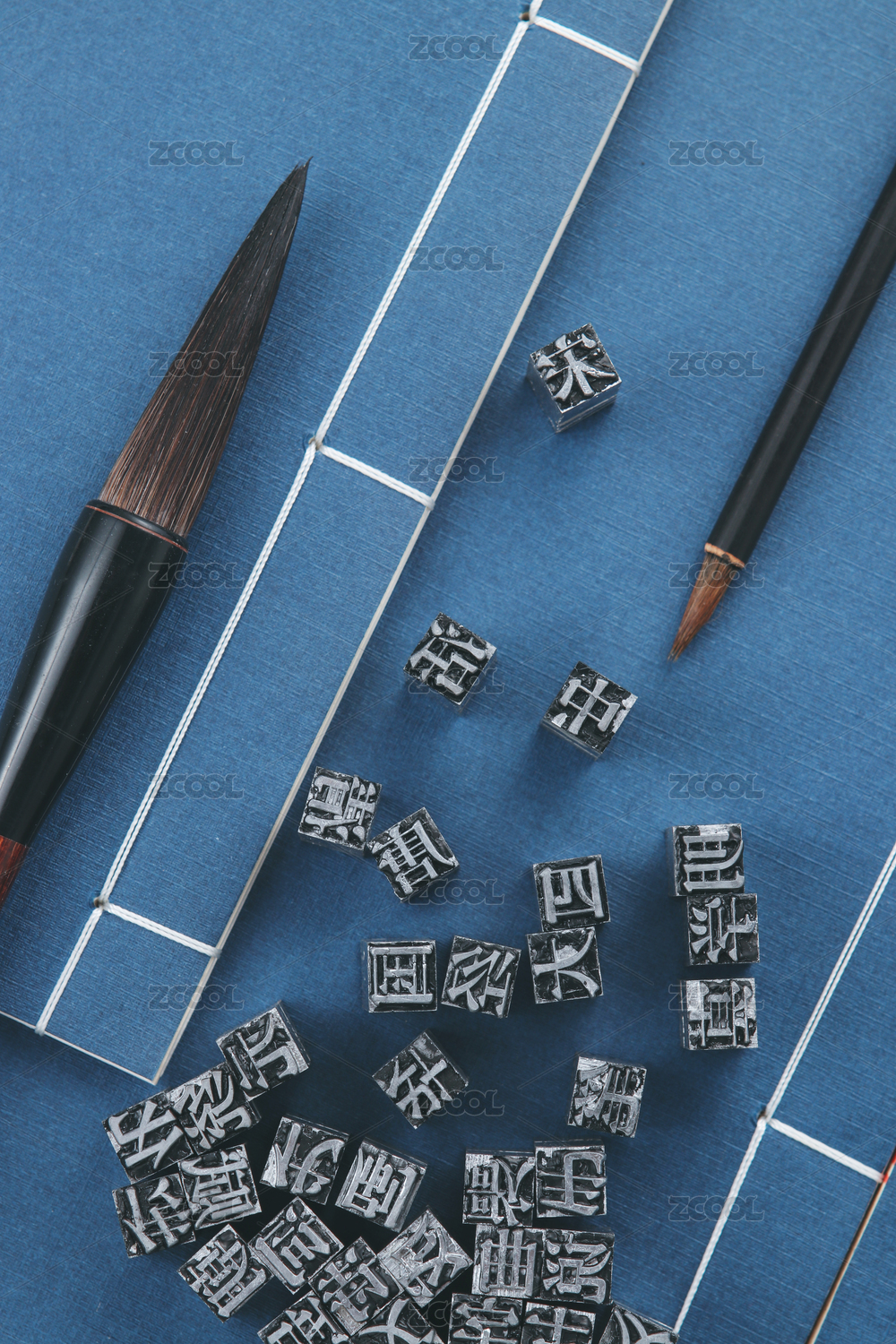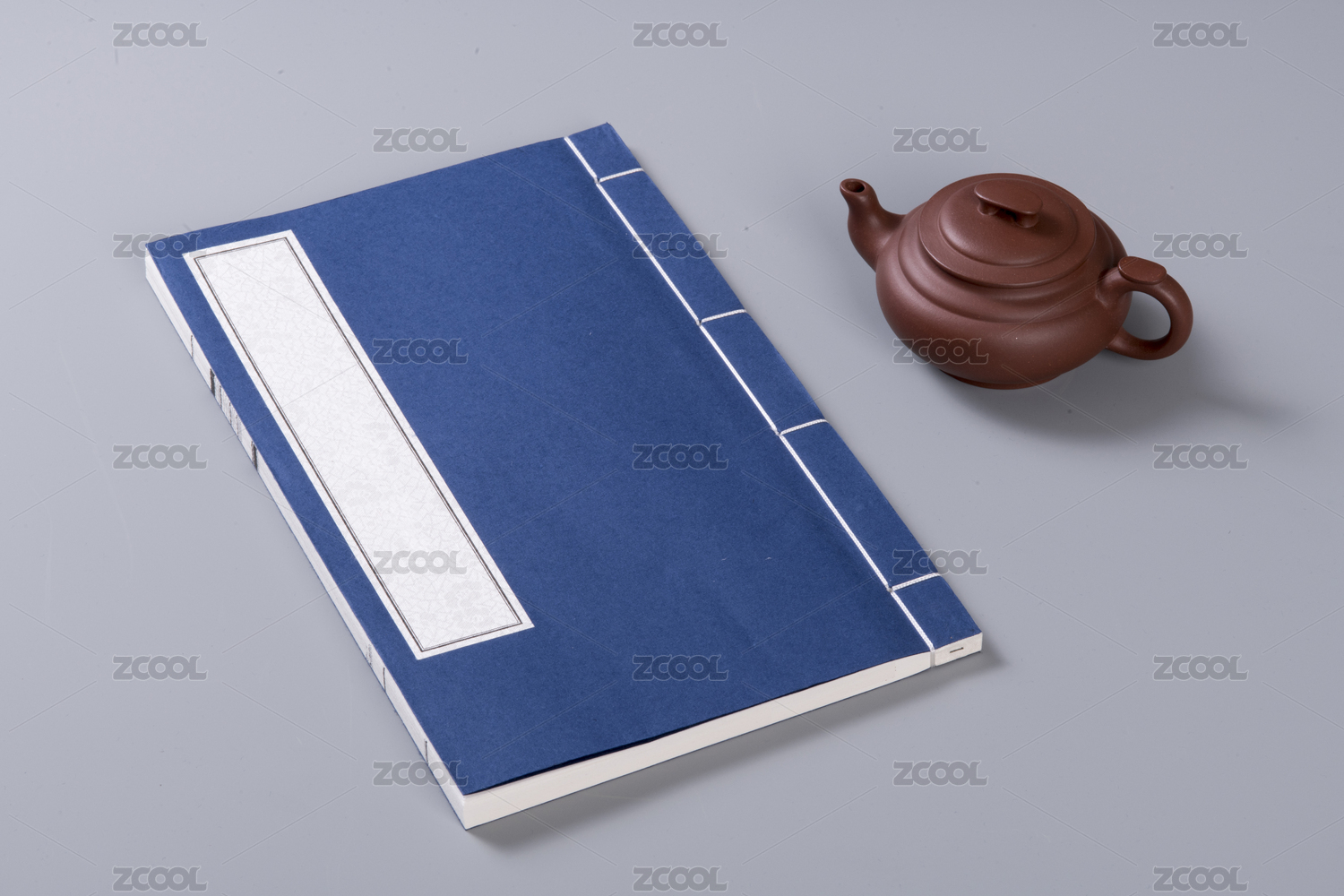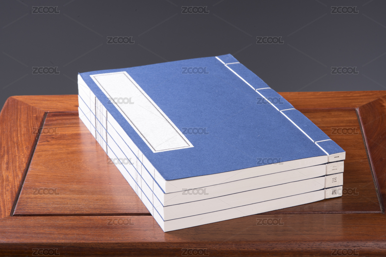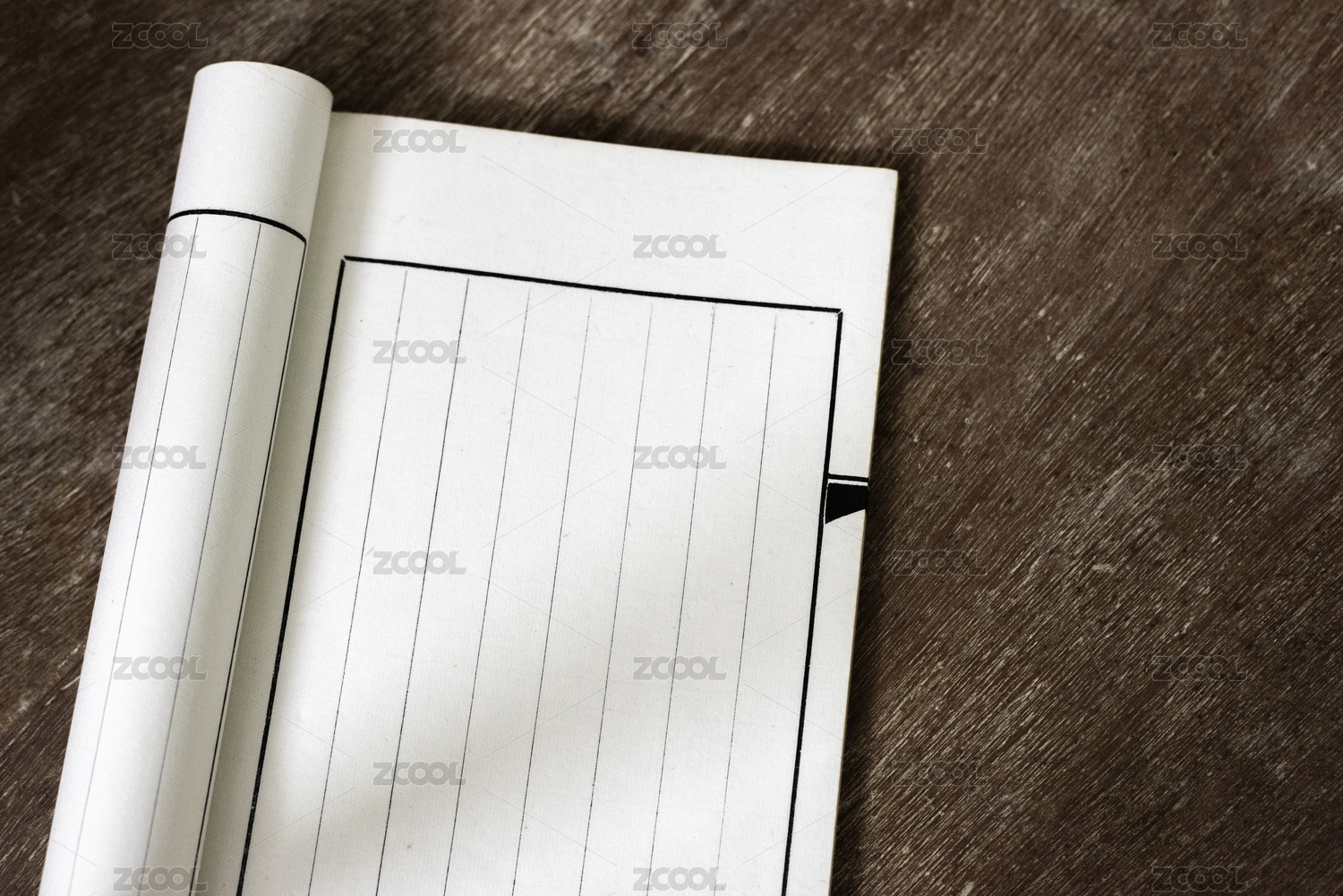 木質(zhì)桌案上的空白沒有文字的抄經(jīng)本線裝書