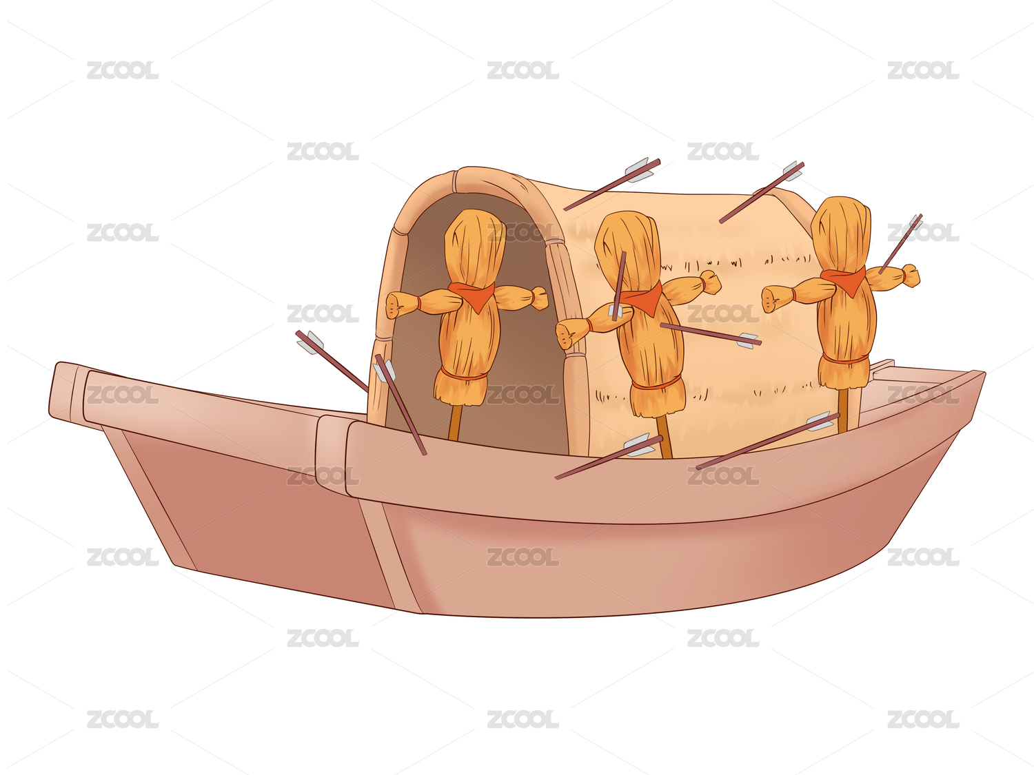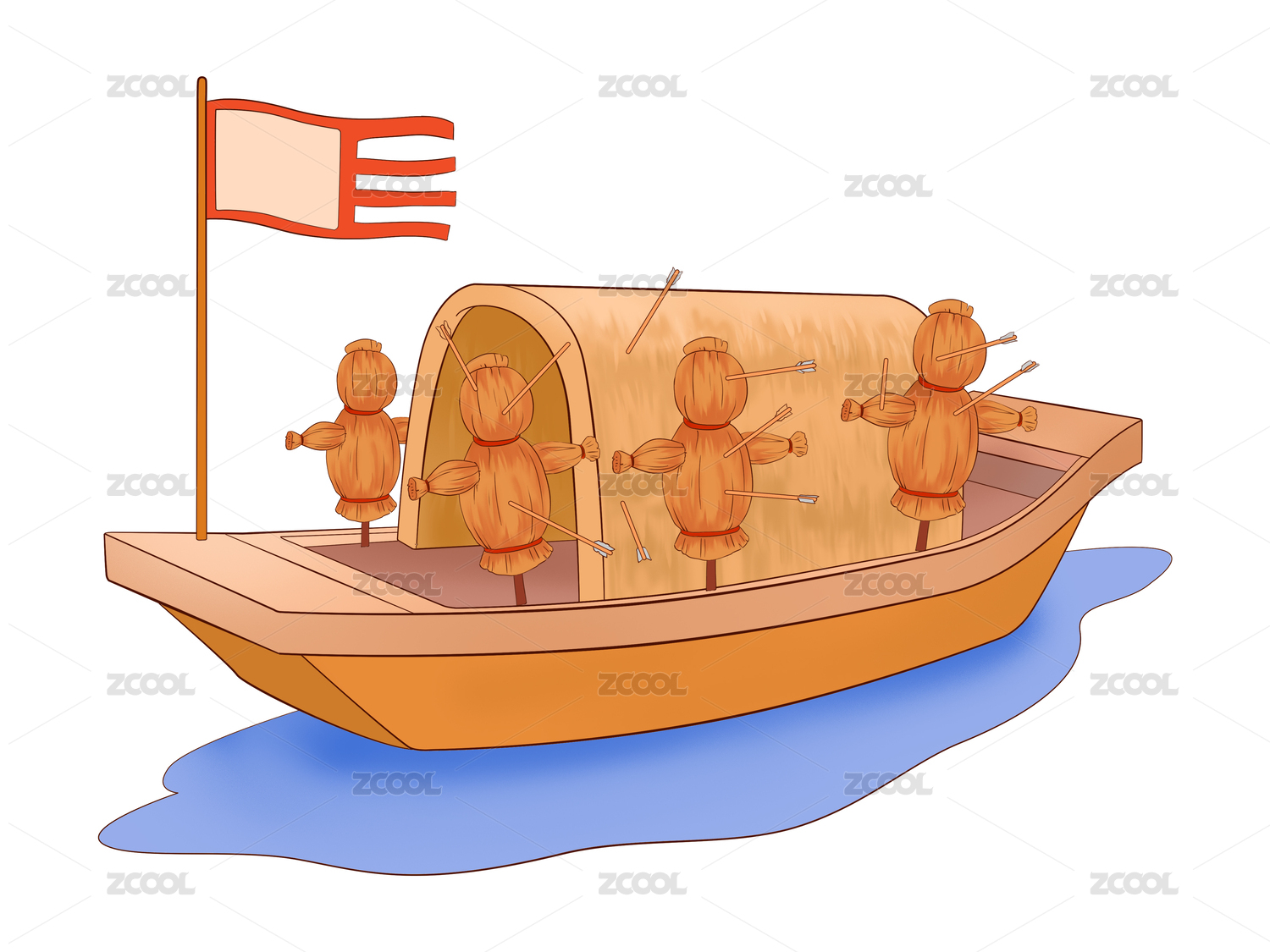 暖色手繪成語(yǔ)典故之草船借箭元素