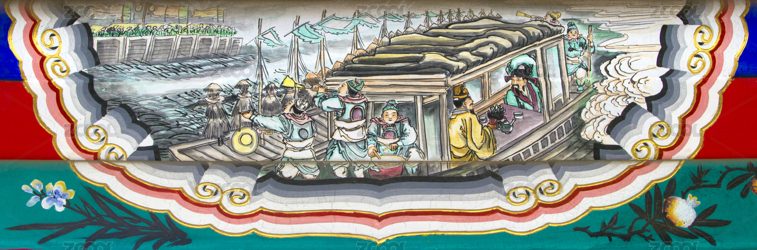 三國(guó)演義經(jīng)典故事草船借箭船只古裝人物