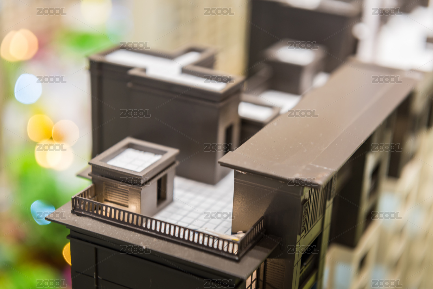 沙盤中房地產(chǎn)模型樓房房頂局部特寫