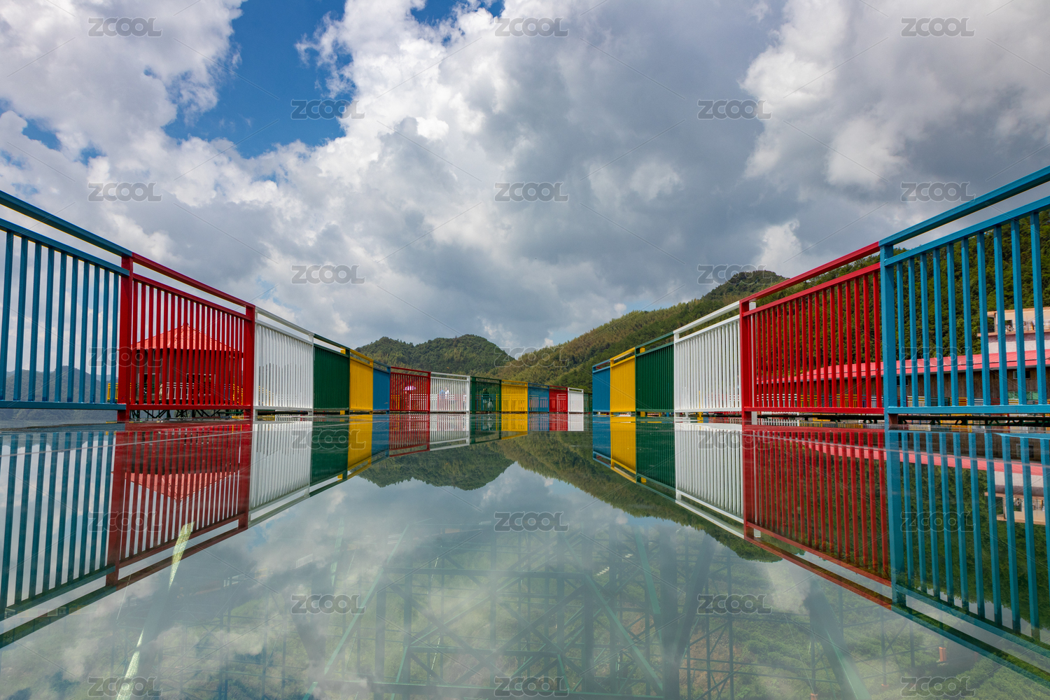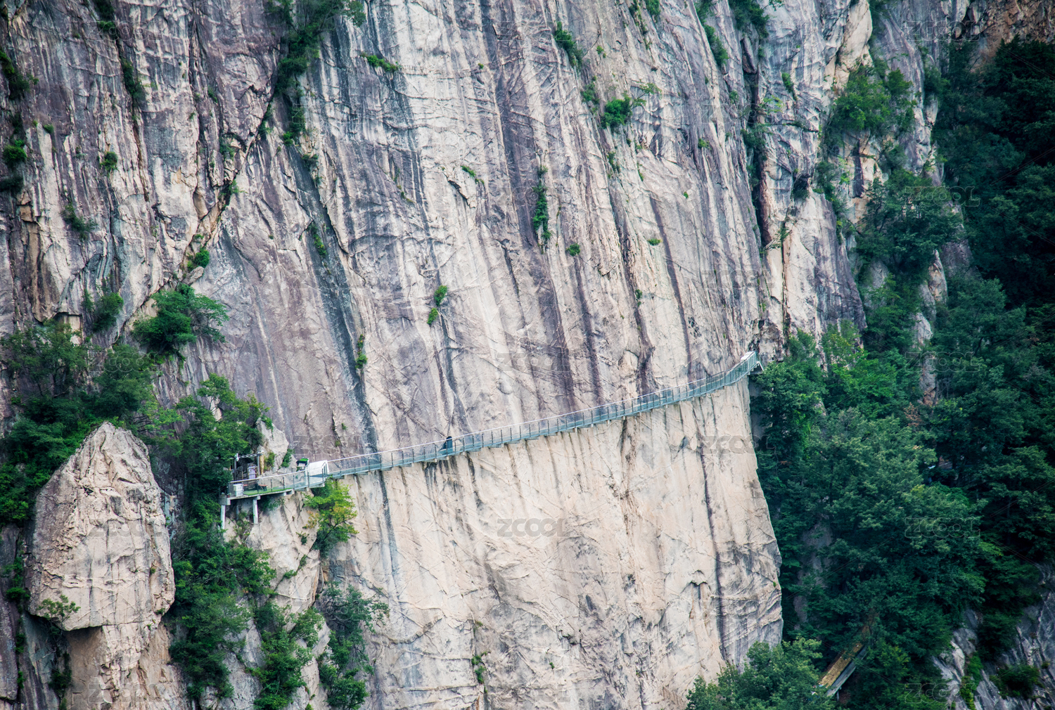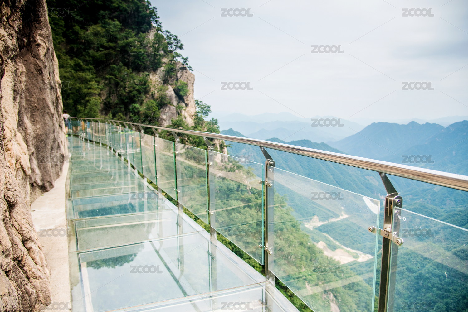 郊區(qū)風(fēng)景區(qū)峭壁上的玻璃棧道風(fēng)景