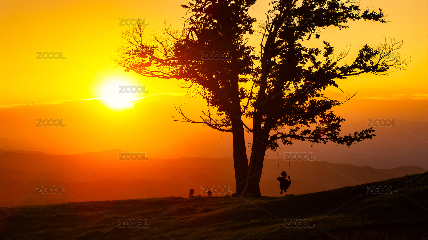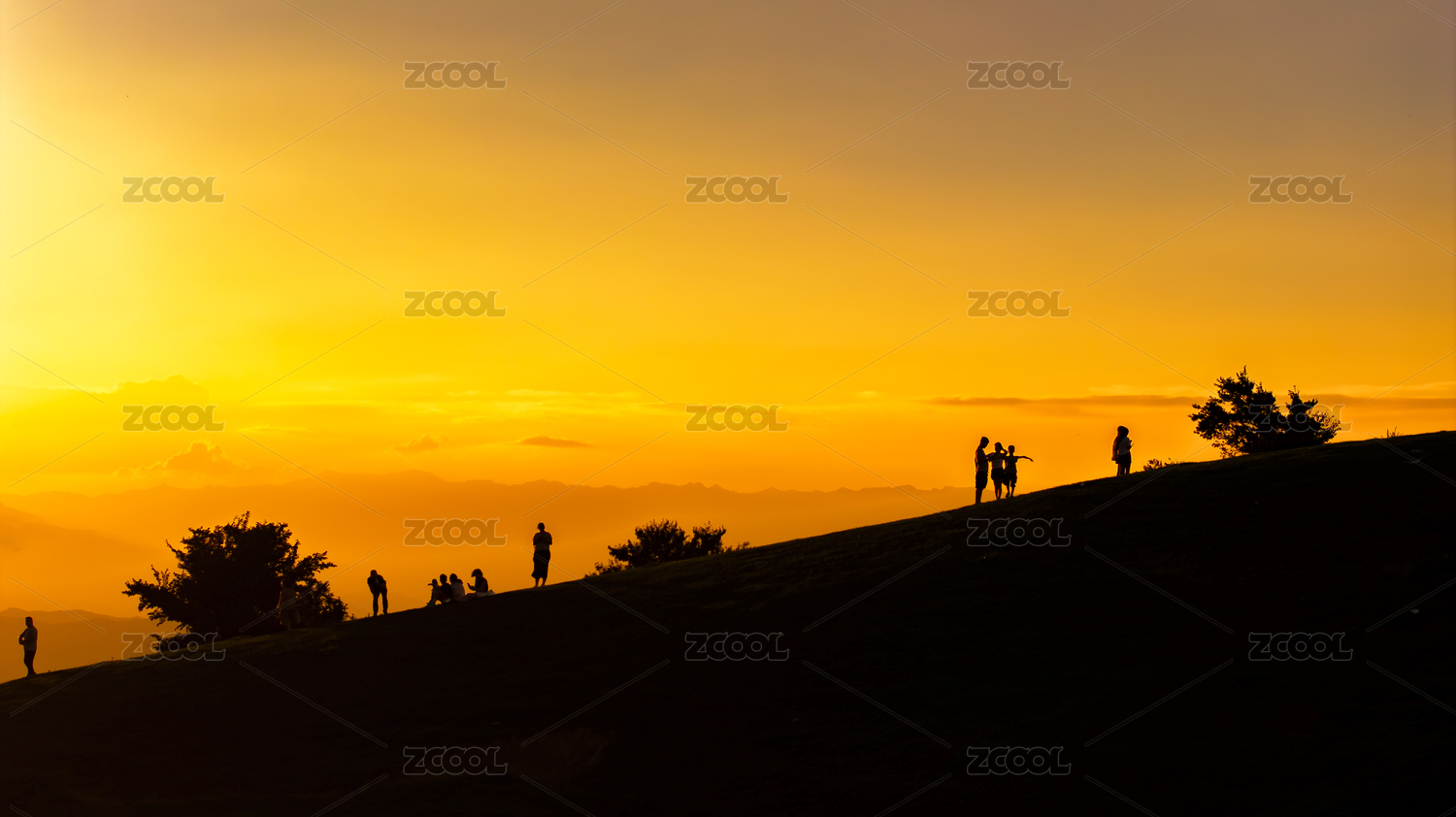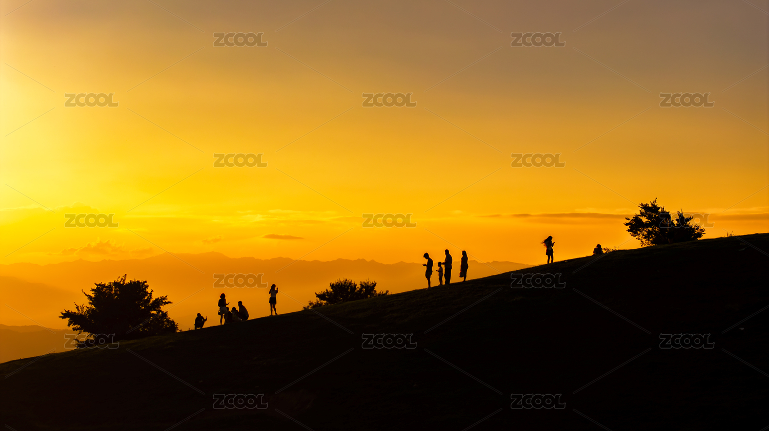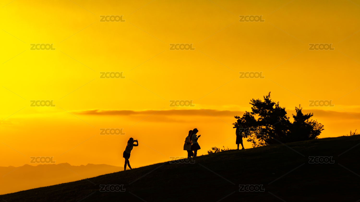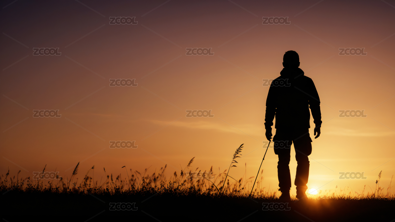 戶外草地人物剪影