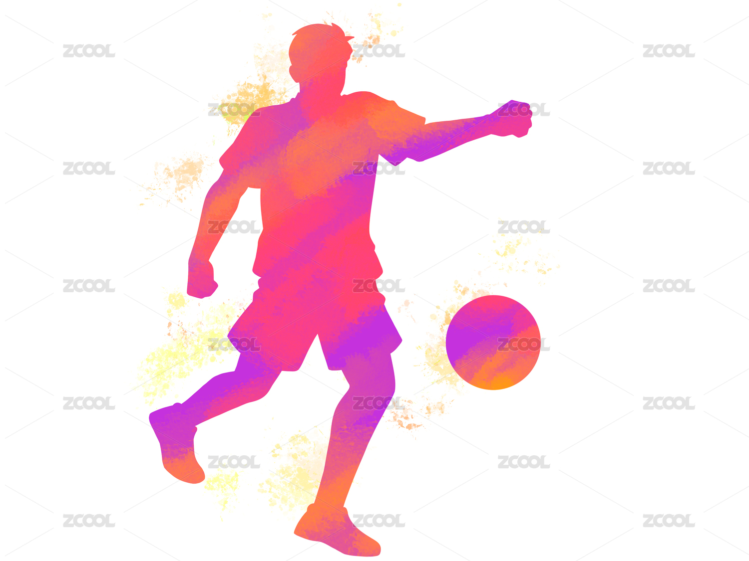 踢足球人物剪影粉紅色運(yùn)動員踢足球元素