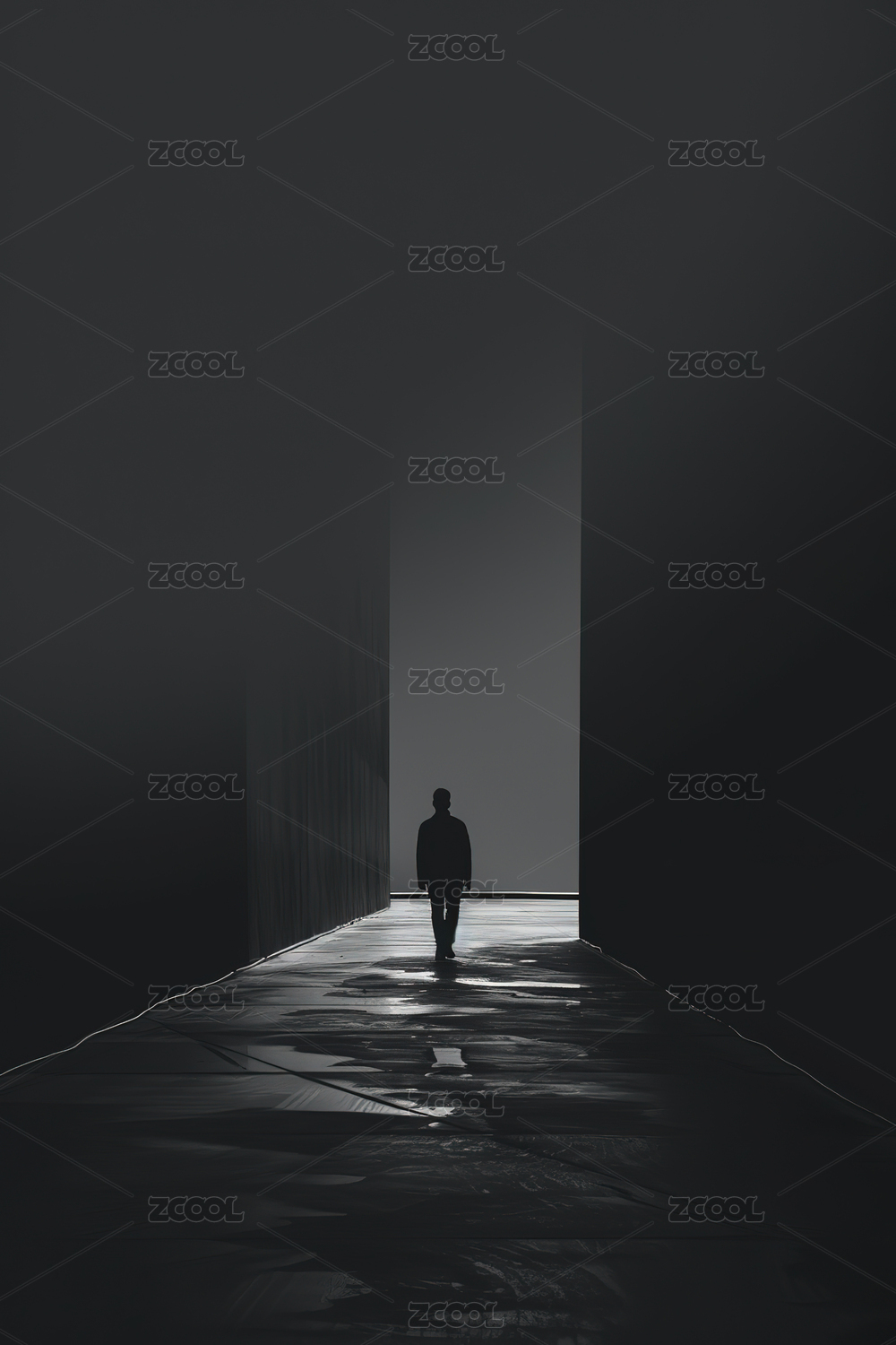 科技AI圖標(biāo)門前人物剪影背景