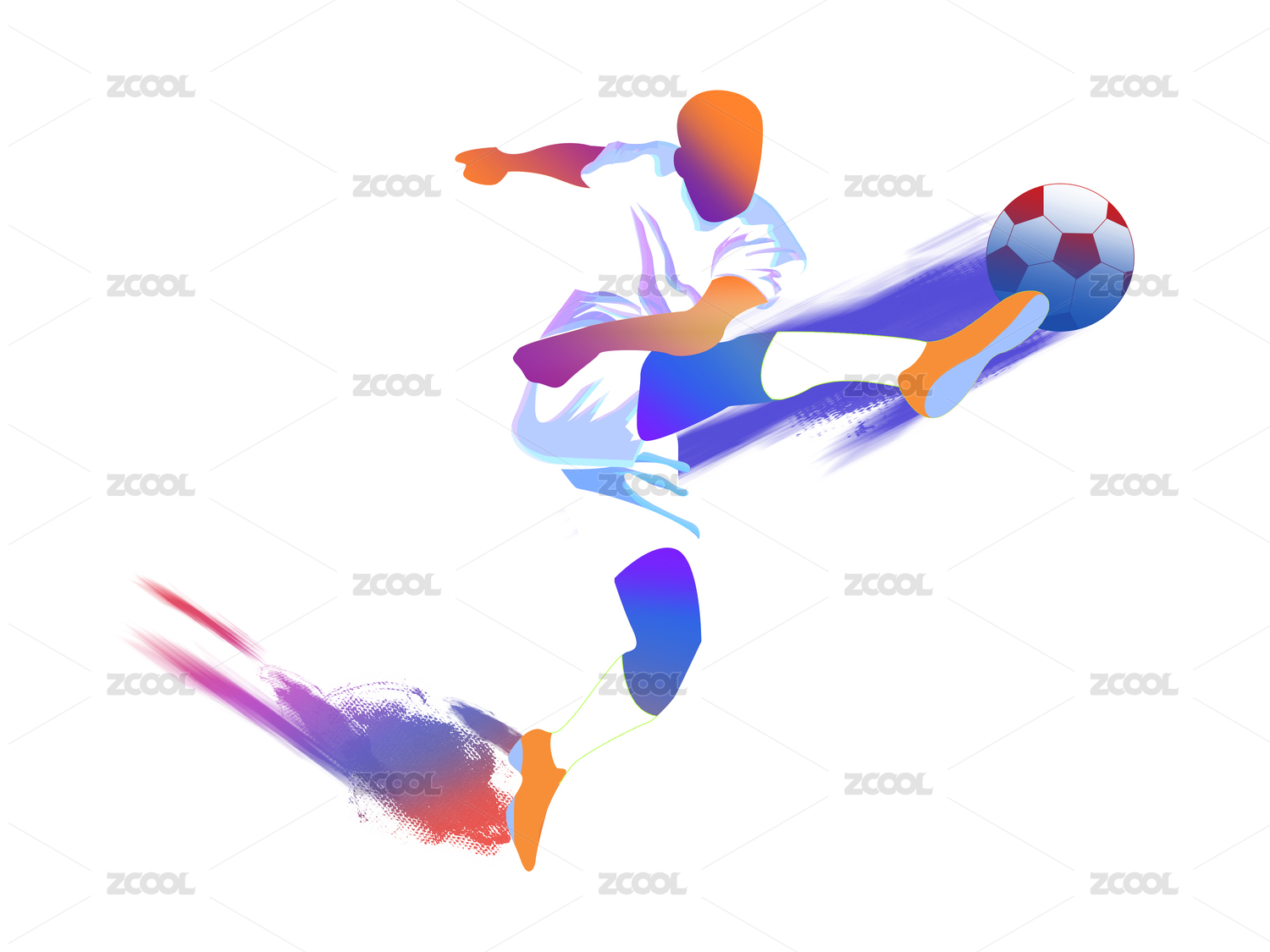 炫彩踢足球人物剪影一個(gè)正在踢足球的人