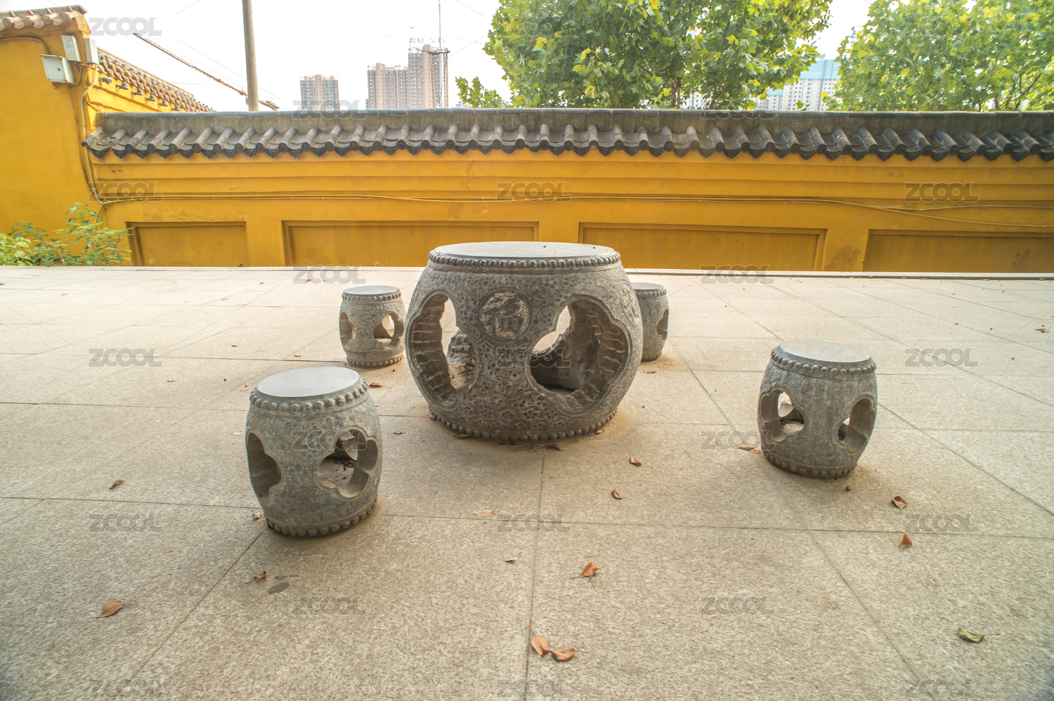 中國湖北武漢寶通禪寺石桌和石凳