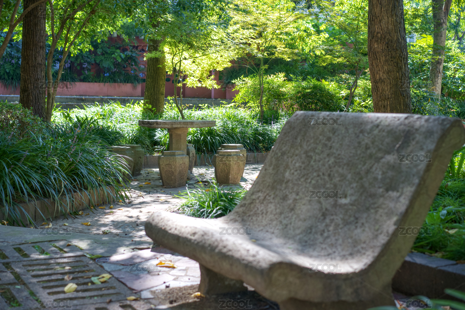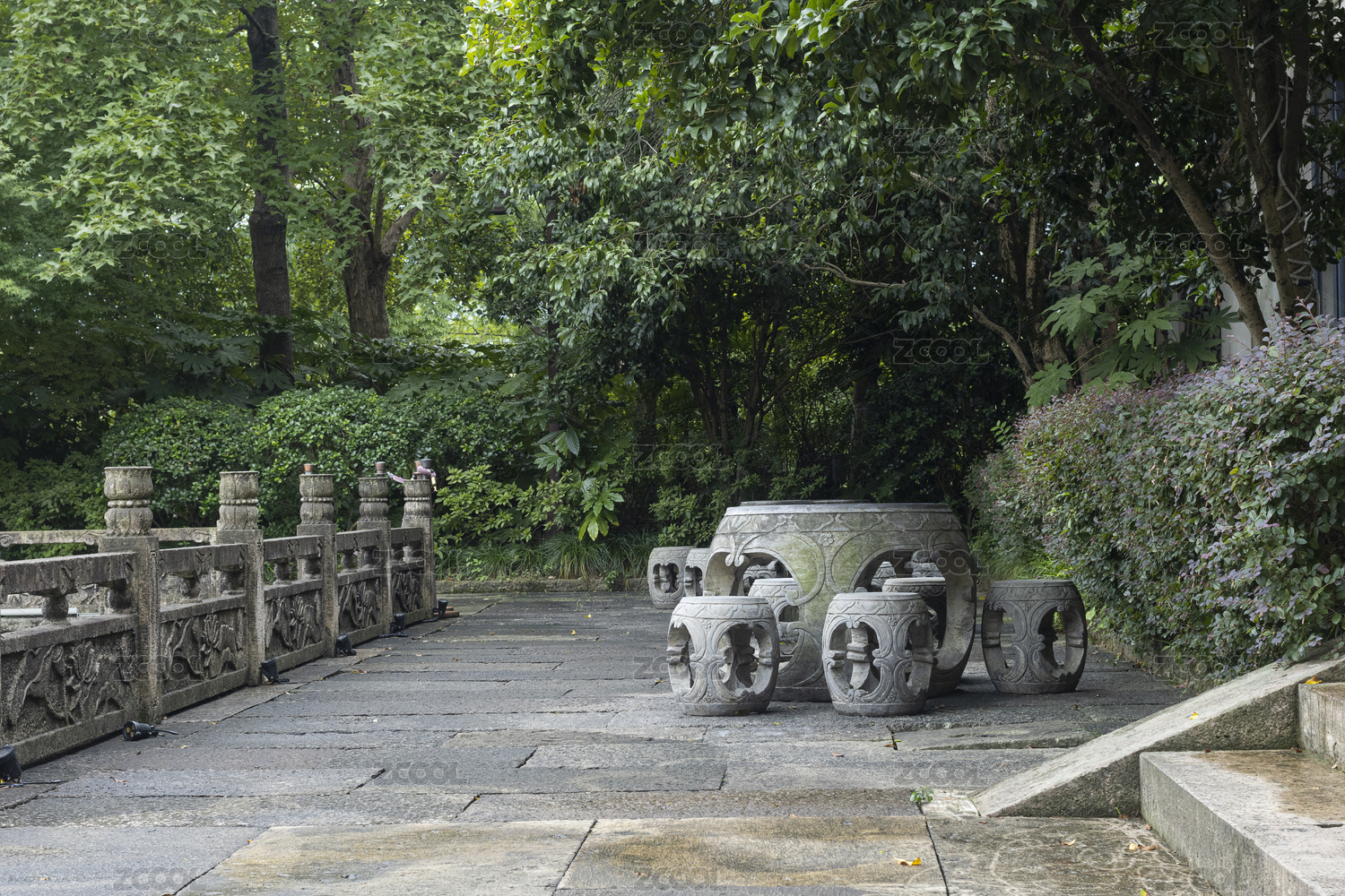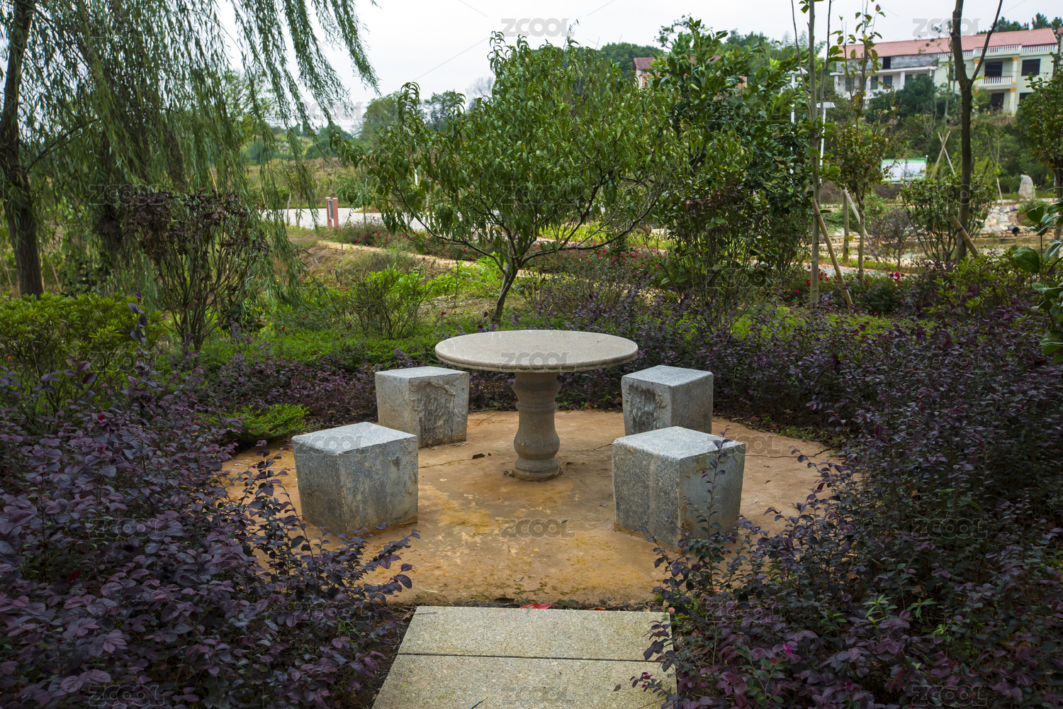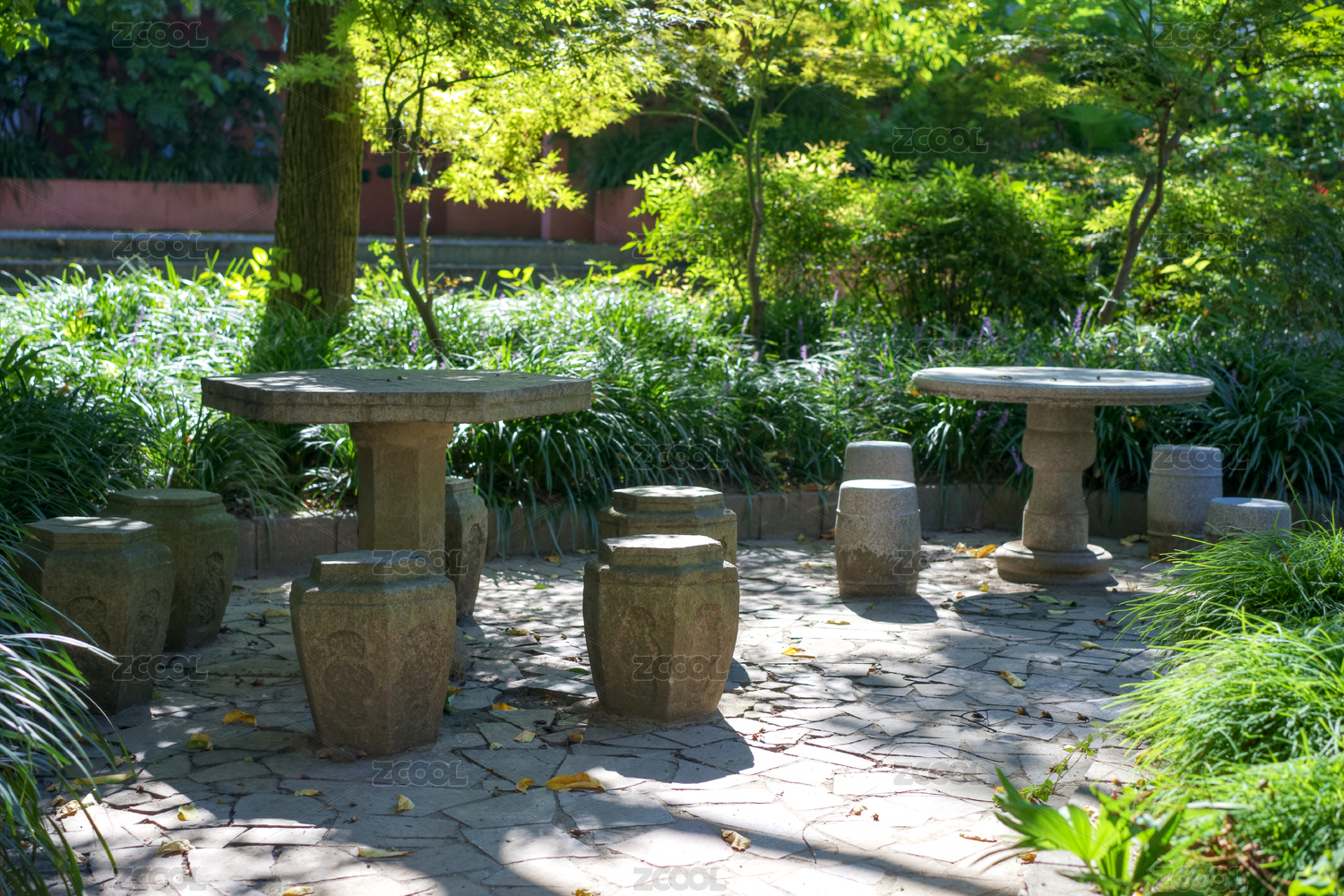 庭院休憩區(qū)的石桌和石凳