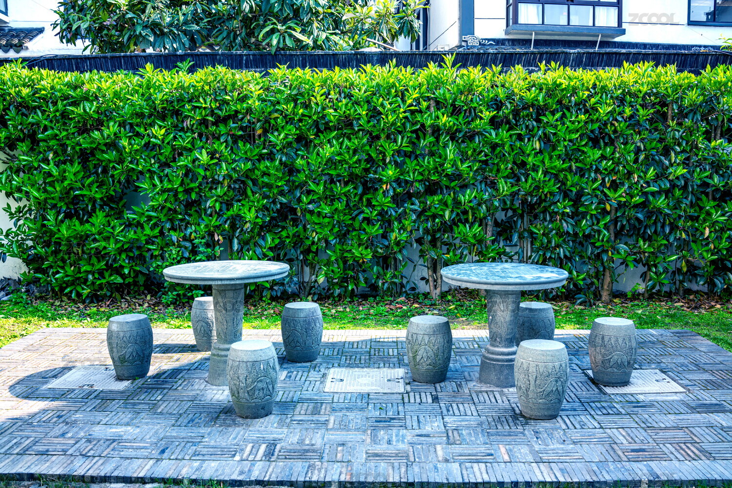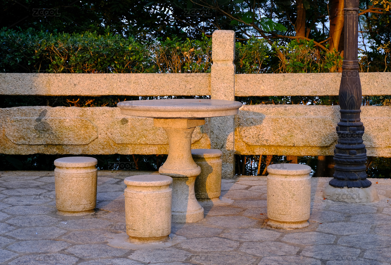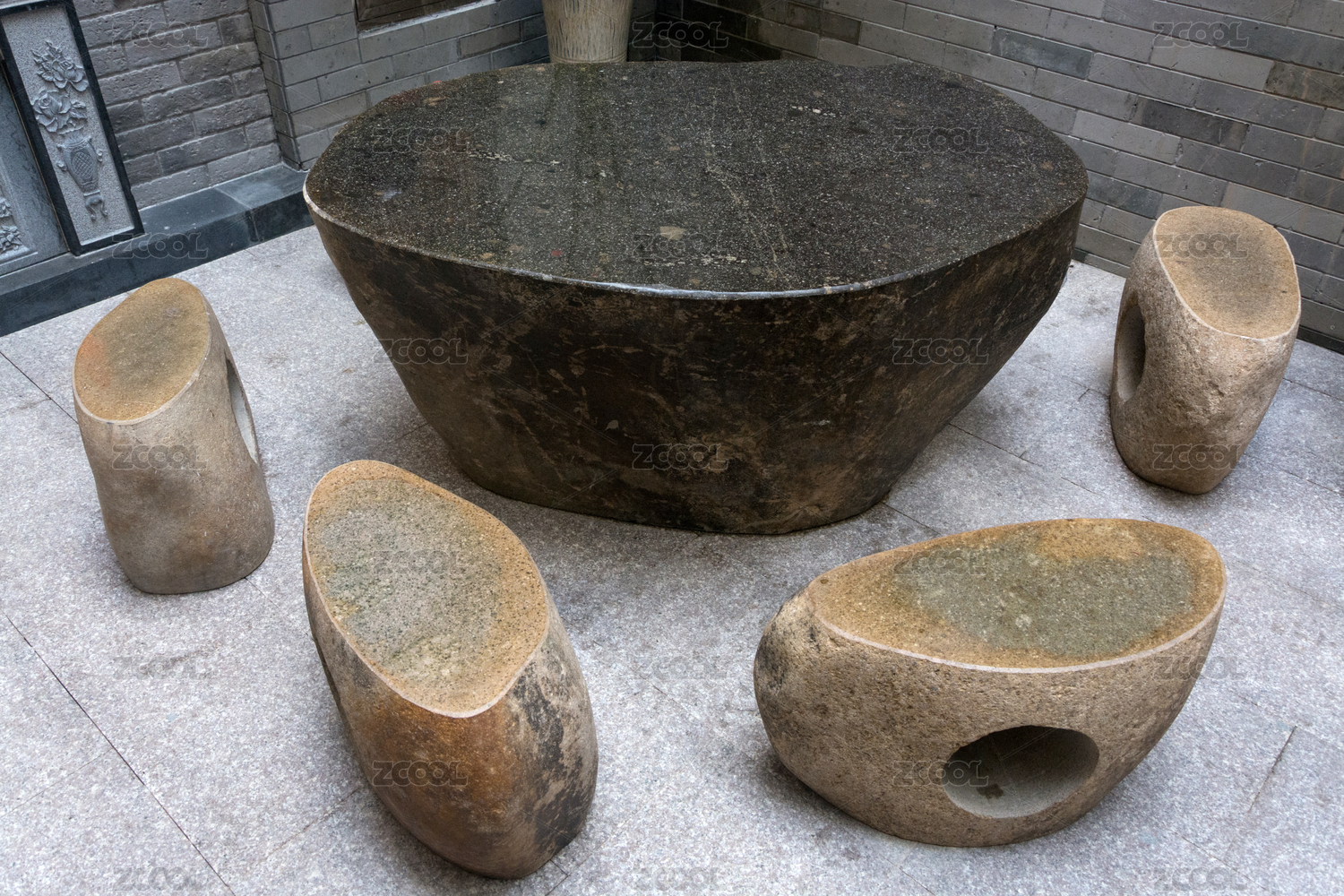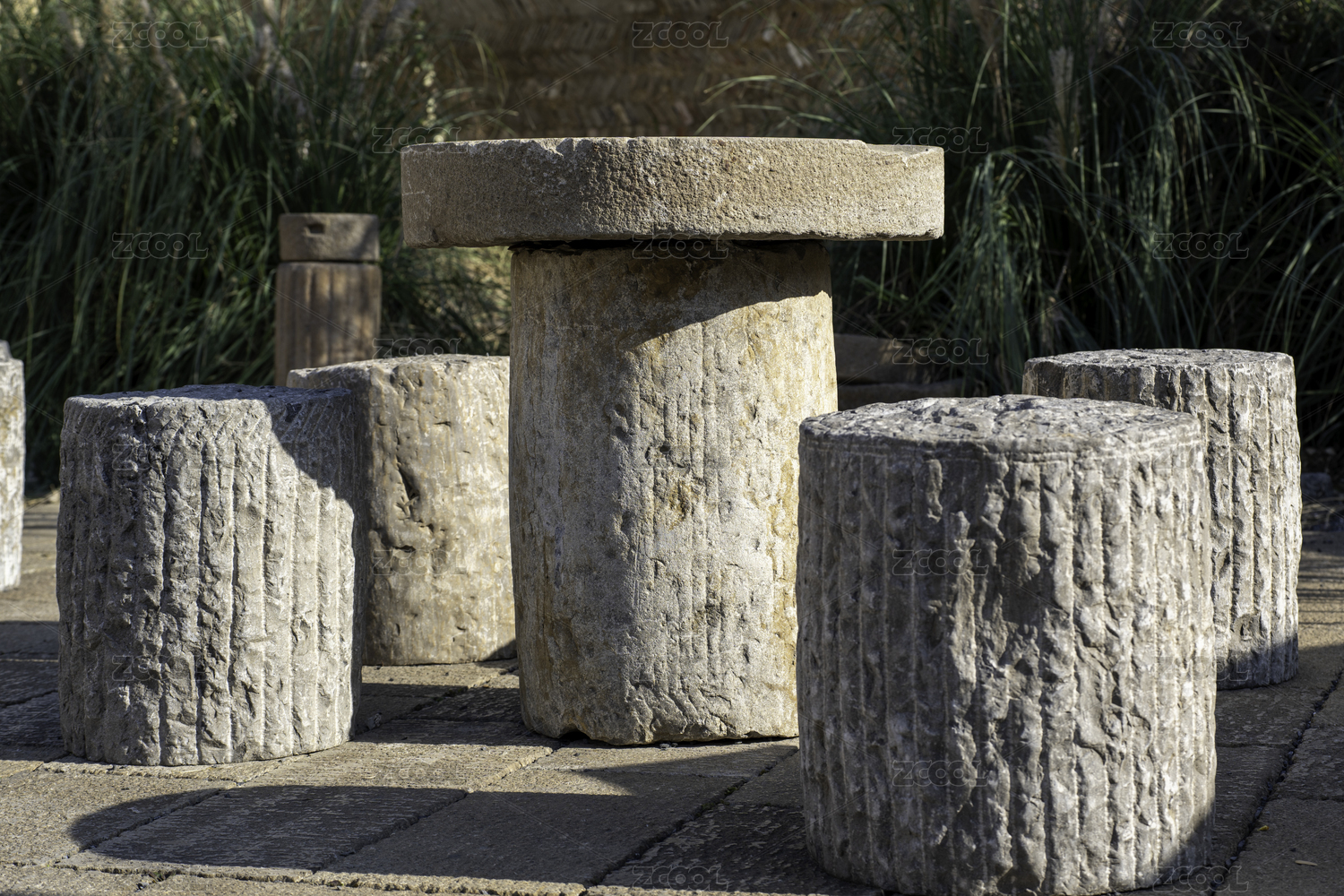 庭院休憩區(qū)的石桌和石凳