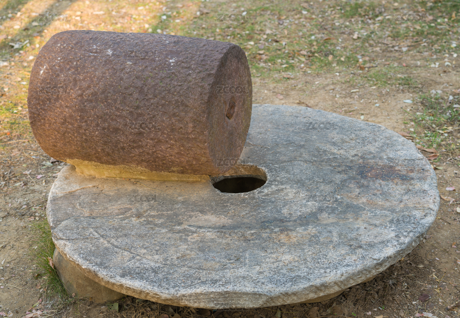 城市公園里供游人休閑娛樂使用的石磨石桌