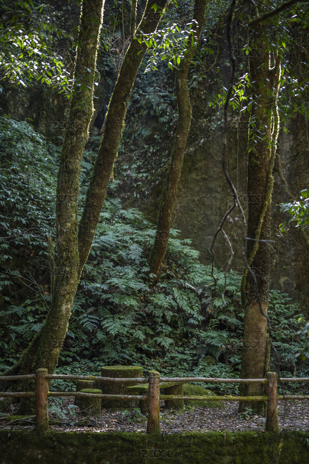 森林里的石桌椅