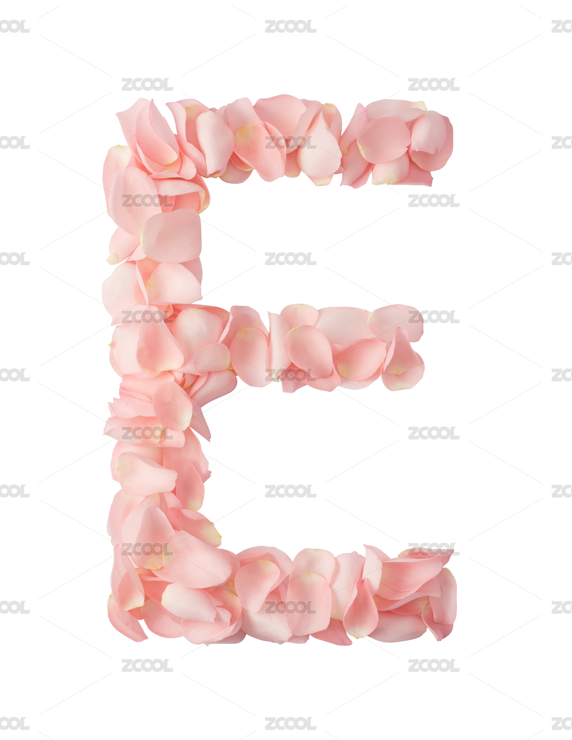 粉色的鮮花花瓣拼出來的英文字母E