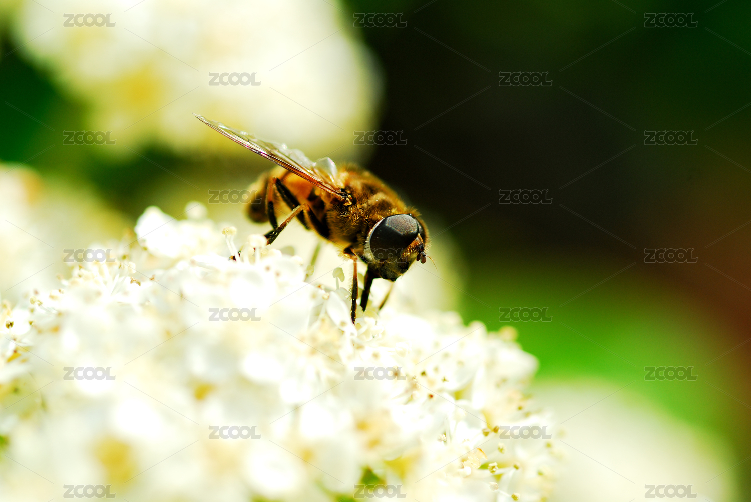 白色花朵上的一只小蜜蜂