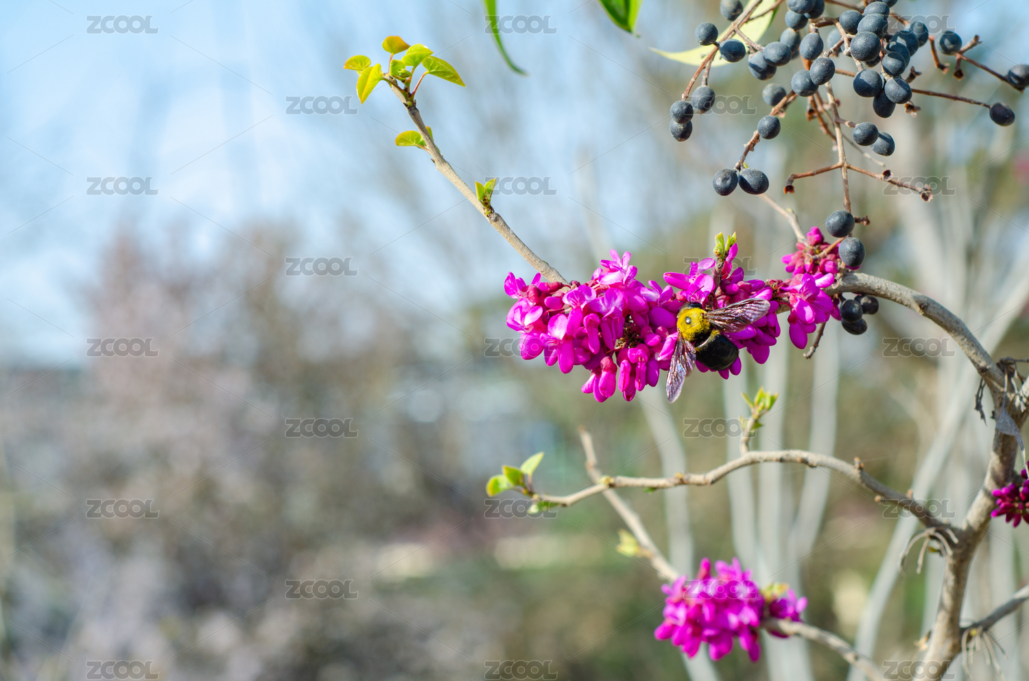 一只大蜂在紫荊花上采蜜