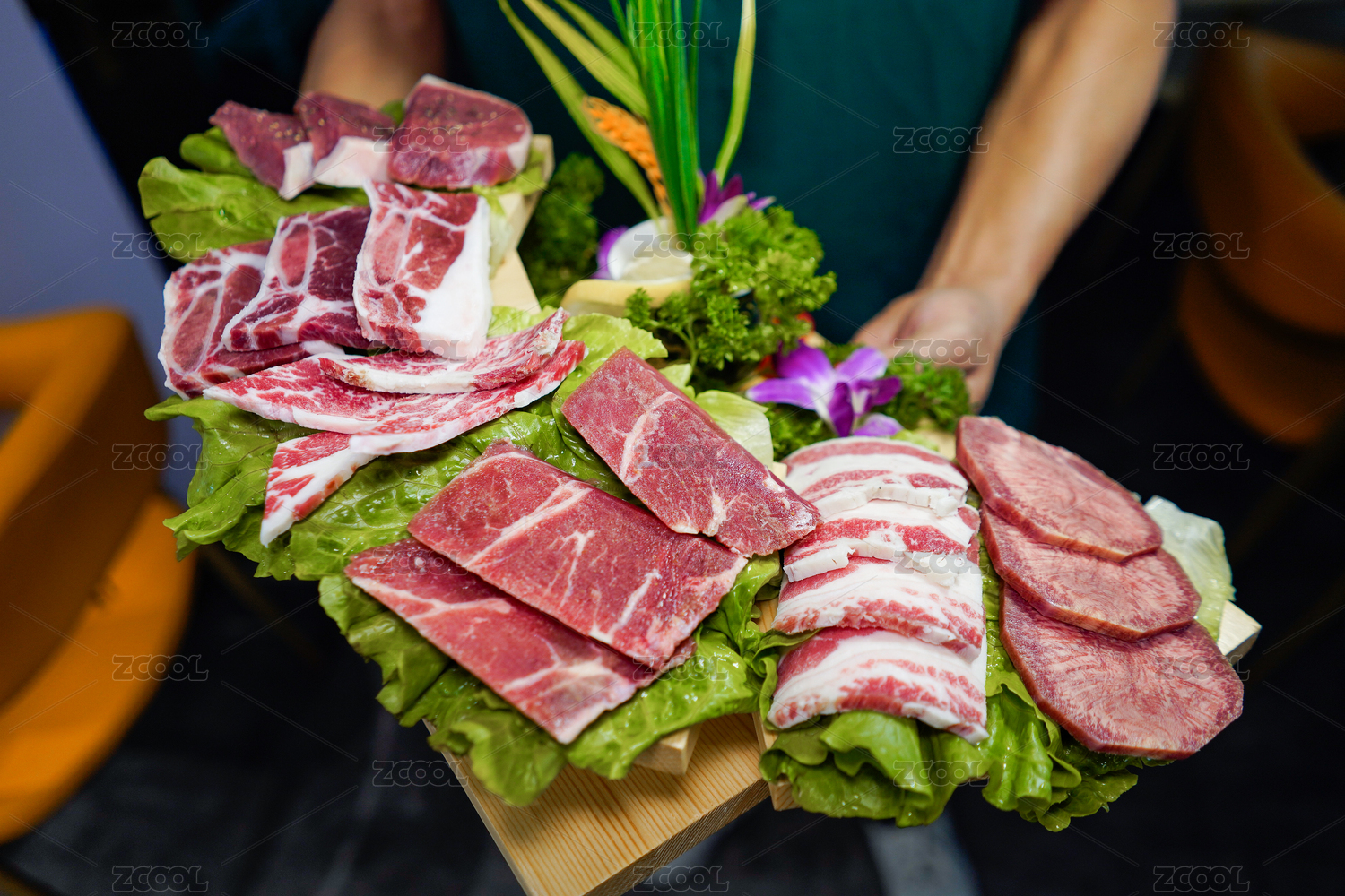 東北燒烤的牛肉食材拼盤(pán)擺盤(pán)展示