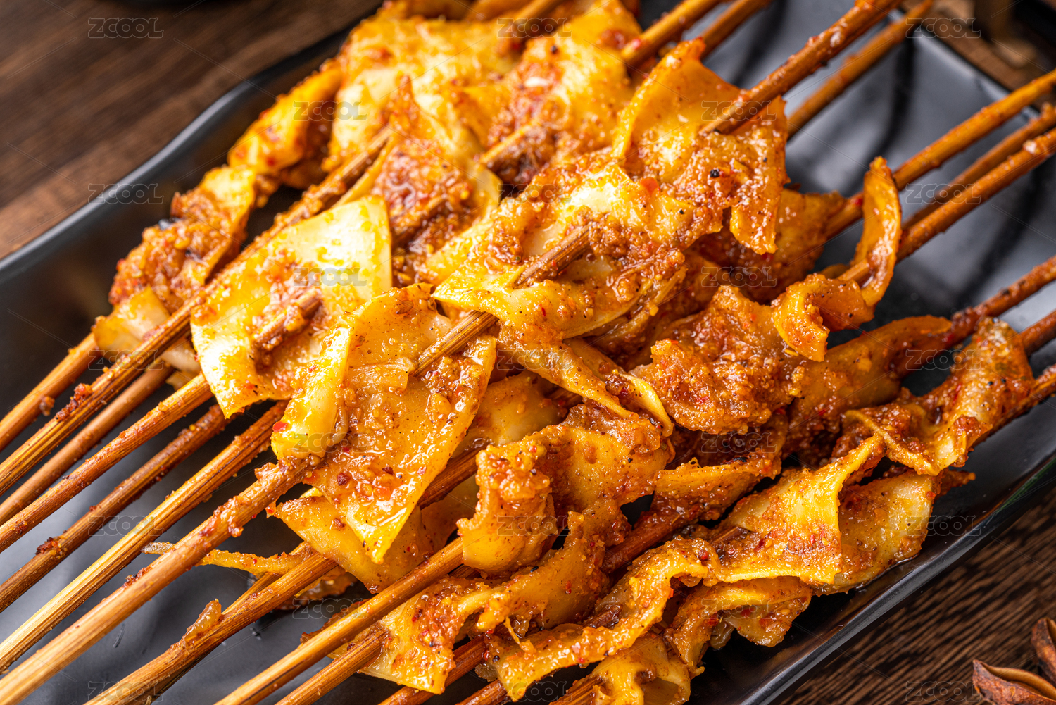 東北燒烤的牛肉拼盤(pán)特寫(xiě)展示
