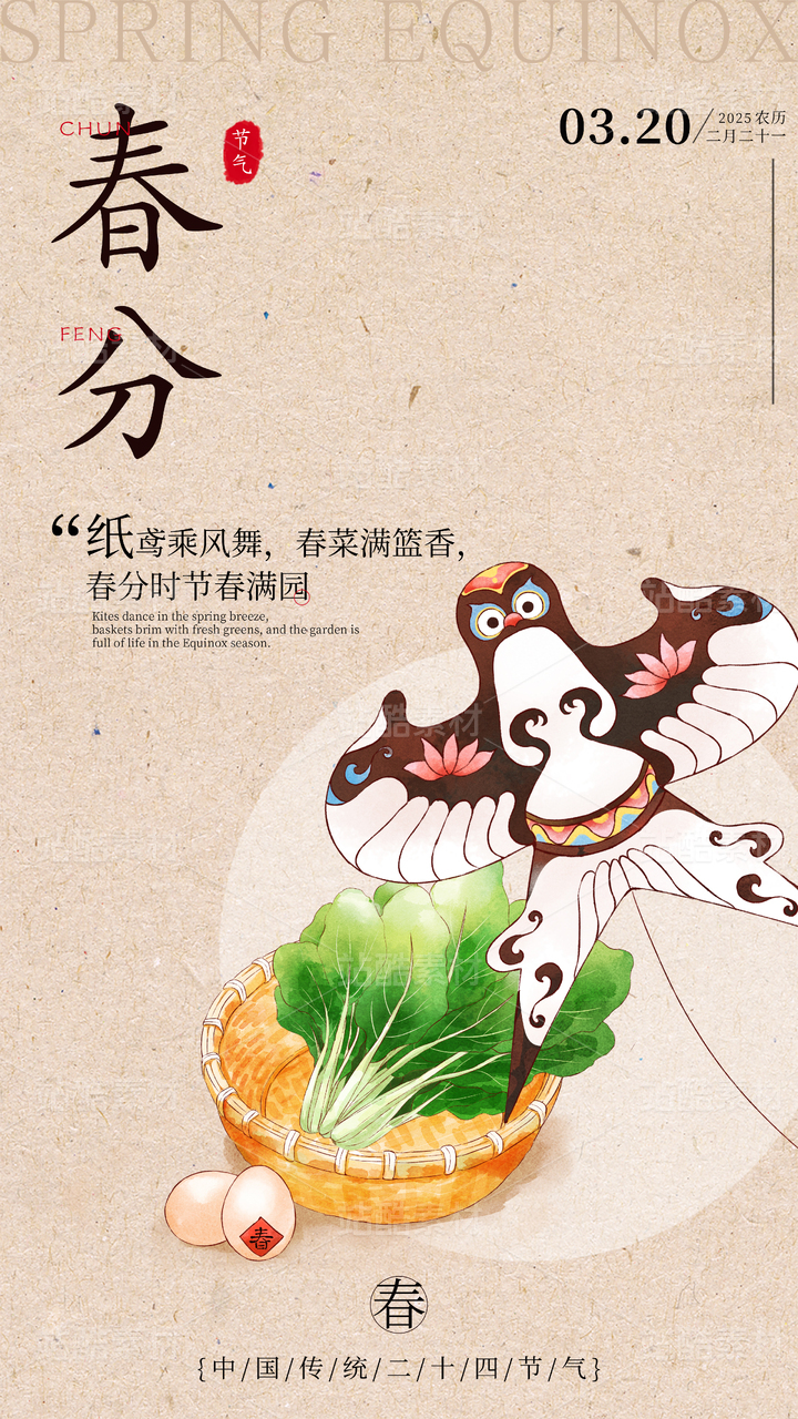 春分節(jié)氣插畫(huà)手機(jī)海報(bào)
