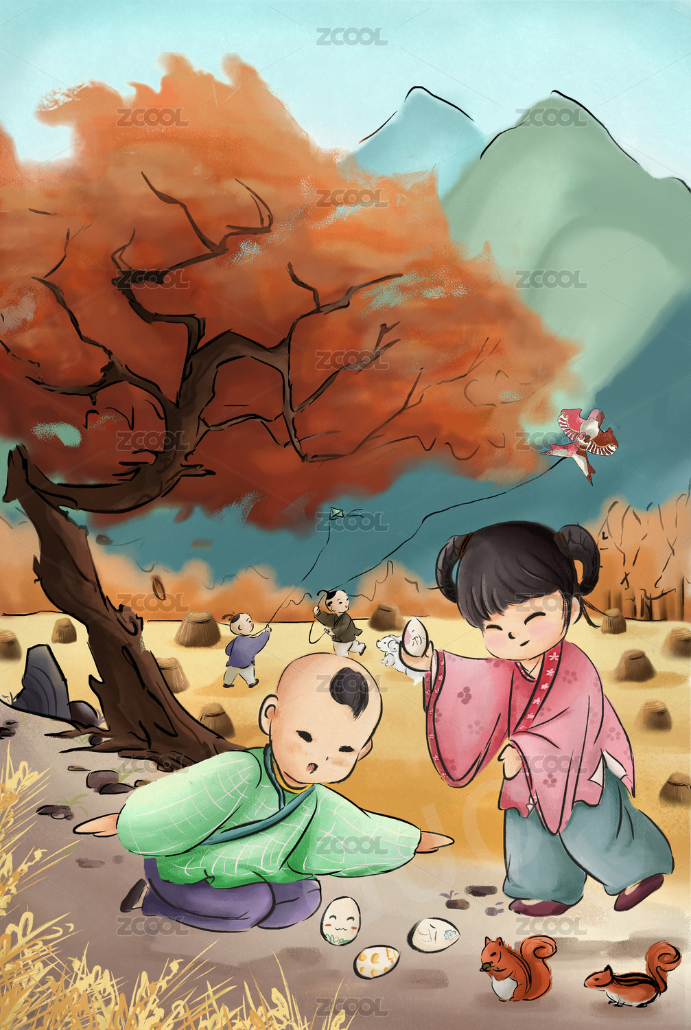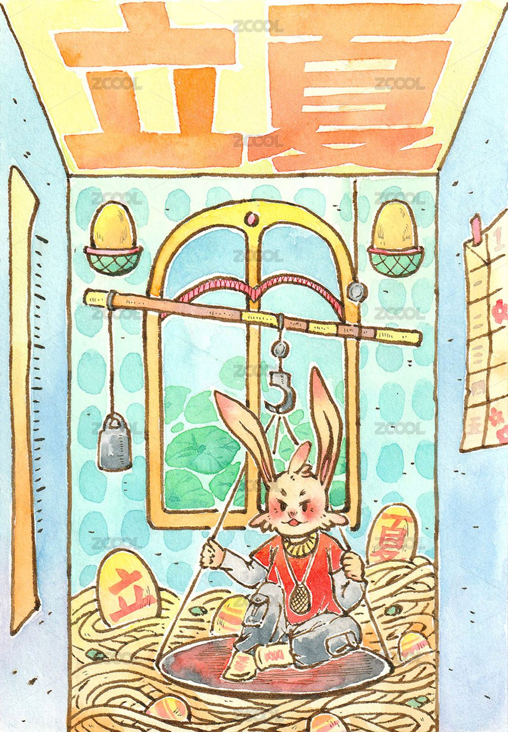 立夏節(jié)氣立蛋稱重水彩插畫(huà)
