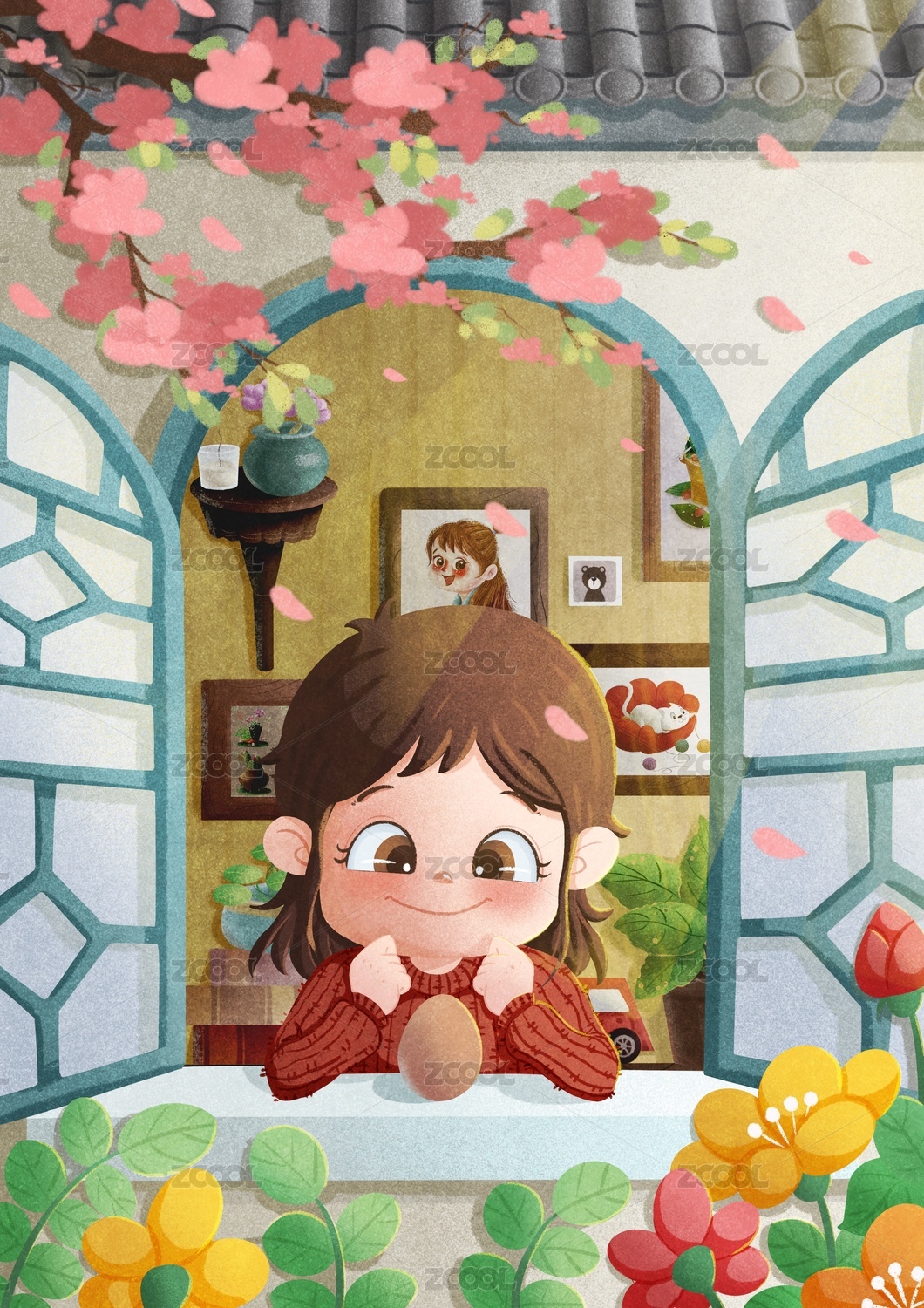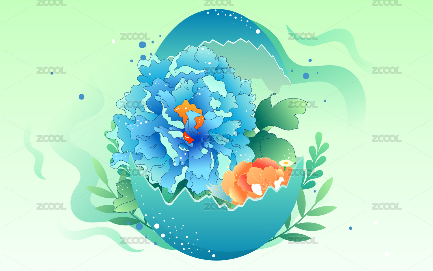 春分立蛋習(xí)俗插畫(huà)春天牡丹盛開(kāi)風(fēng)景活動(dòng)海報(bào)