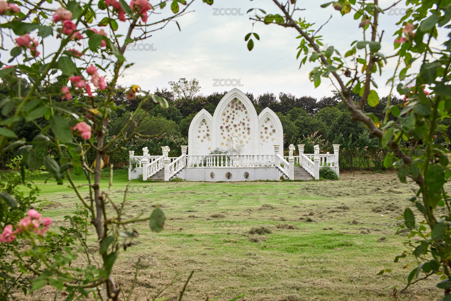 鮮花籬笆圍繞的仿羅馬建筑舞臺