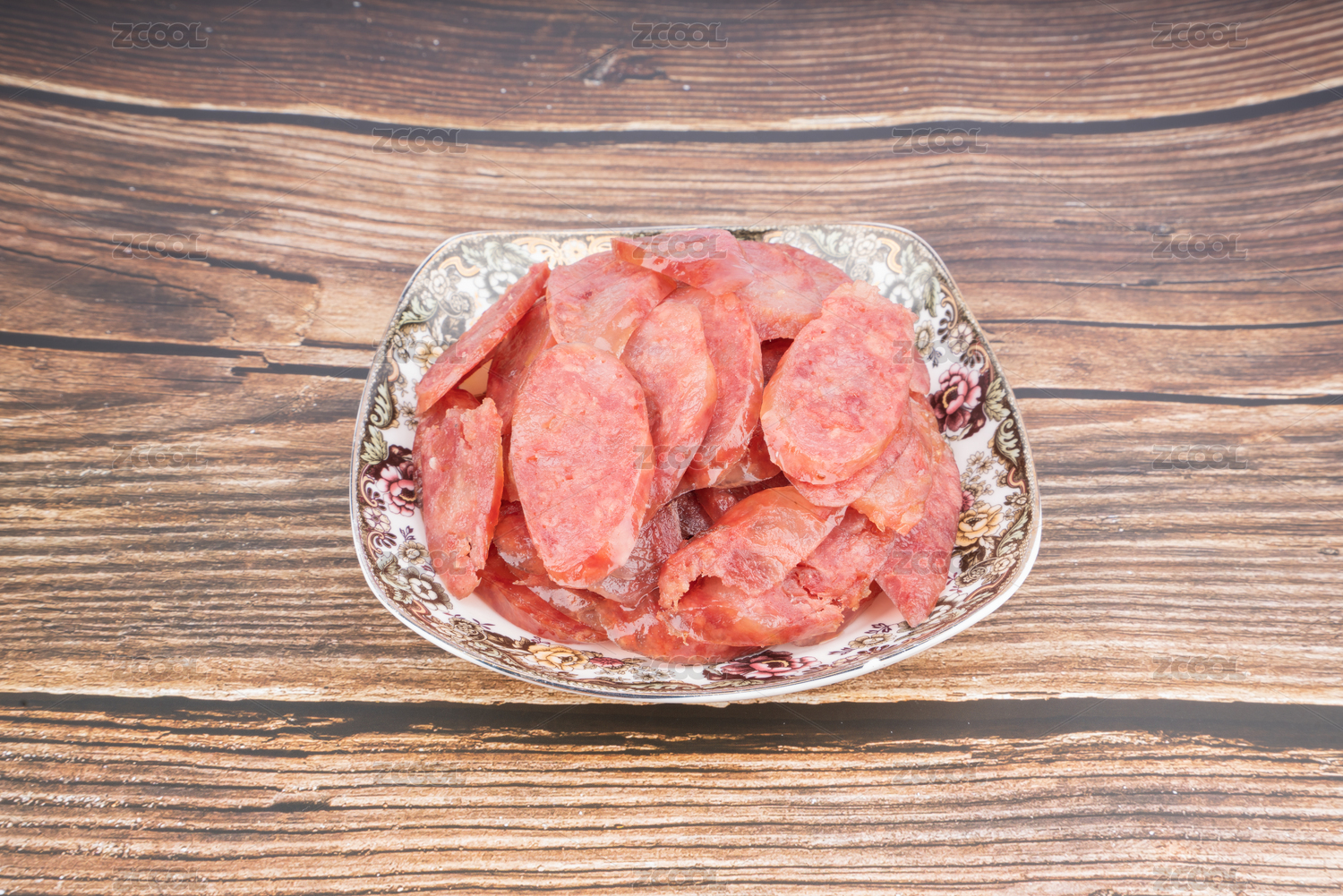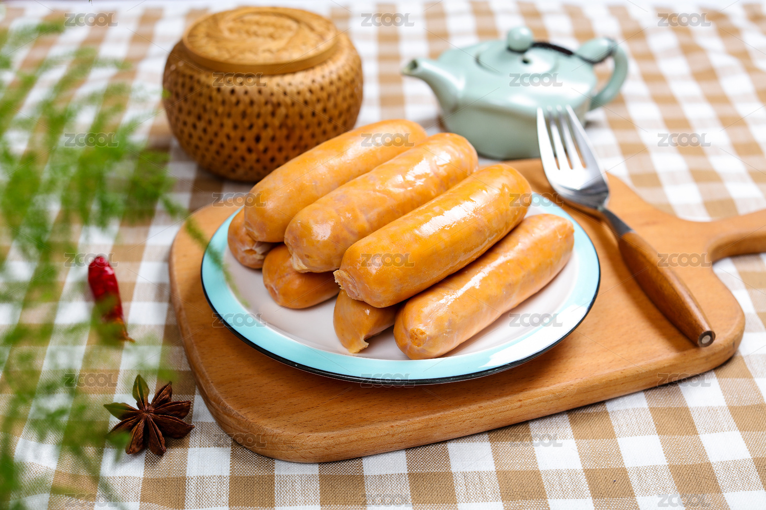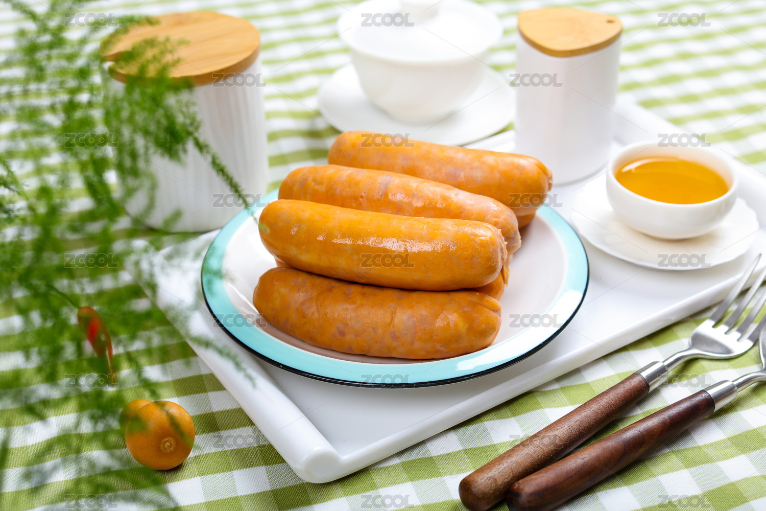 放在盤子里的豬肉腸