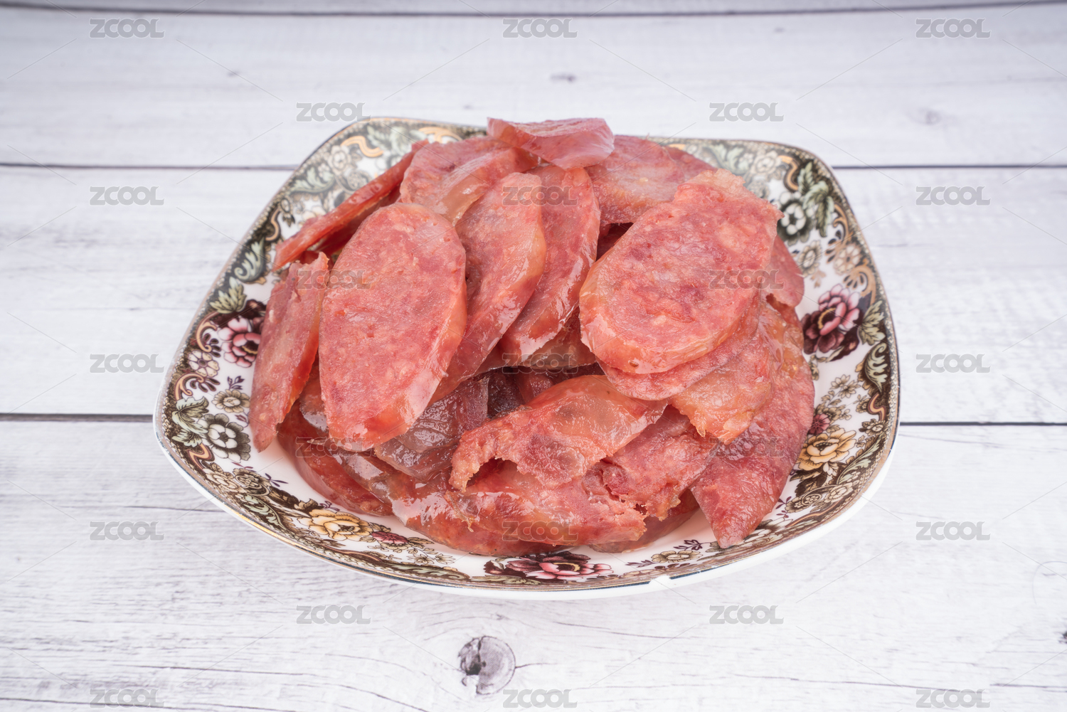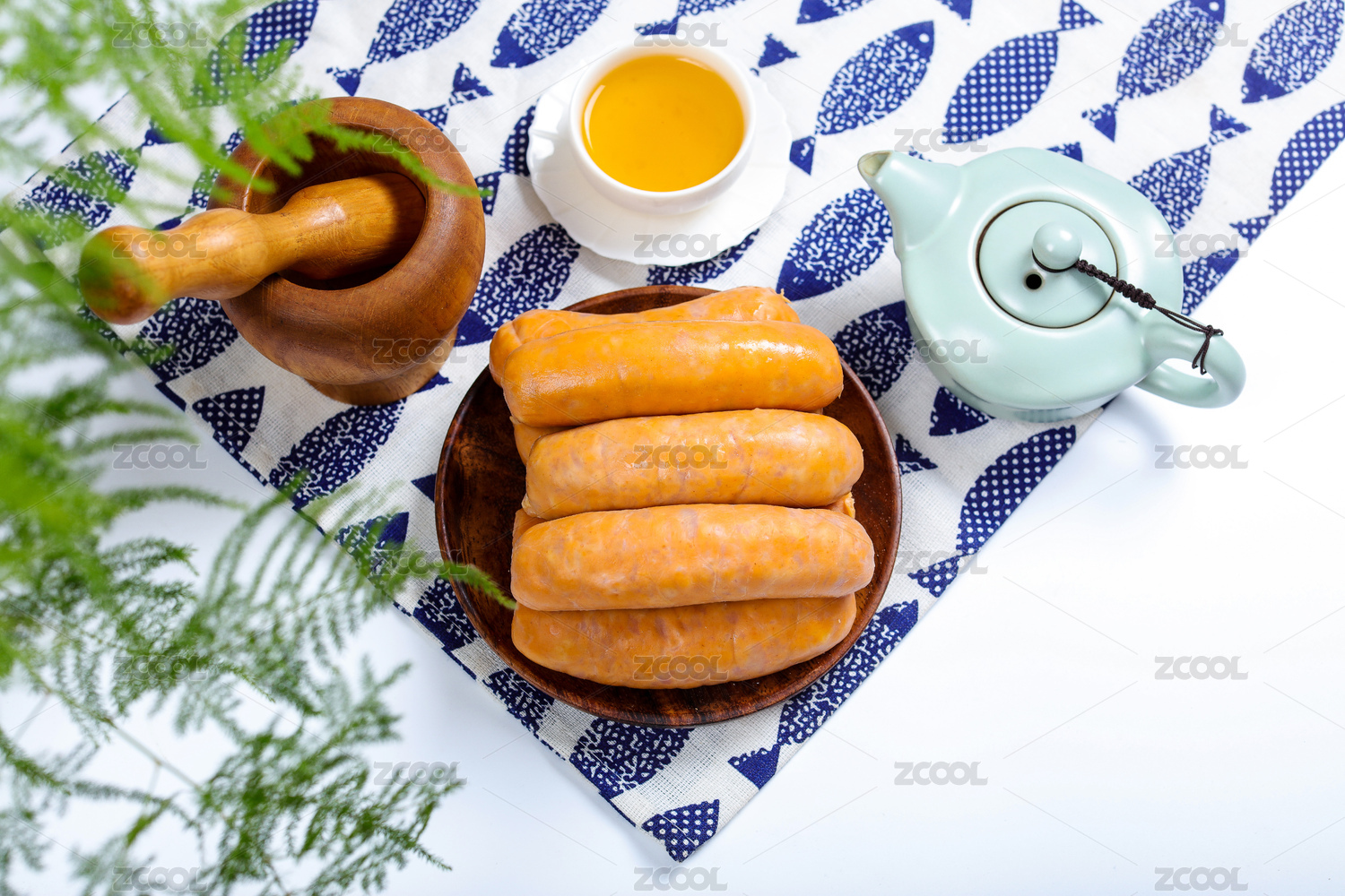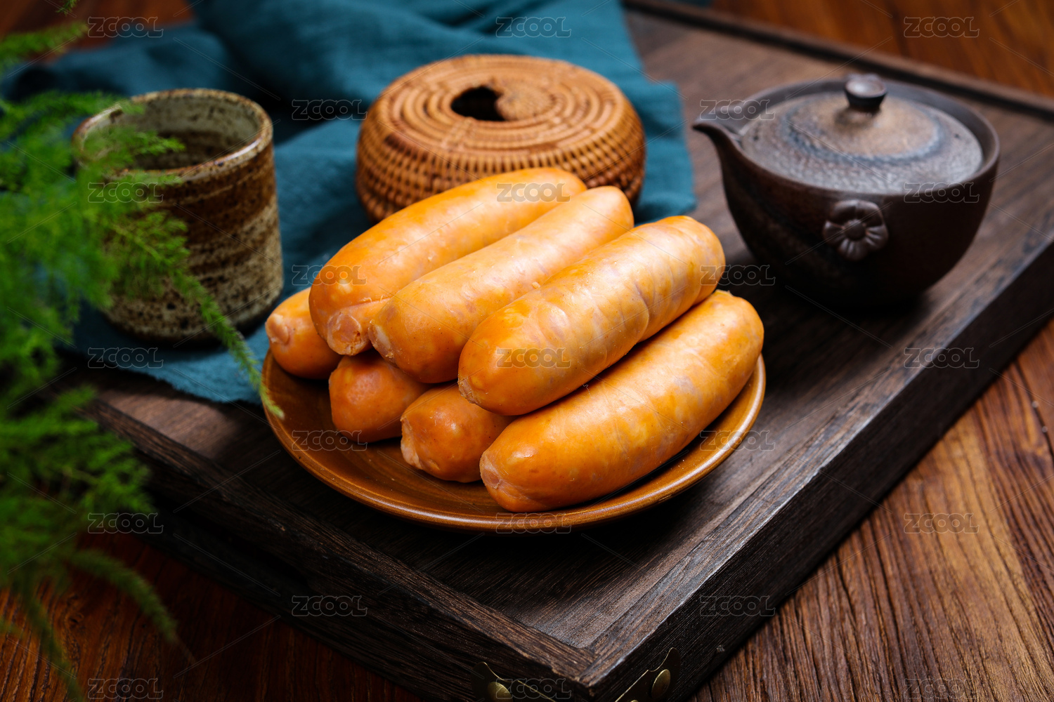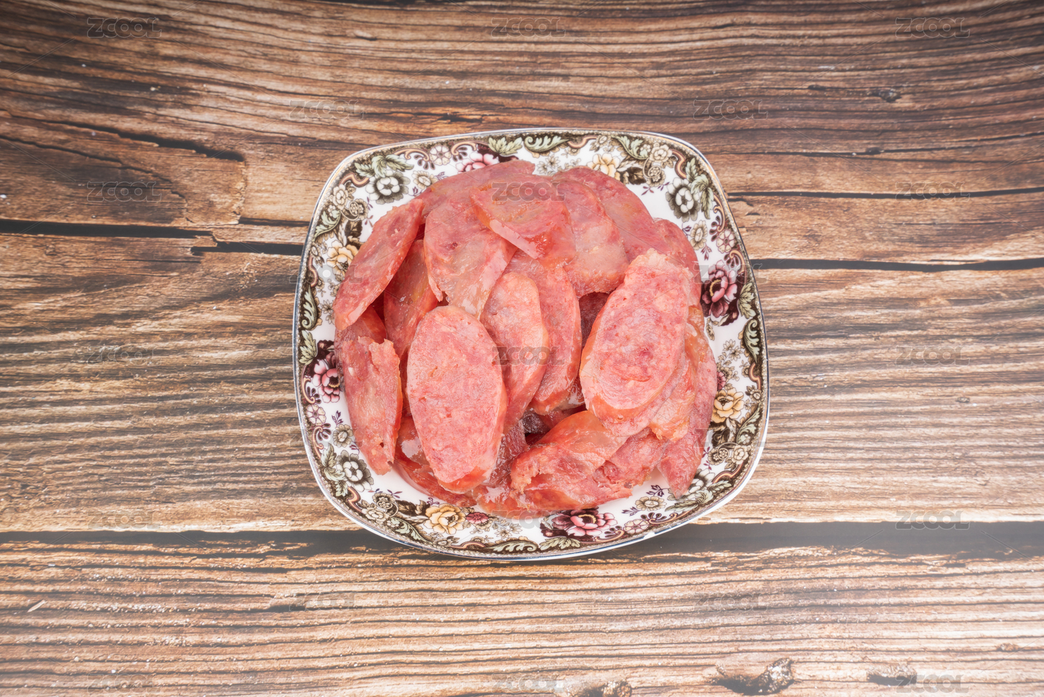 放在盤子里的豬肉腸