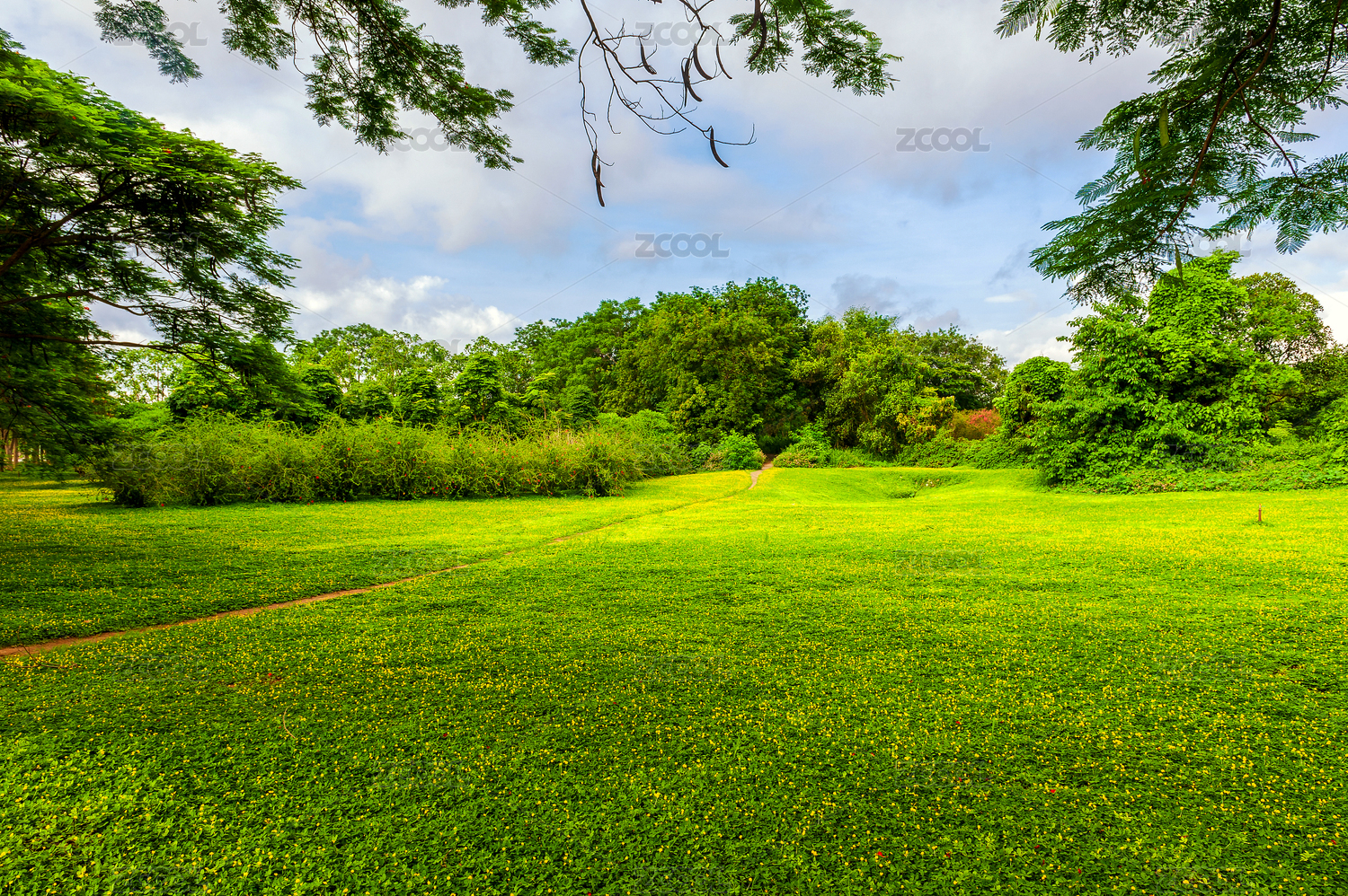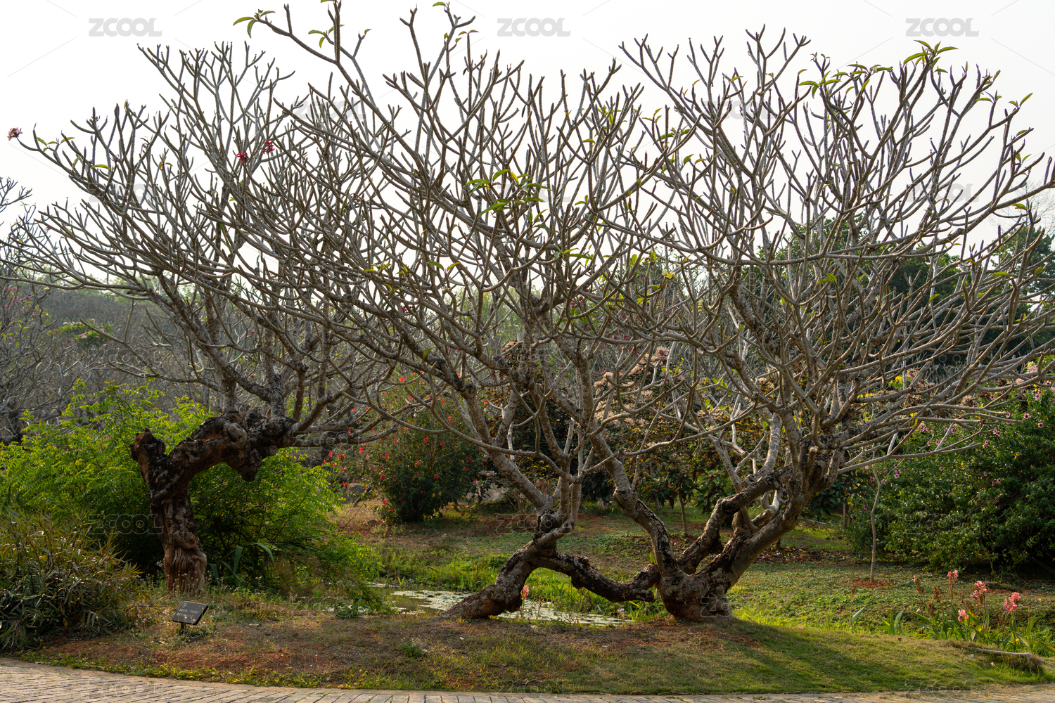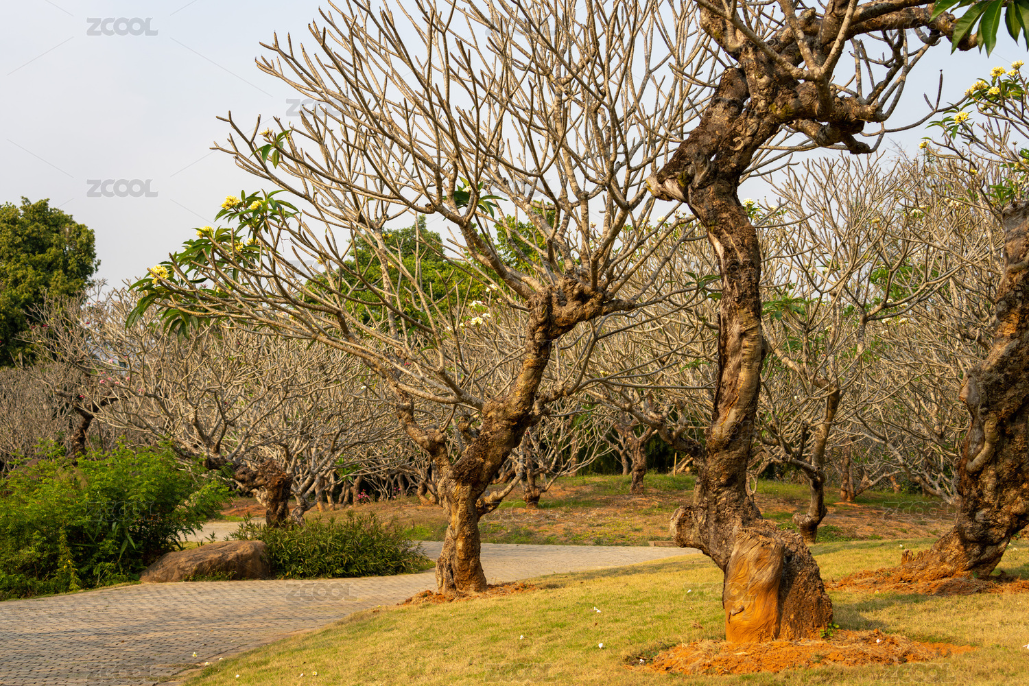 西雙版納熱帶花卉園里的雞蛋花樹(shù)園區(qū)景觀(guān)