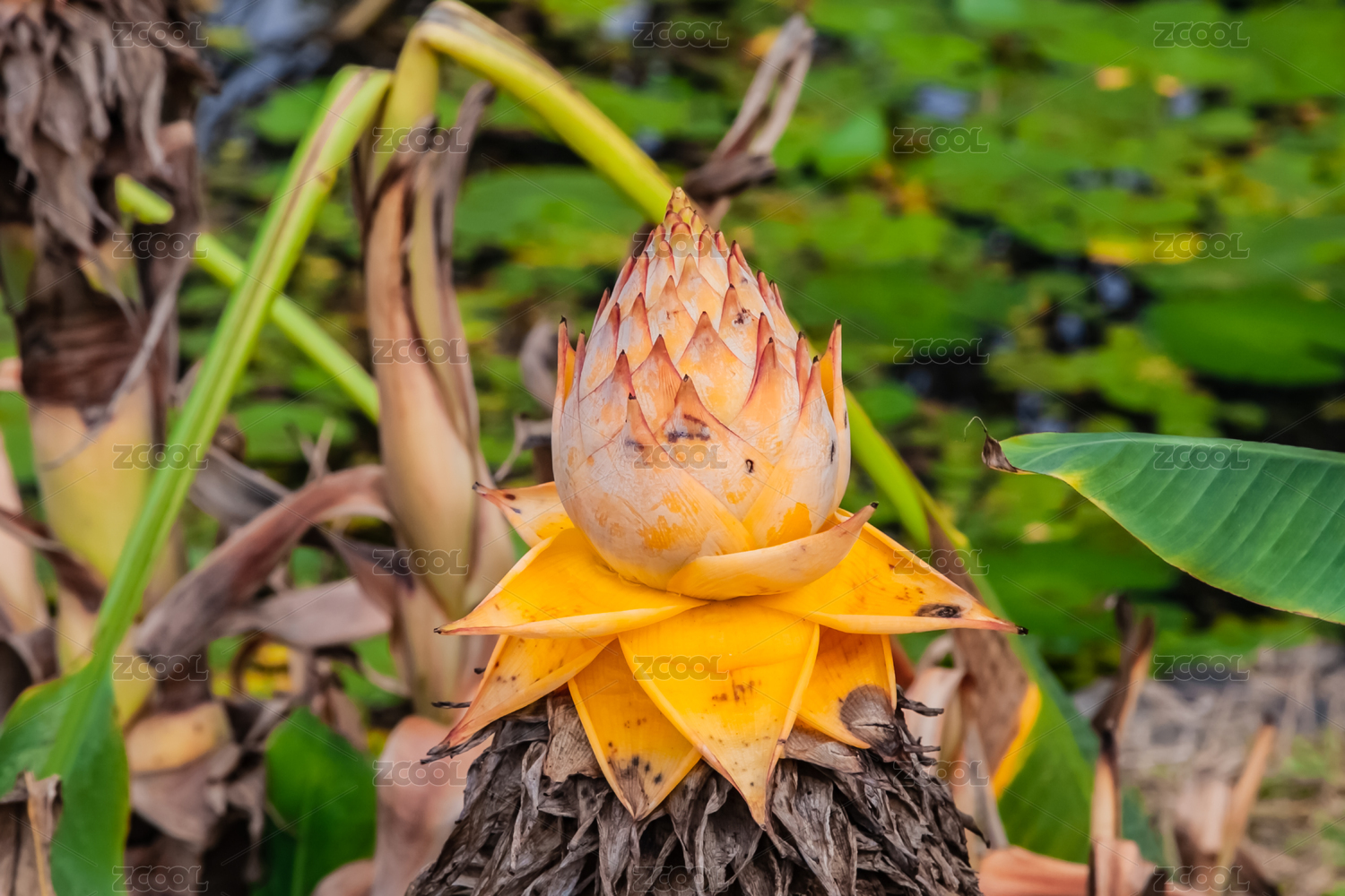 熱帶花卉芭蕉科黃色地涌金蓮花卉特寫(xiě)