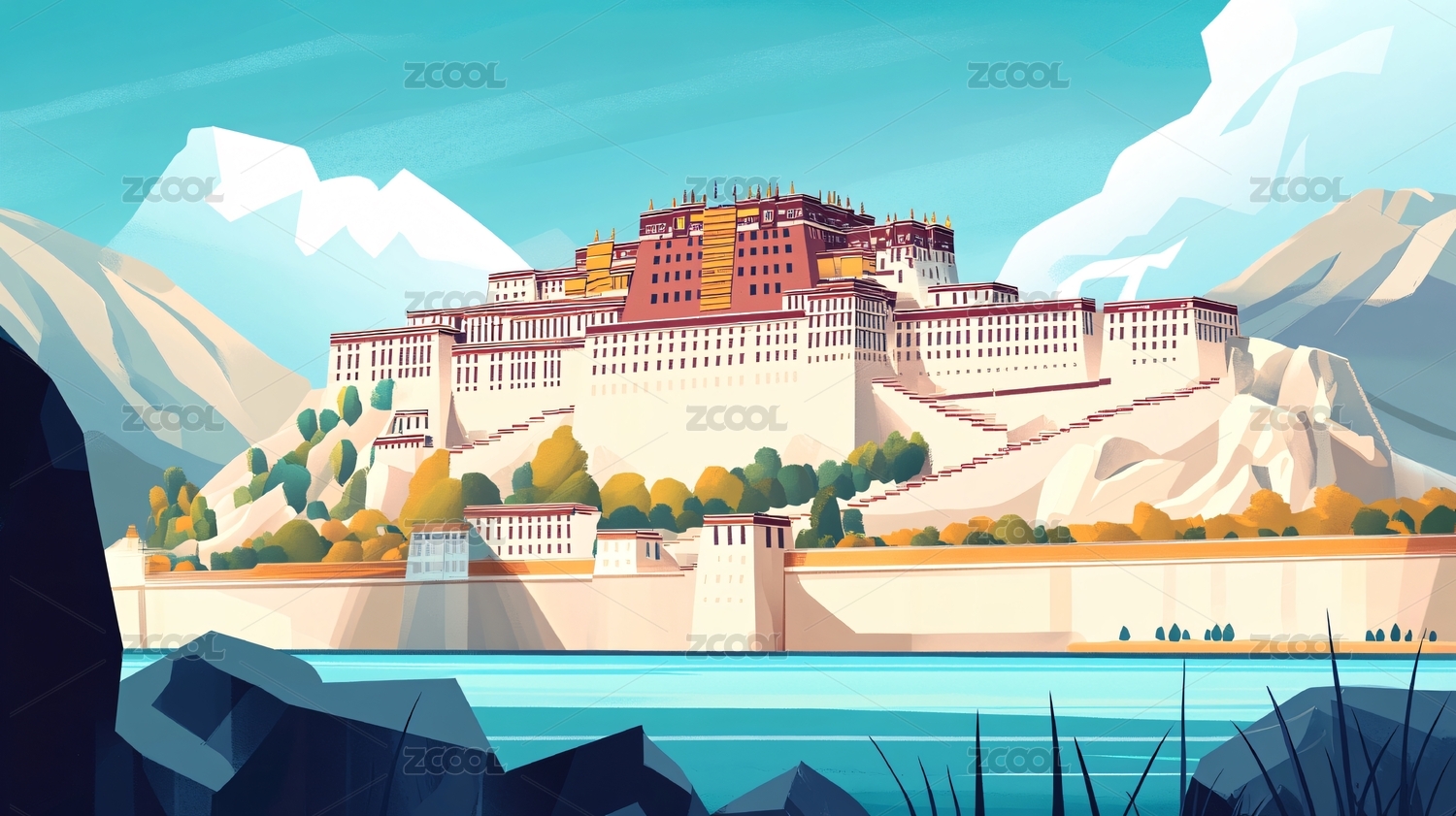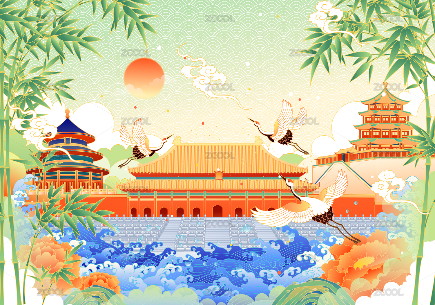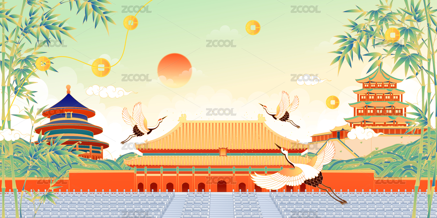 城市地標建筑國潮背景插畫假期旅游景點海報