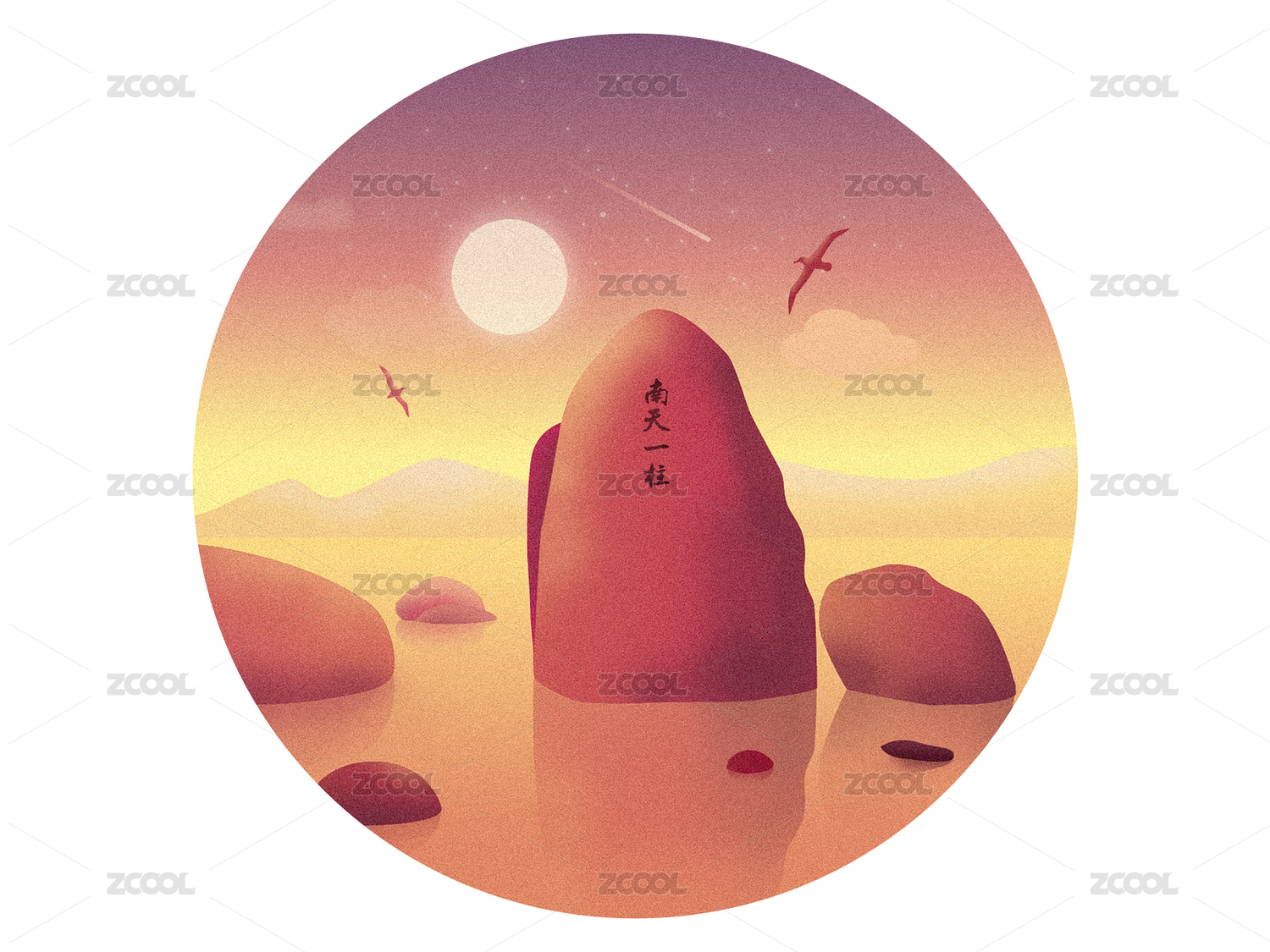 三亞著名旅游景點天涯海角南天一柱場景插畫