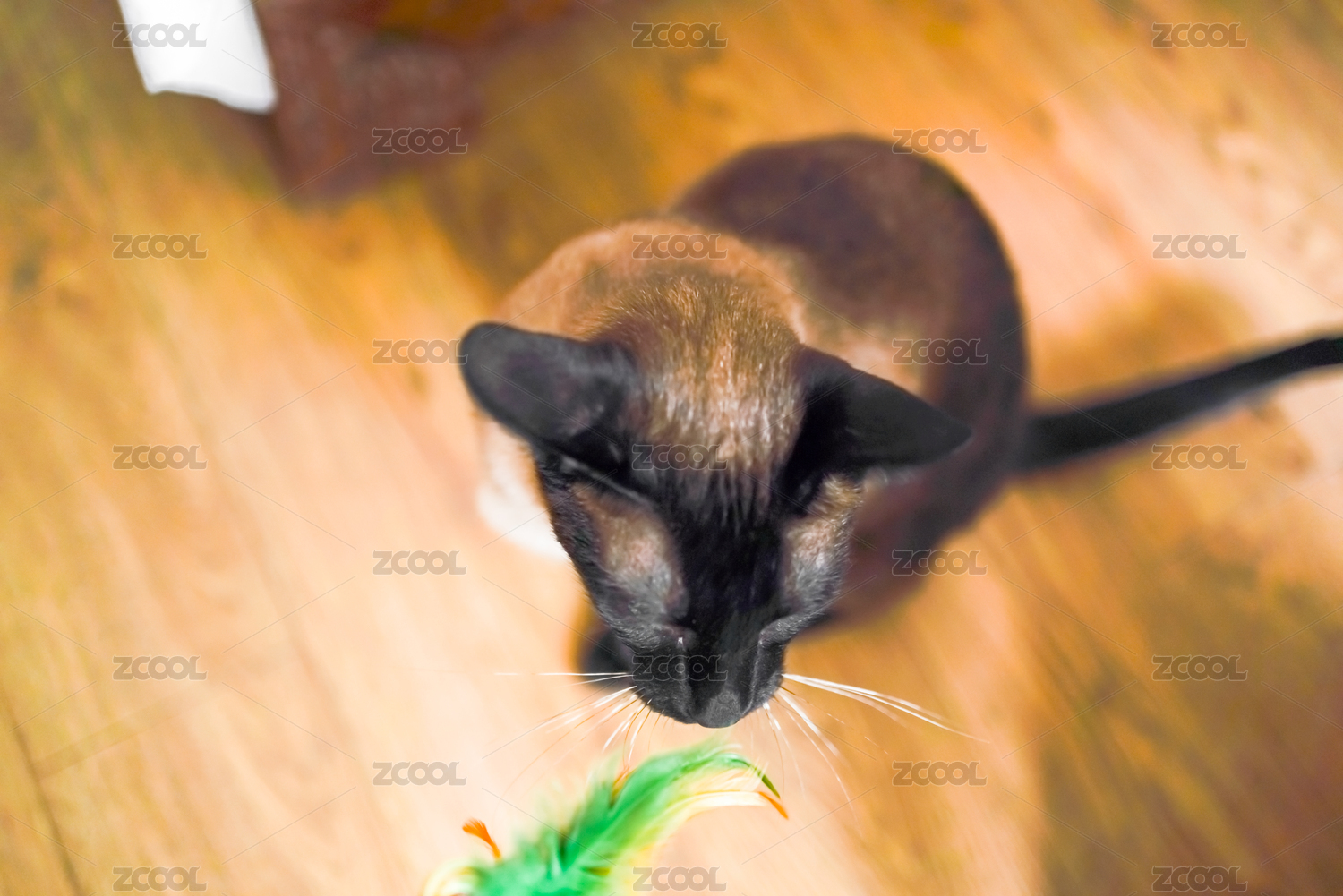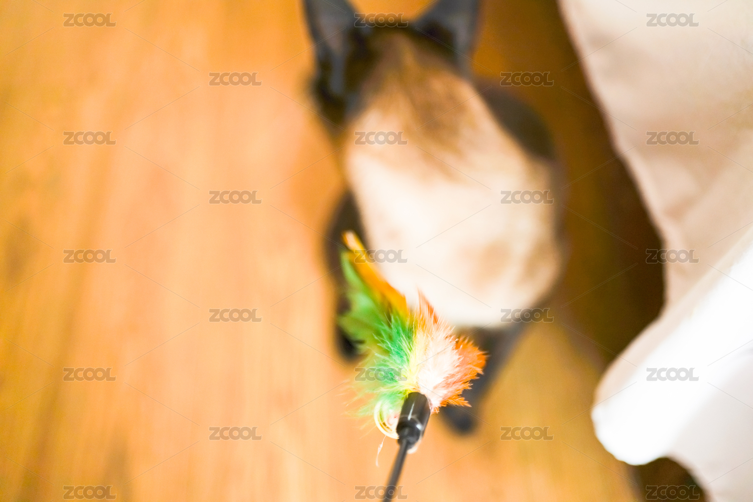 模糊的棕色貓和逗貓棒