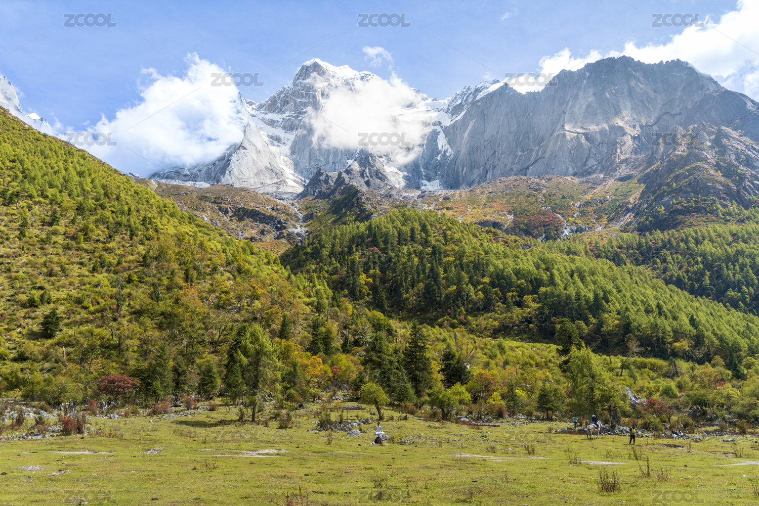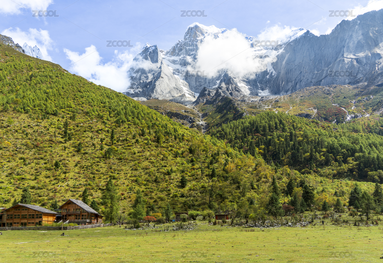 中國四川阿壩藏族羌族自治州小金縣四姑娘山鎮(zhèn)四姑娘山木騾子營地景色
