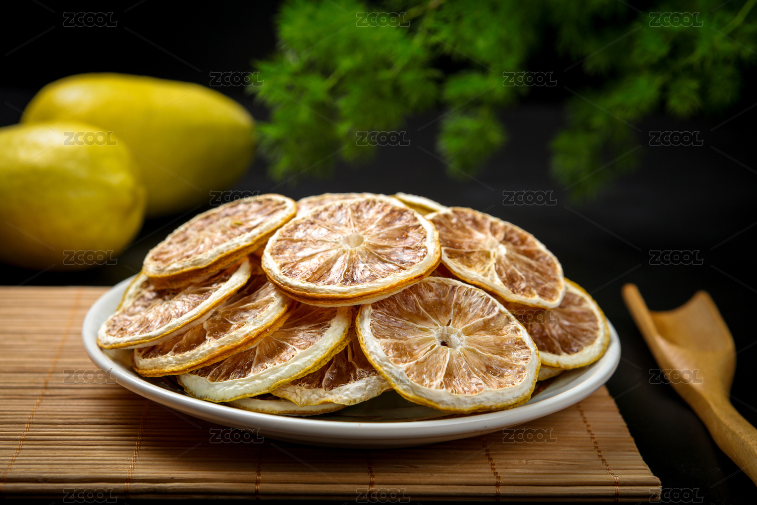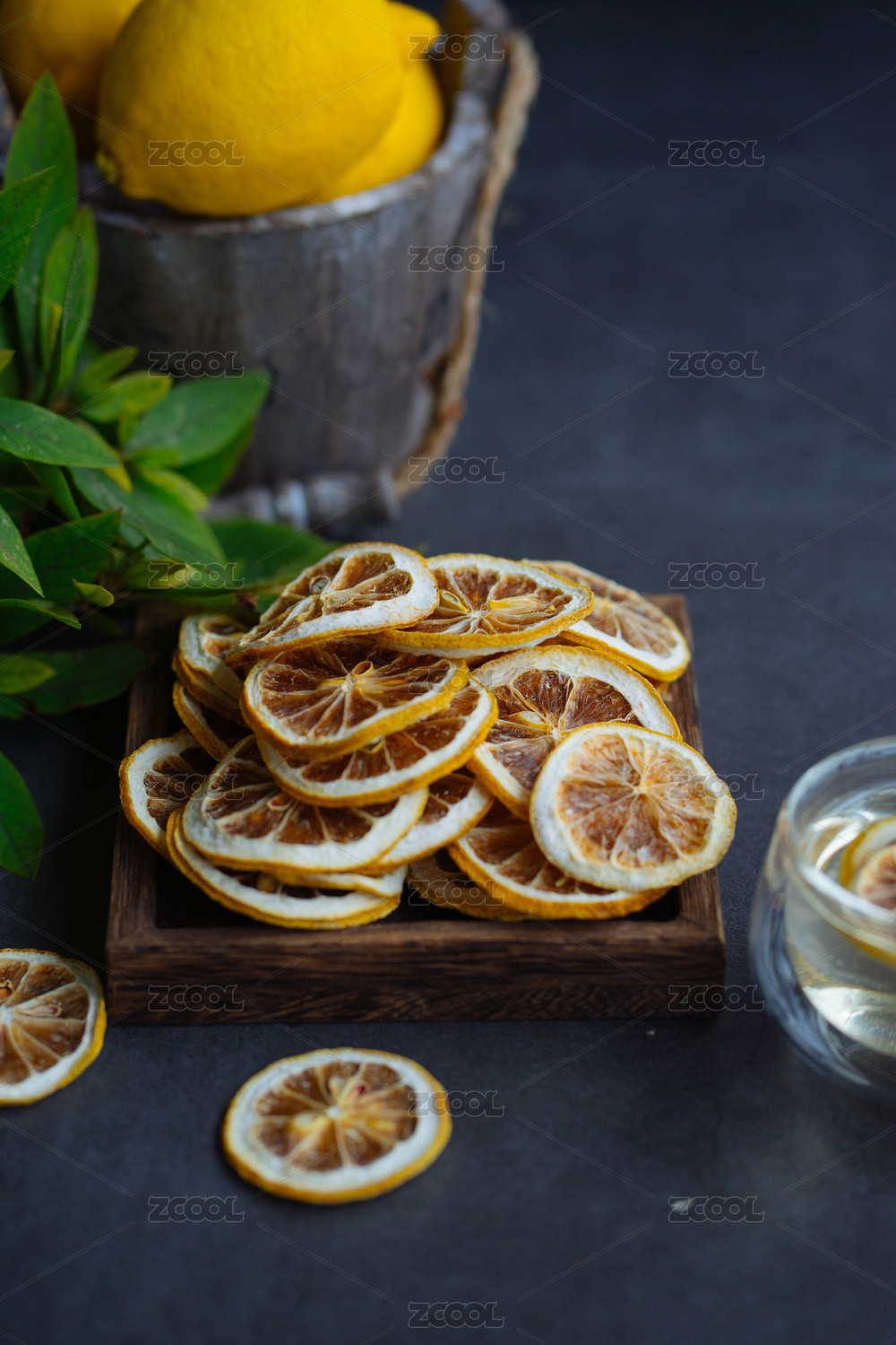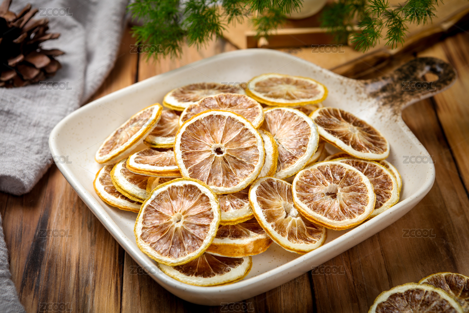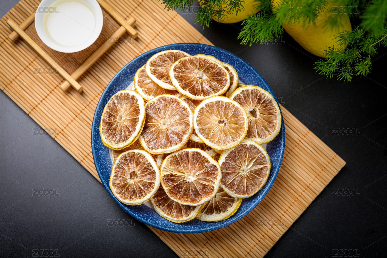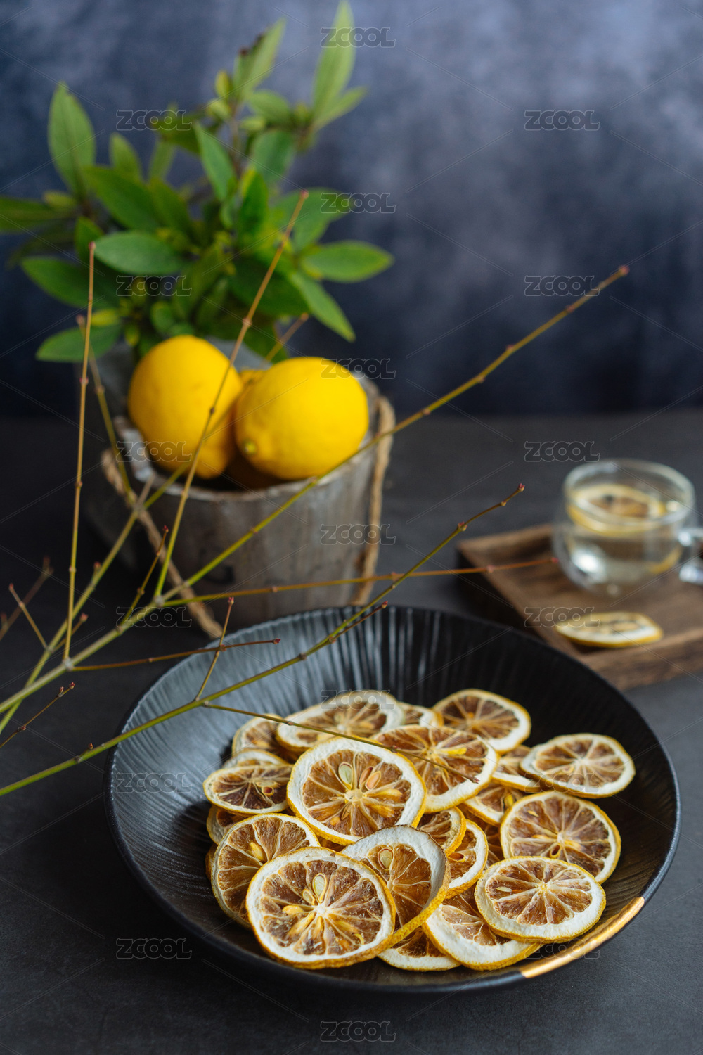 用盤子裝著干檸檬片