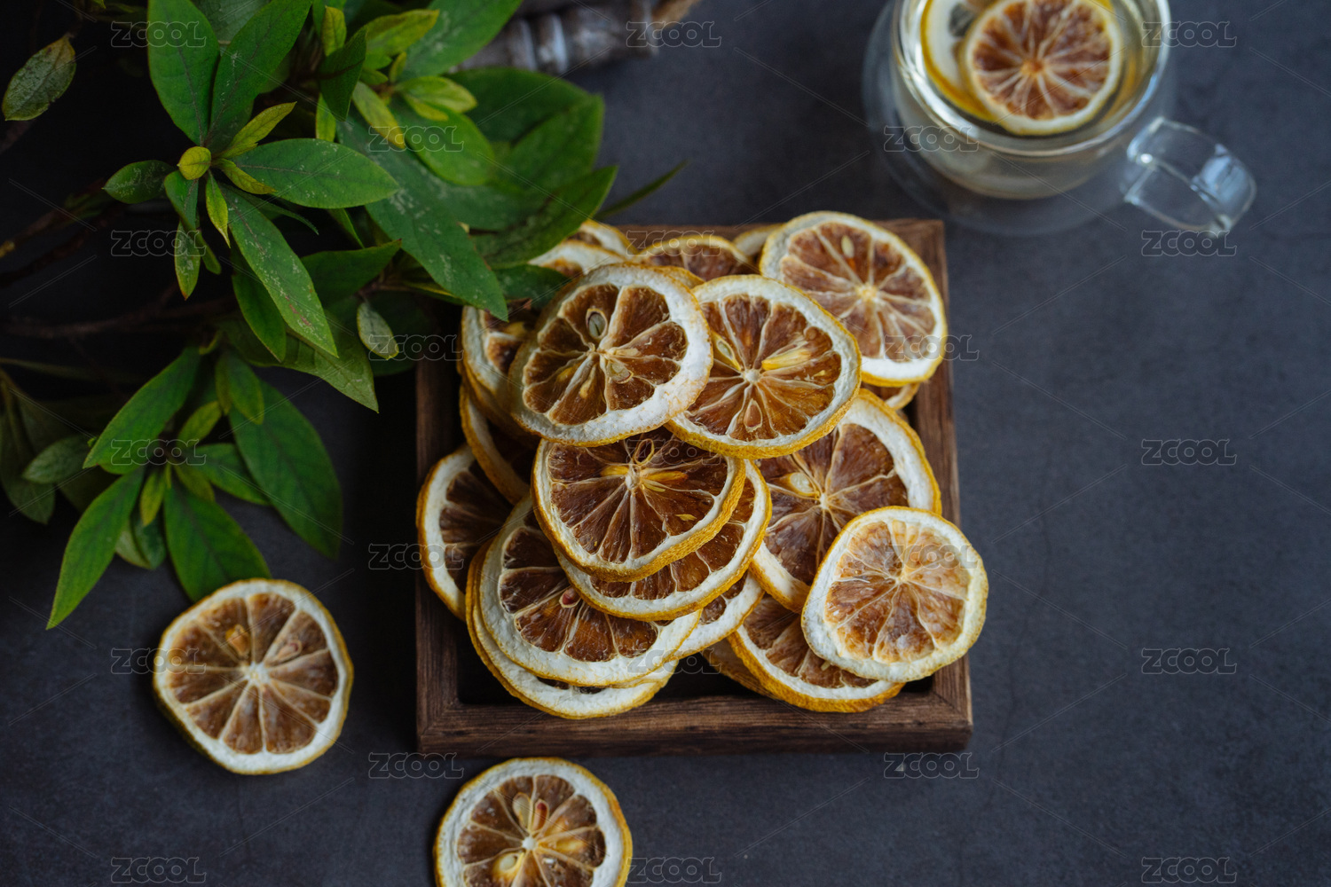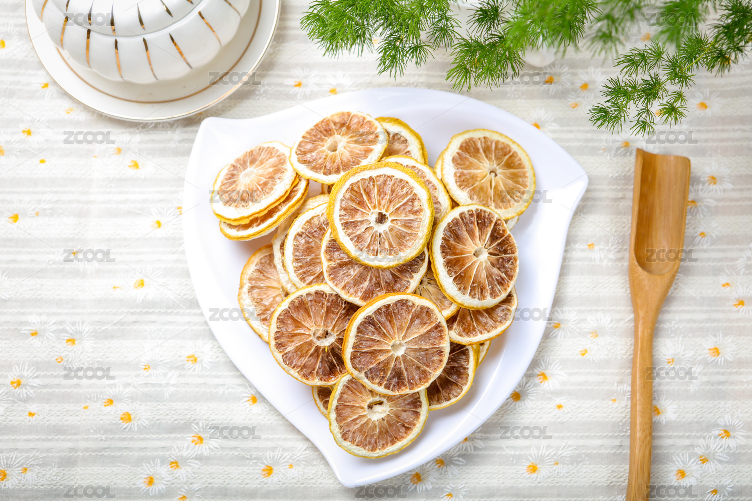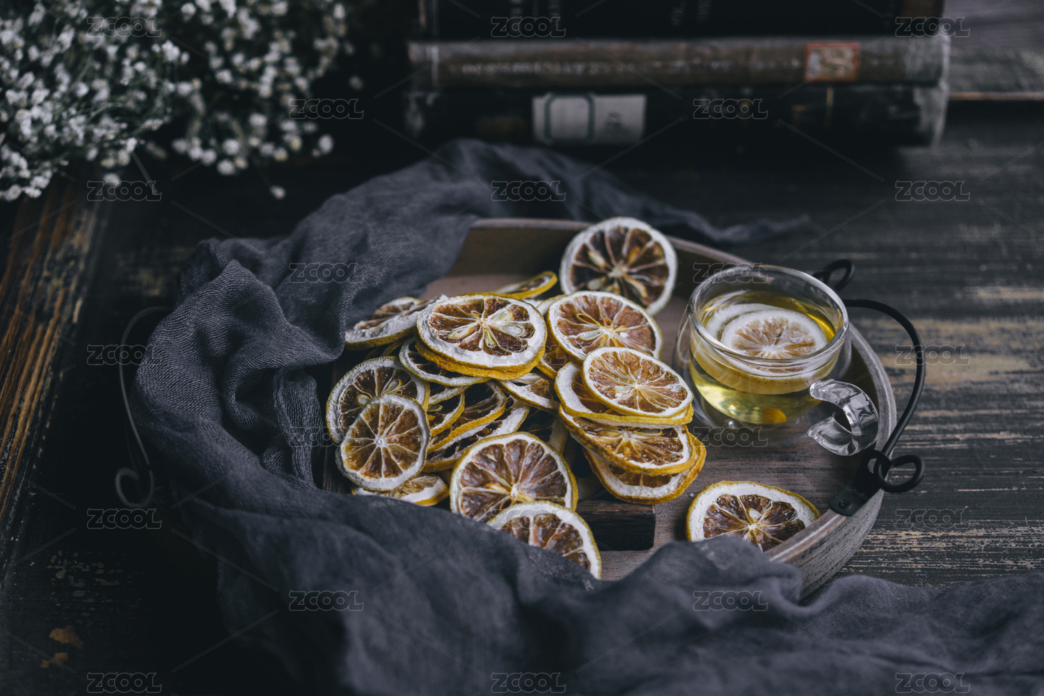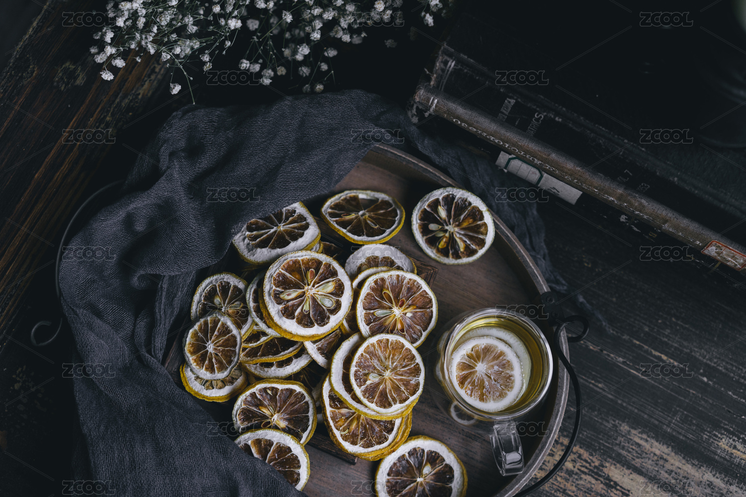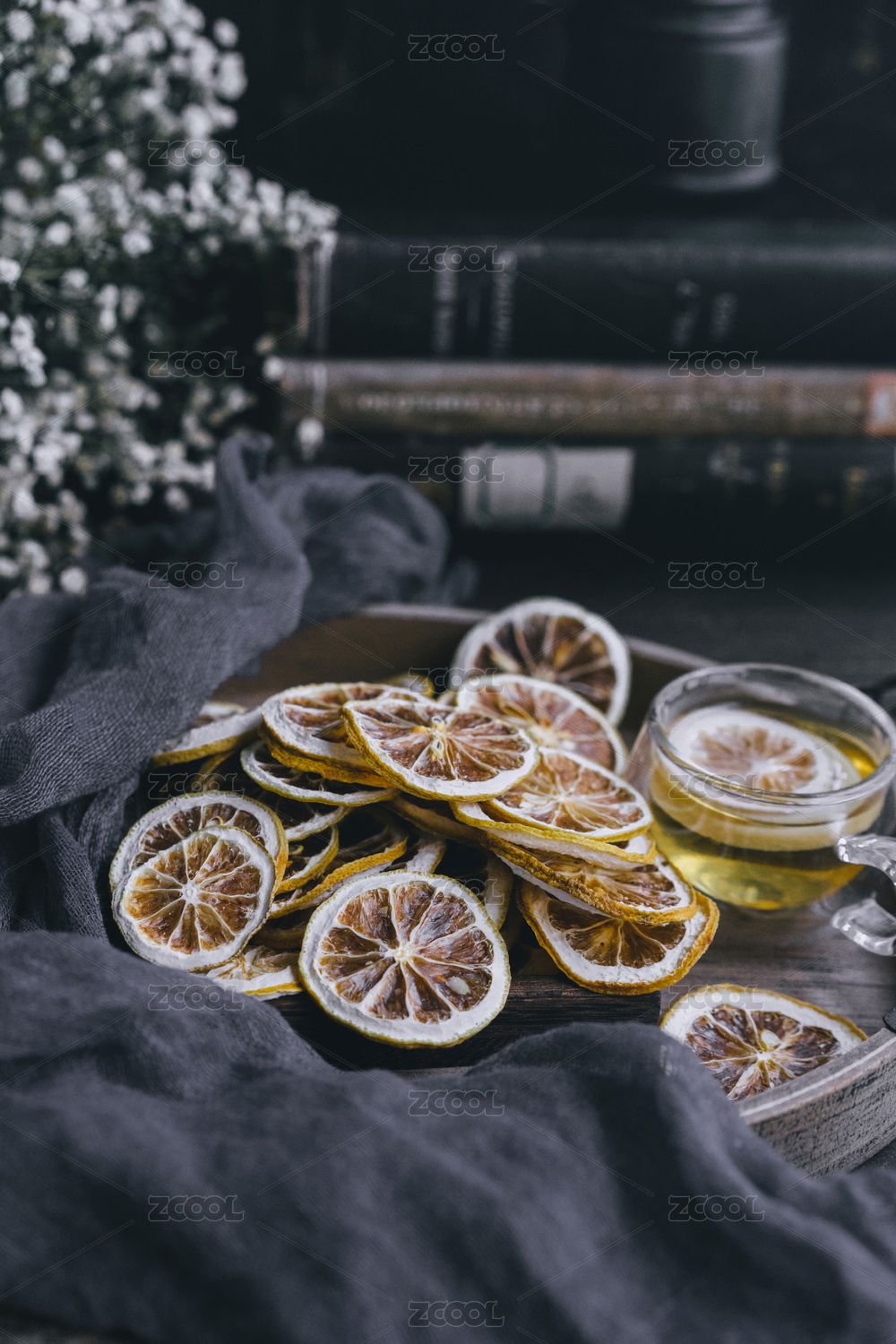 用盤子裝著干檸檬片