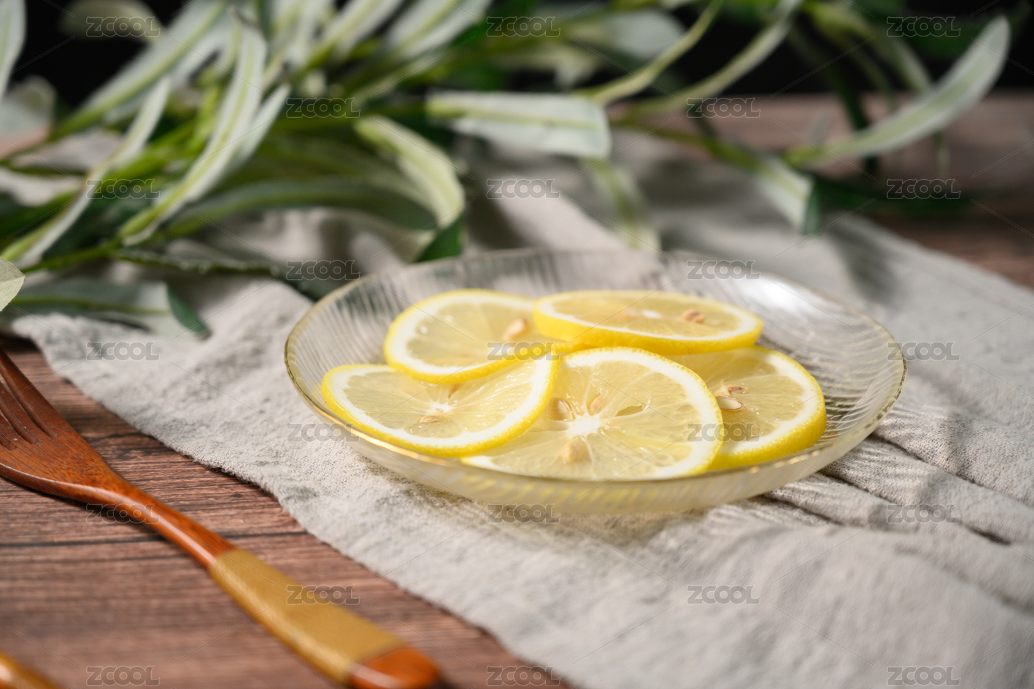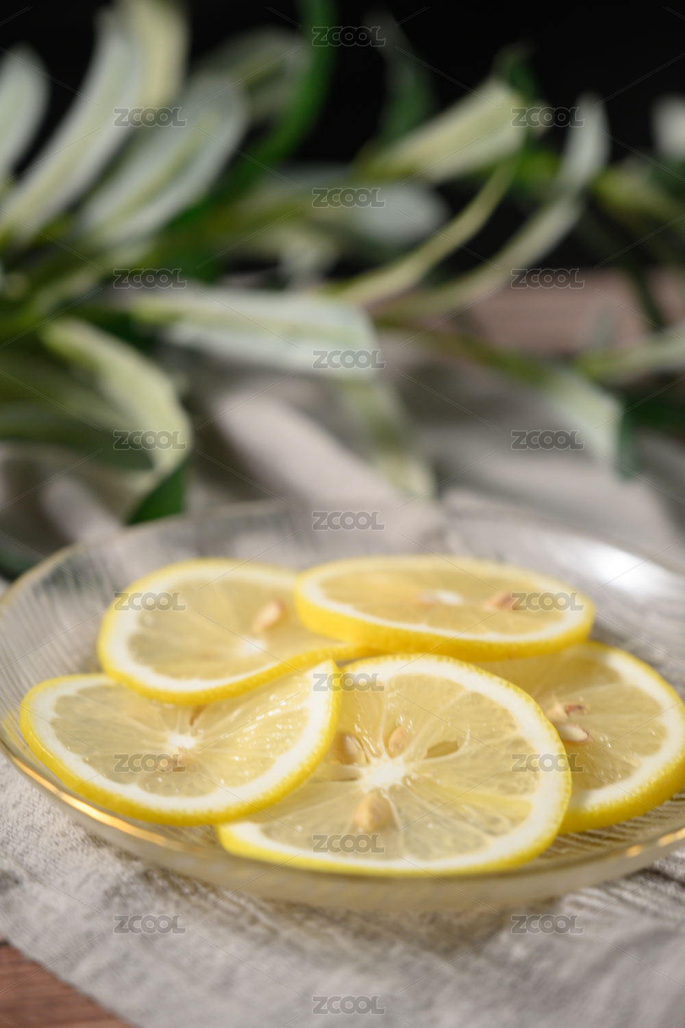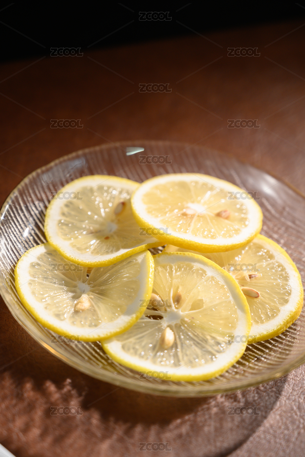 桌面上的盤子里的美味可口的檸檬片